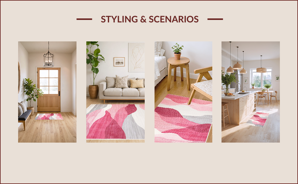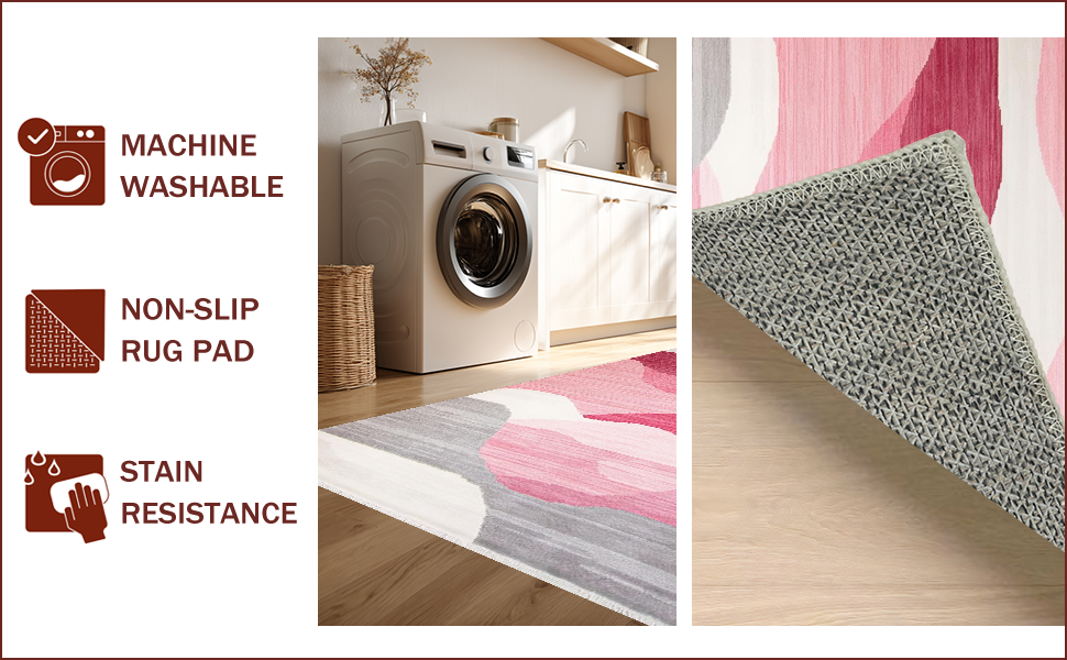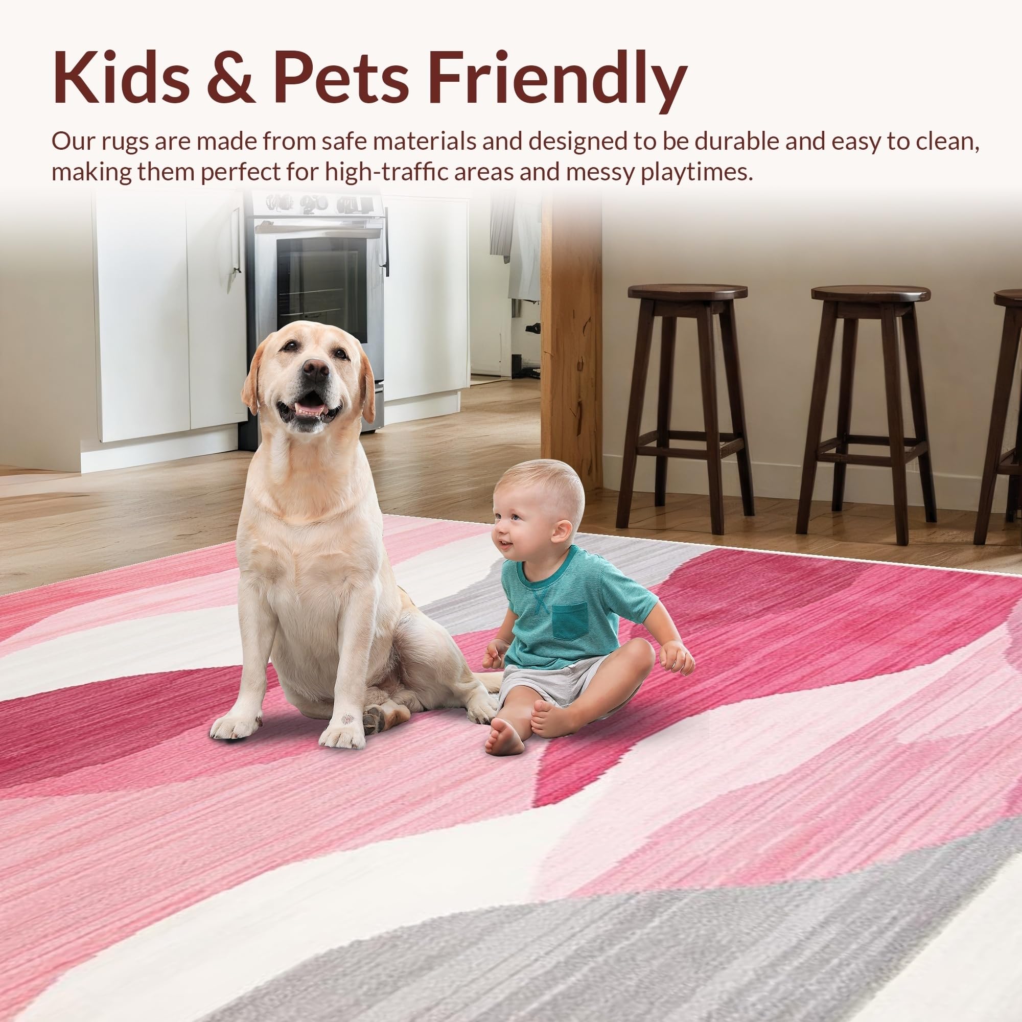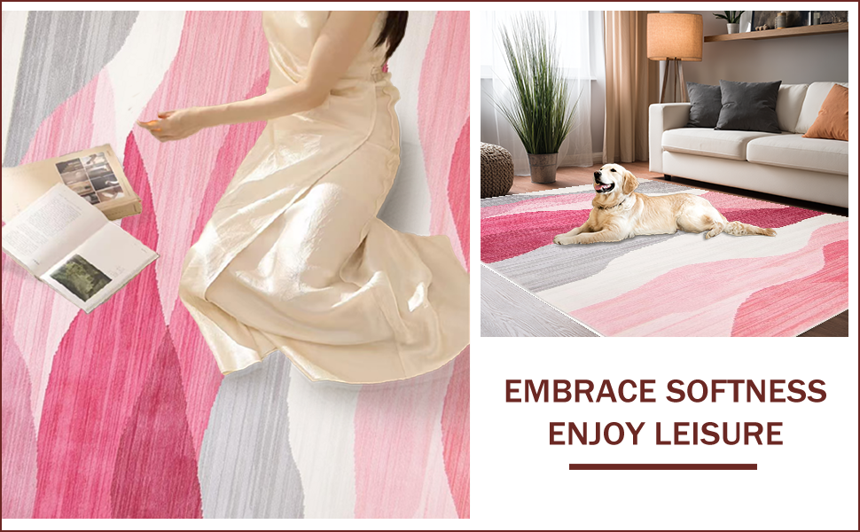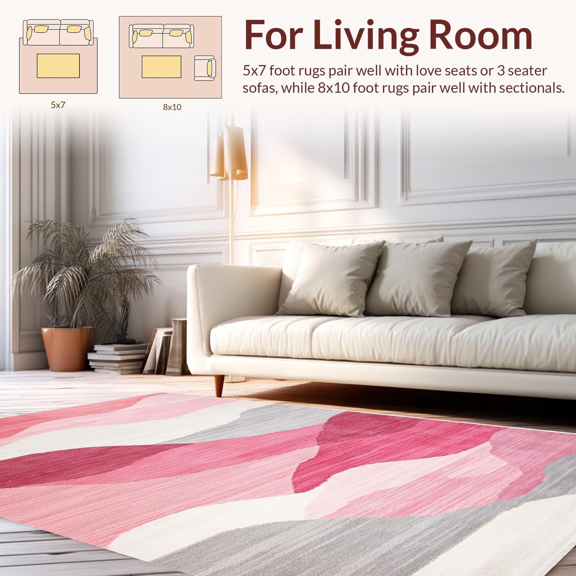 Ultra Soft Area Rug, Non Slip, Stain Resistant, Washable Area Rugs for Living Room, Bedroom, Chic Soft Abstract Texture(Pink) Overview: