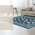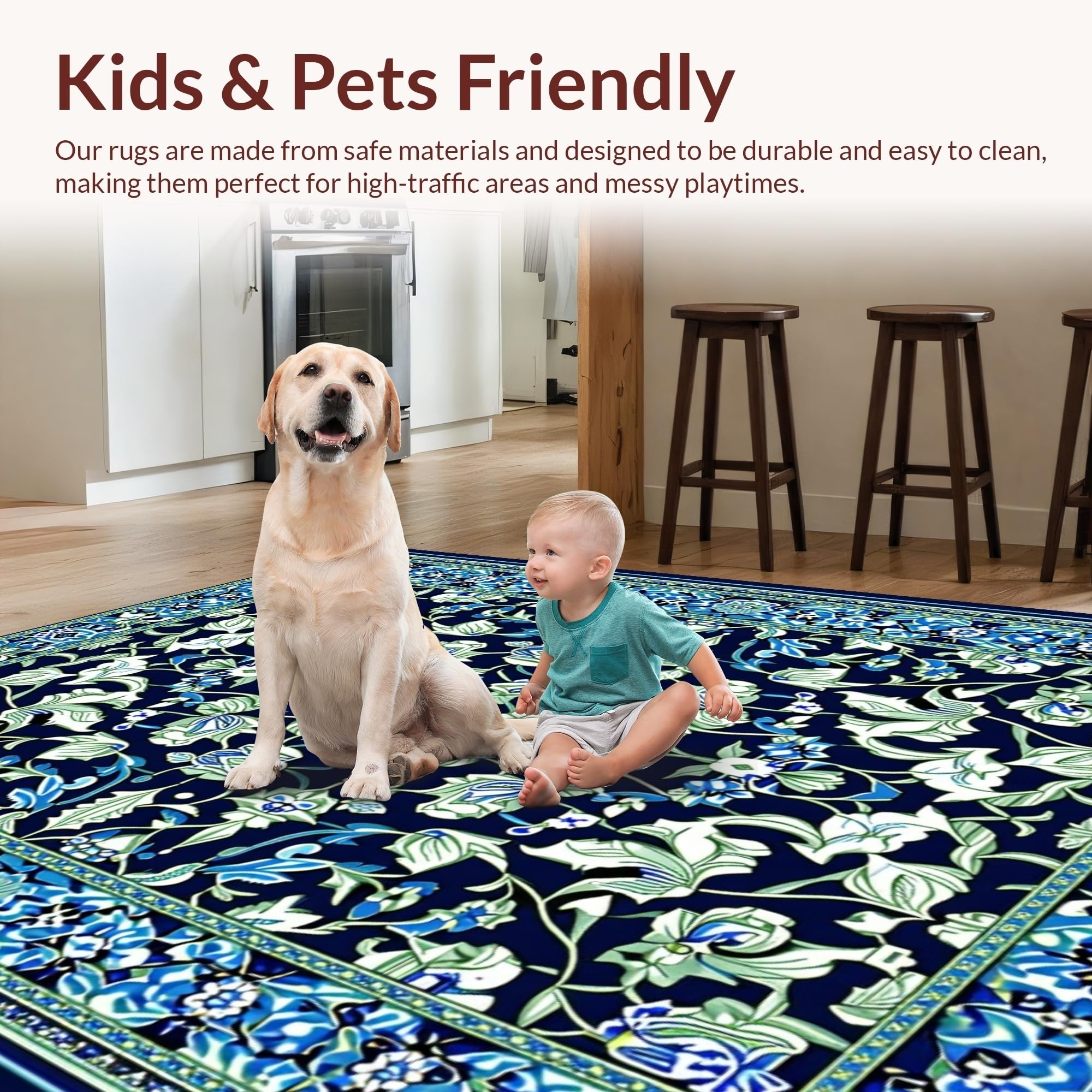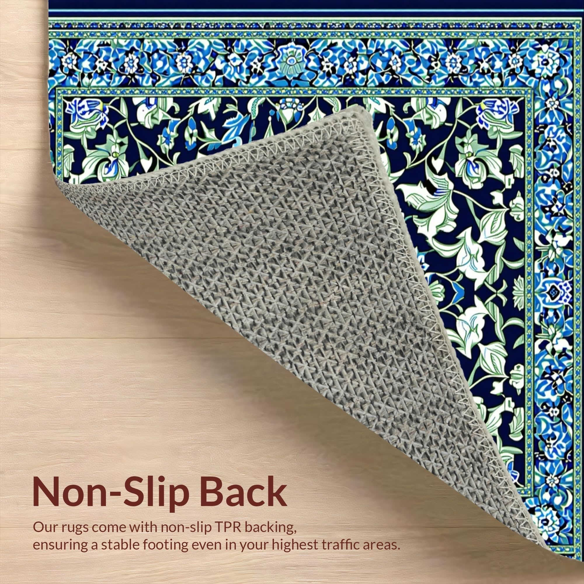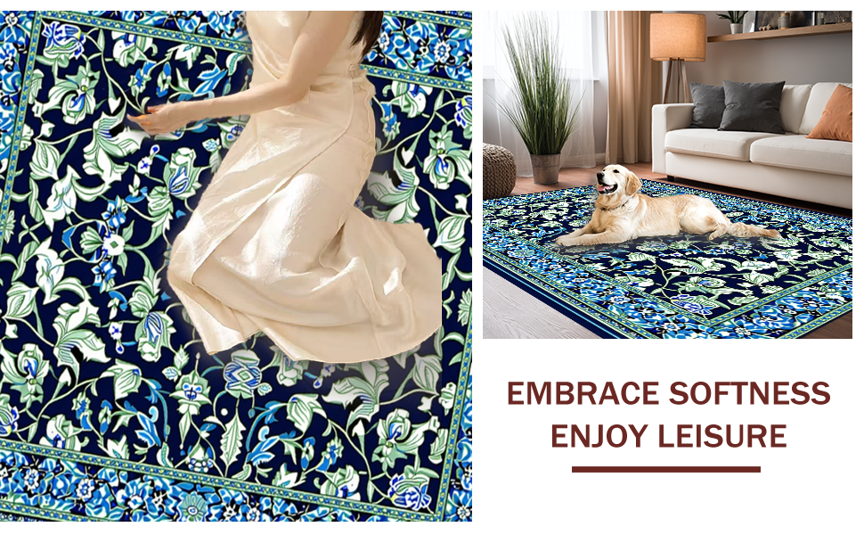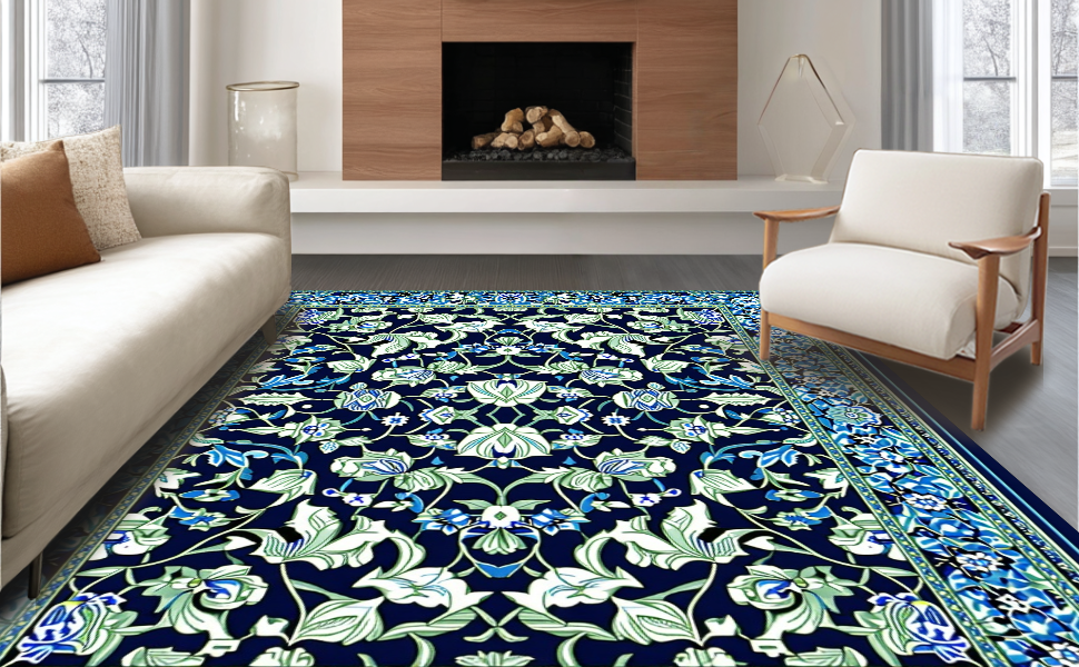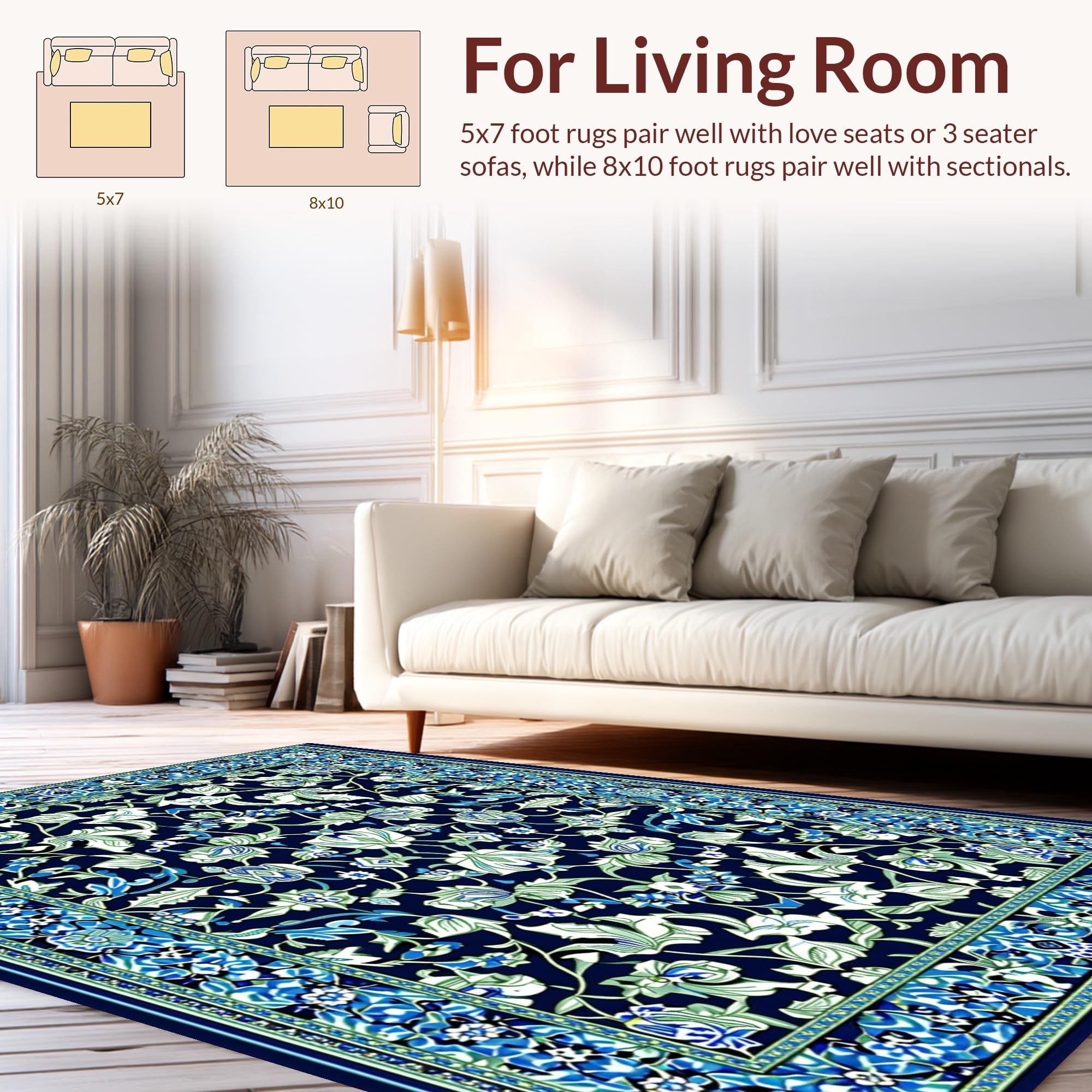 Ultra Soft Area Rug, Non Slip, Stain Resistant, Washable Area Rugs for Living Room, Bedroom, Chic Soft Blue Botanical Design(Blue) Overview: