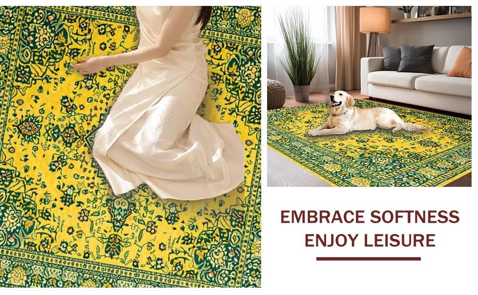 Ultra Soft Area Rug, Non Slip, Stain Resistant, Washable Area Rugs for Living Room, Bedroom, Chic Soft Colorful Print(Yellow) Overview: