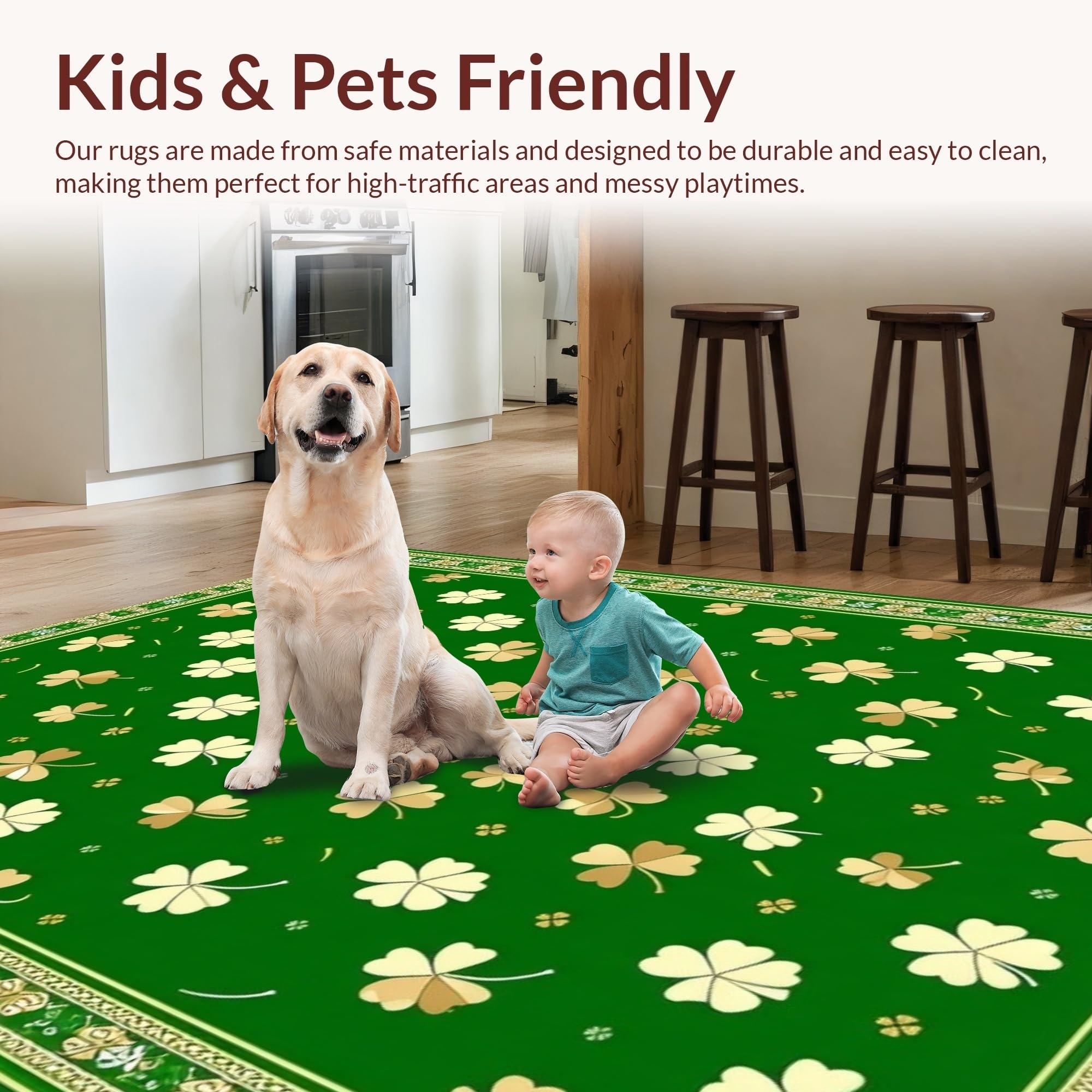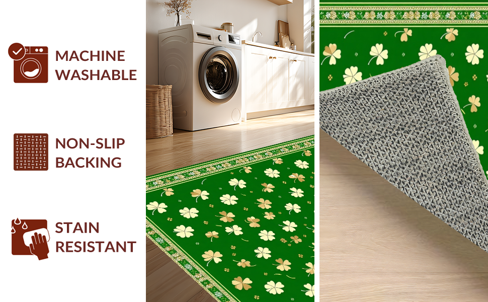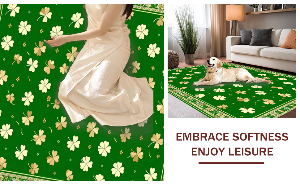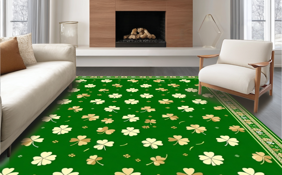 Ultra Soft Area Rug, Non Slip, Stain Resistant, Washable Area Rugs for Living Room, Bedroom, Chic St. Patrick's Day Themed Rug(Green) Overview: