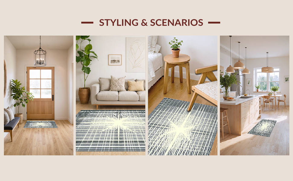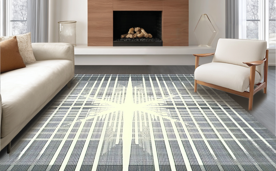 Ultra Soft Area Rug, Non Slip, Stain Resistant, Washable Area Rugs for Living Room, Bedroom, Chic Starburst Patterned Aesthetic(Gray) Overview: