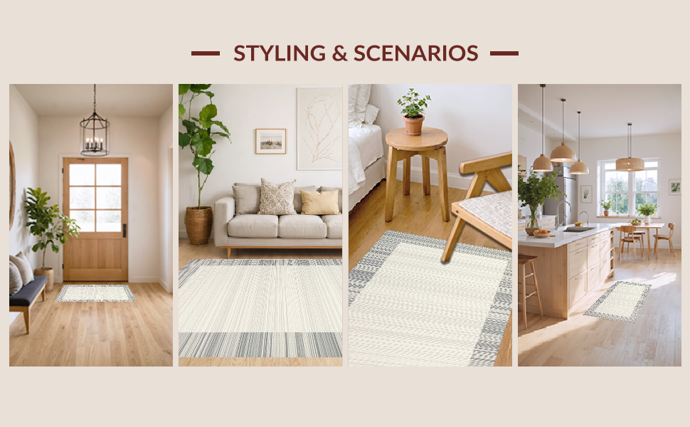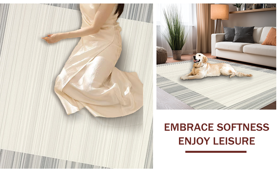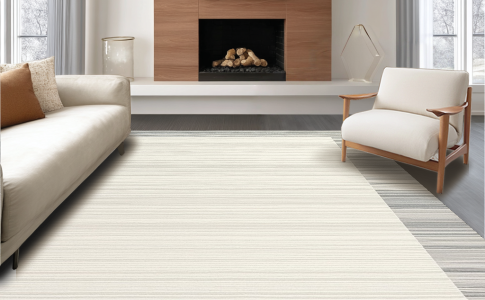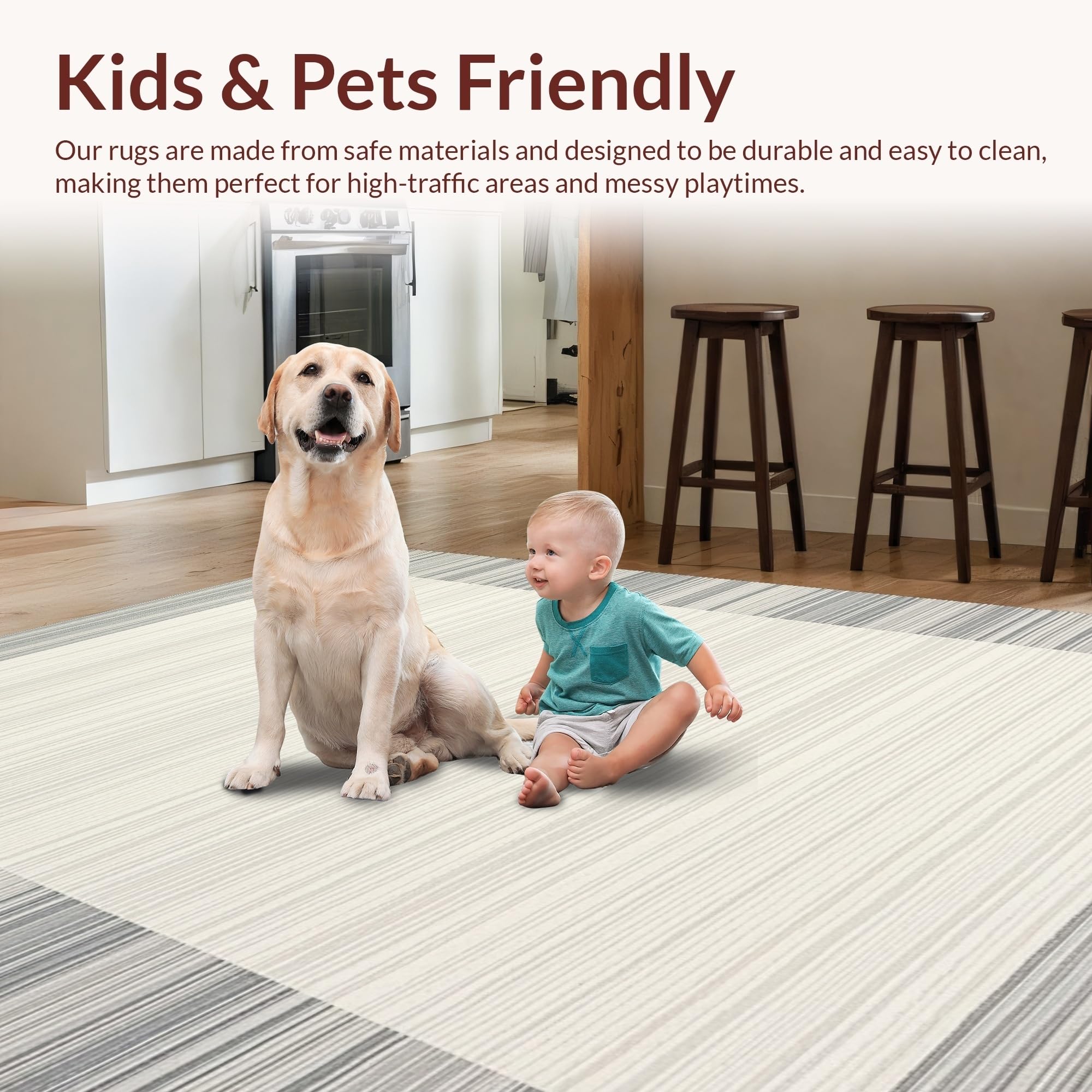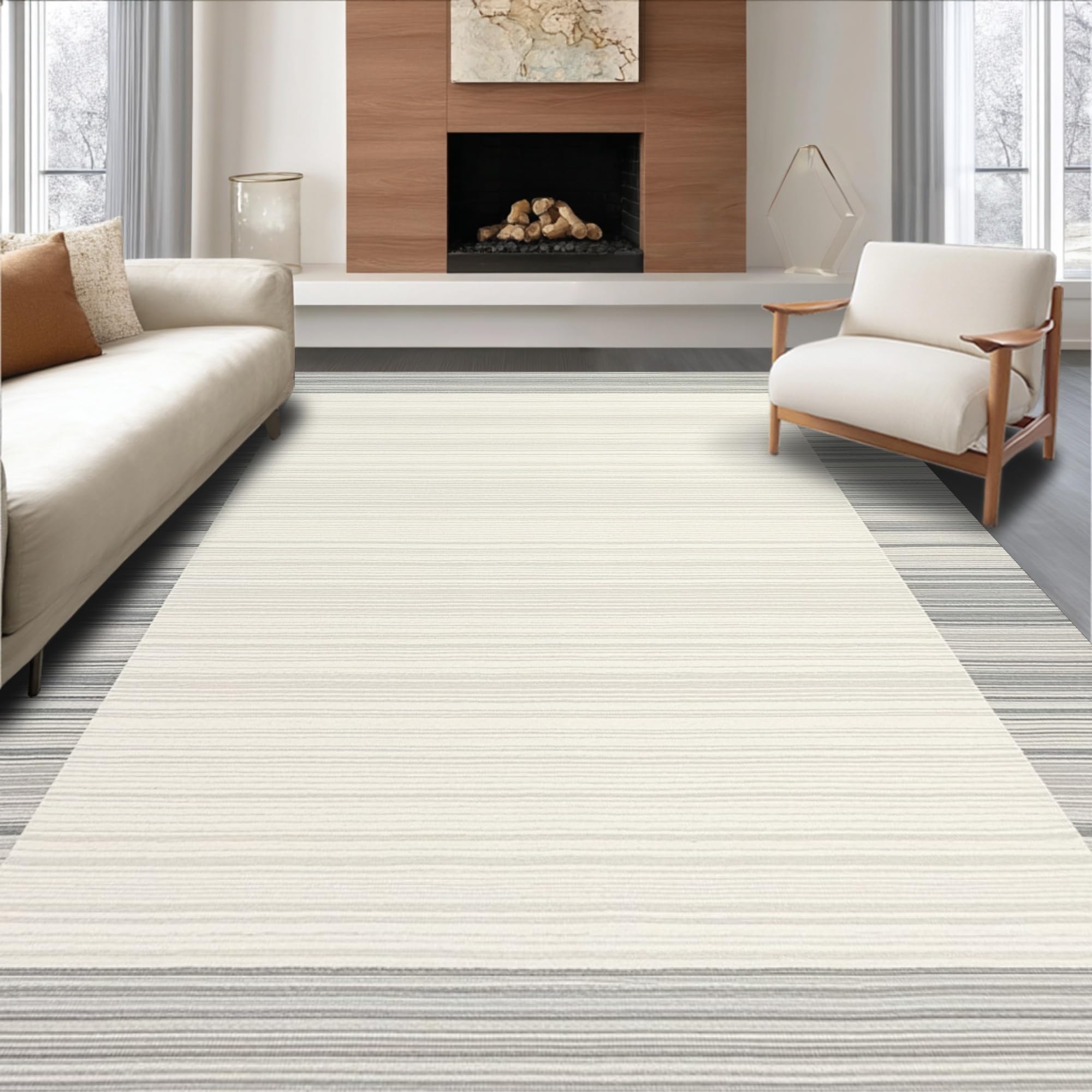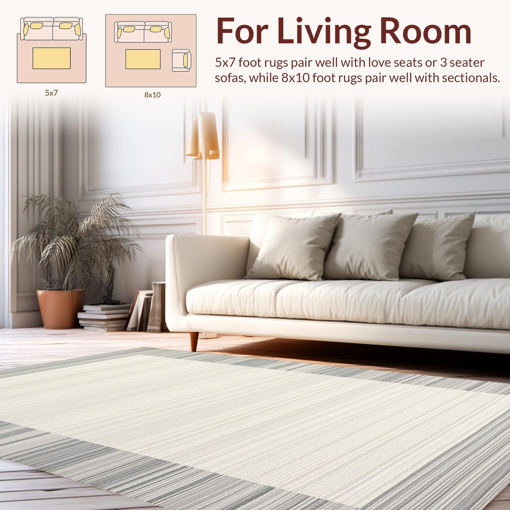 Ultra Soft Area Rug, Non Slip, Stain Resistant, Washable Area Rugs for Living Room, Bedroom, Chic Striped Border Arrangement(Beige) Overview: