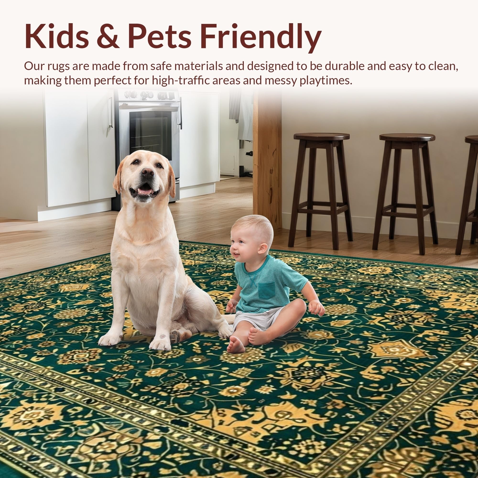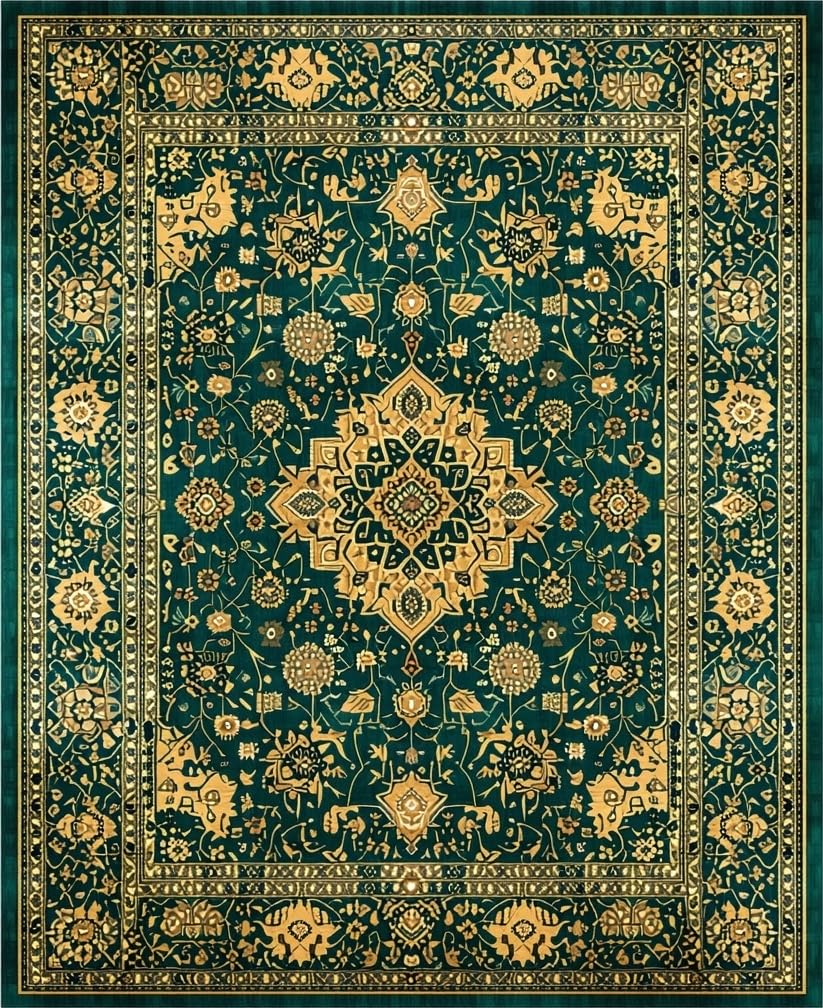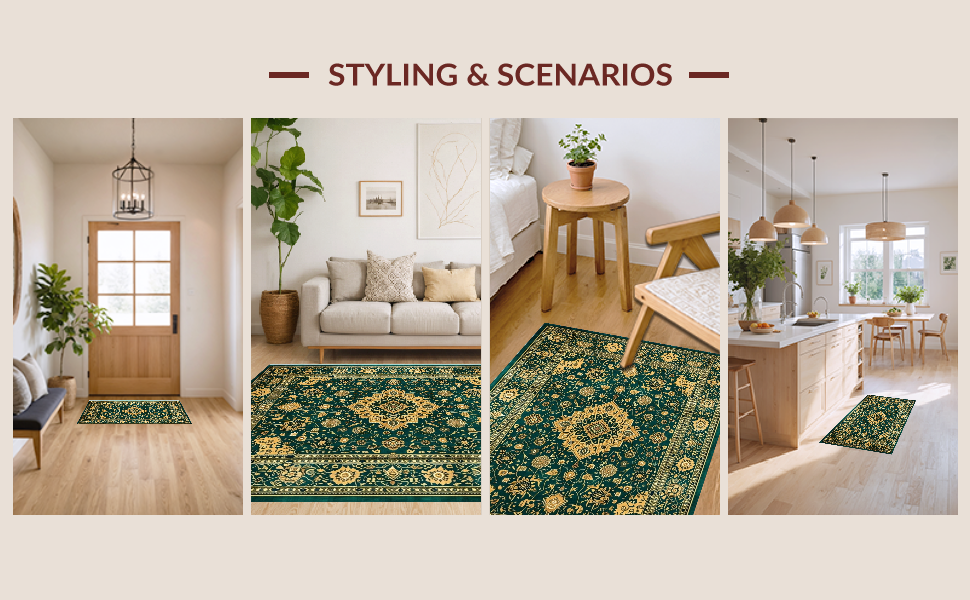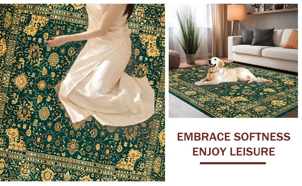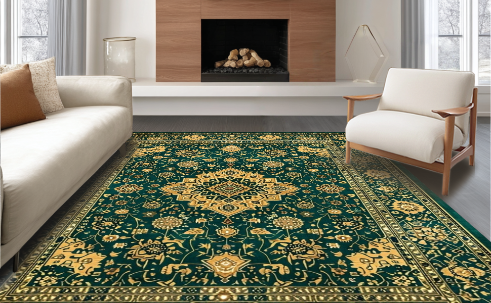 Ultra Soft Area Rug, Non Slip, Stain Resistant, Washable Area Rugs for Living Room, Bedroom, Chic Subtle Floral Medallion Style(Green) Overview: