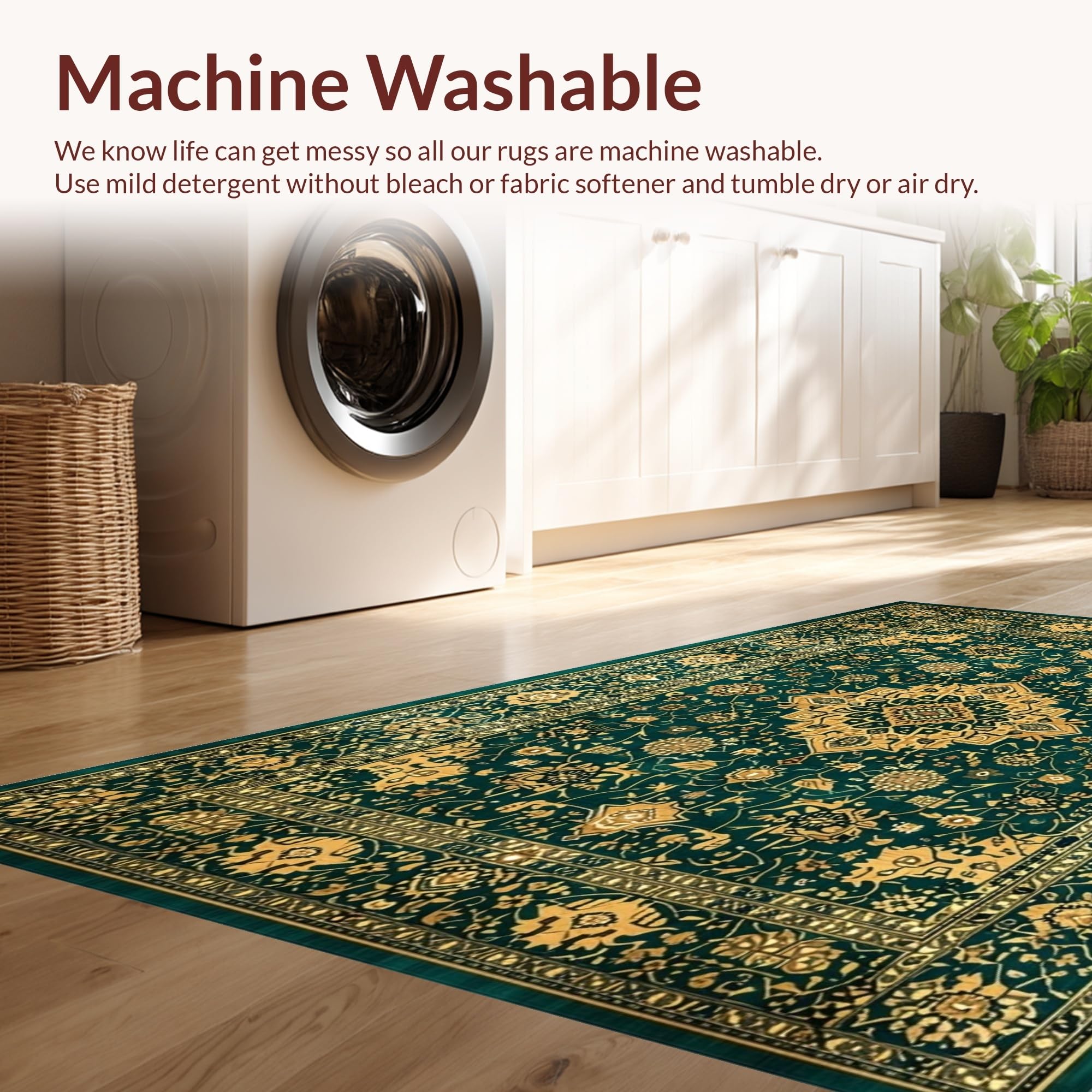 - Machine Washable: Our rugs can be easily thrown in the wash machine.