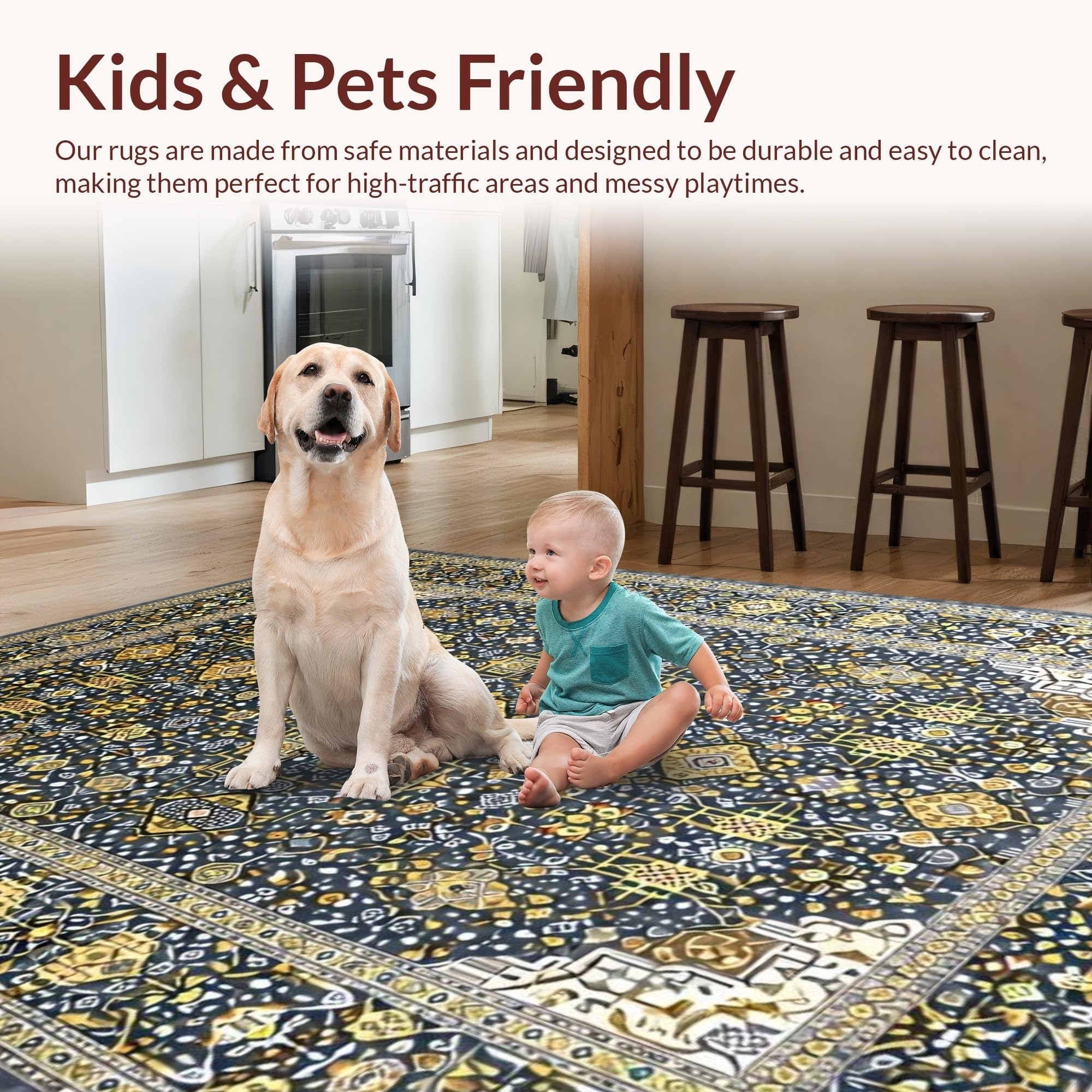 Ultra Soft Area Rug, Non Slip, Stain Resistant, Washable Area Rugs for Living Room, Bedroom, Chic Transitional Abstract Design(Black) Overview: