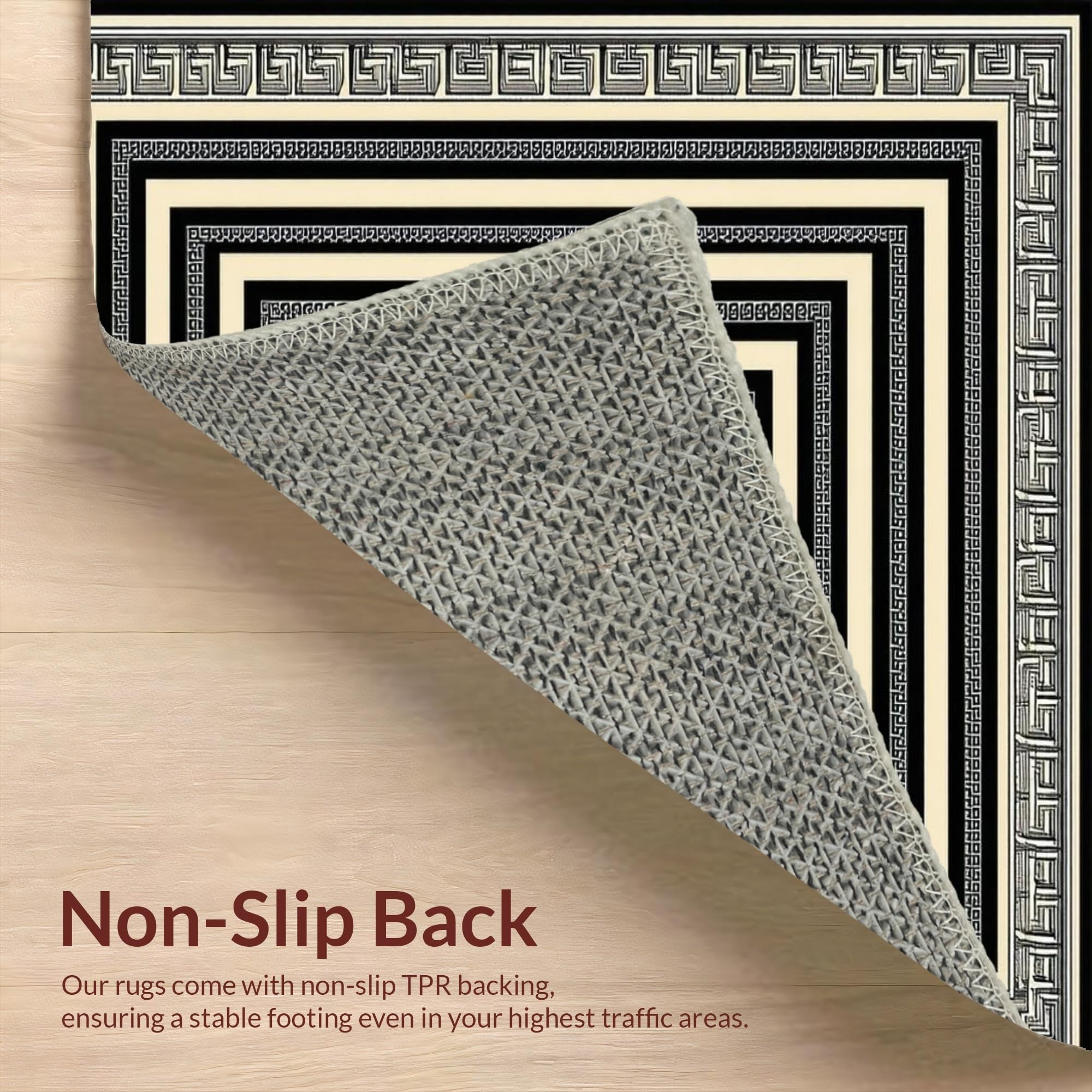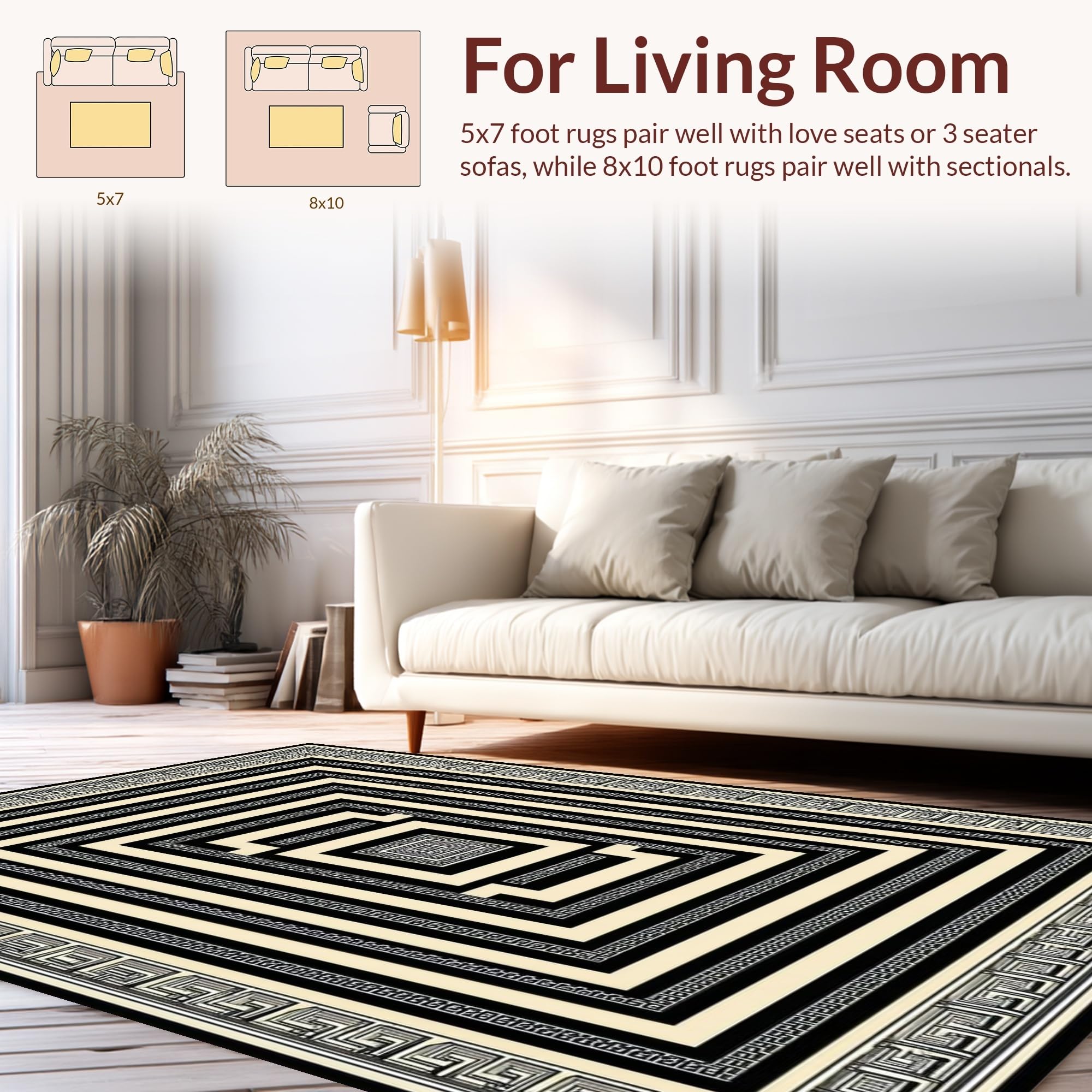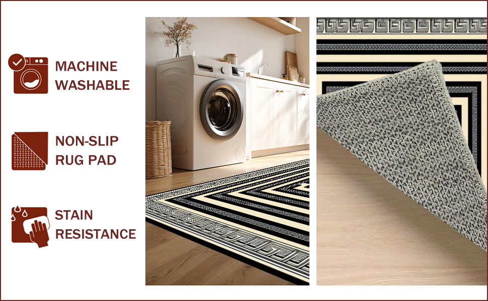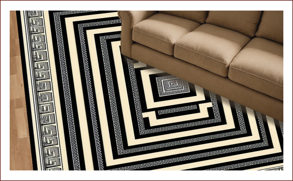 Ultra Soft Area Rug, Non Slip, Stain Resistant, Washable Area Rugs for Living Room, Bedroom, Chic Transitional Greek Key Motif(Gray) Overview: