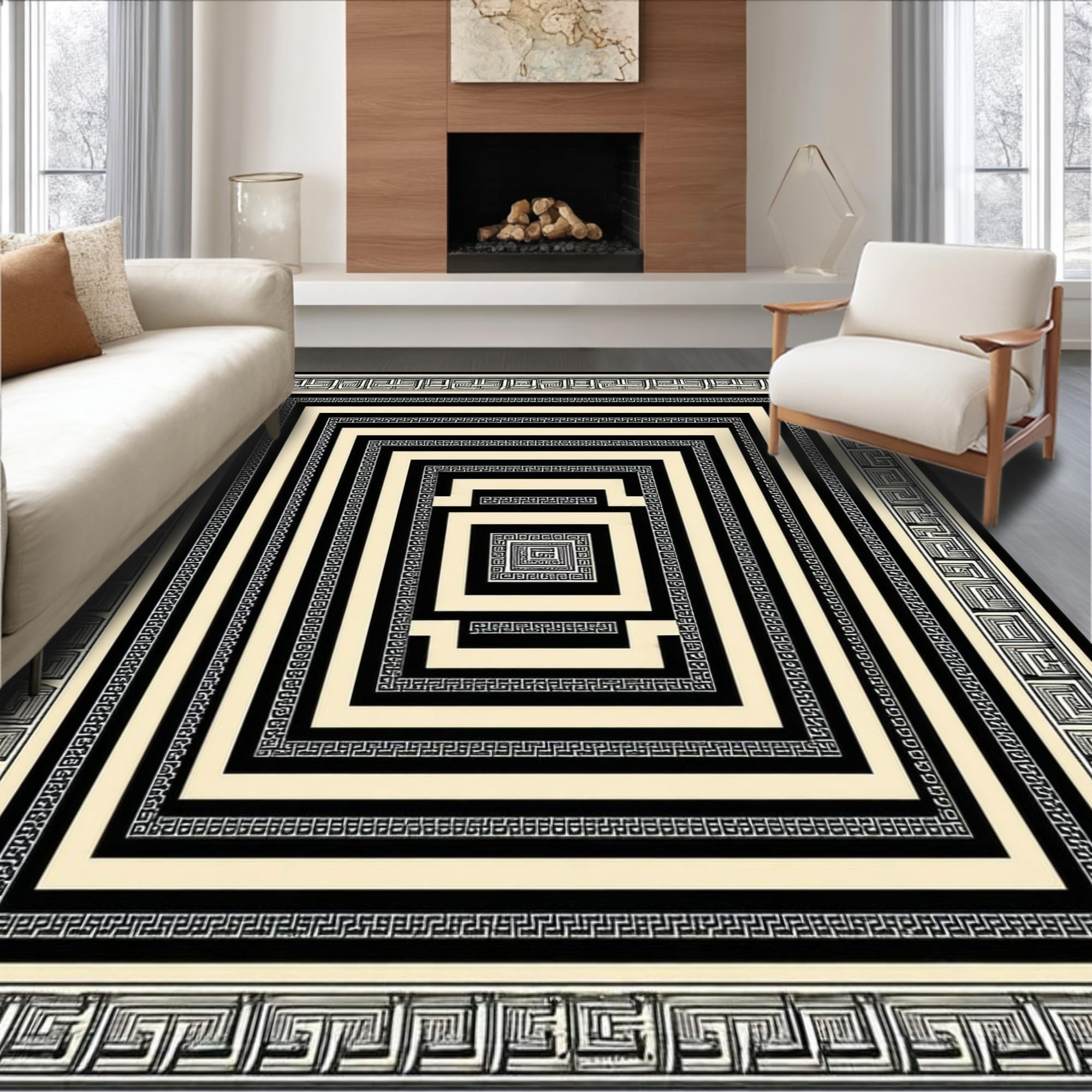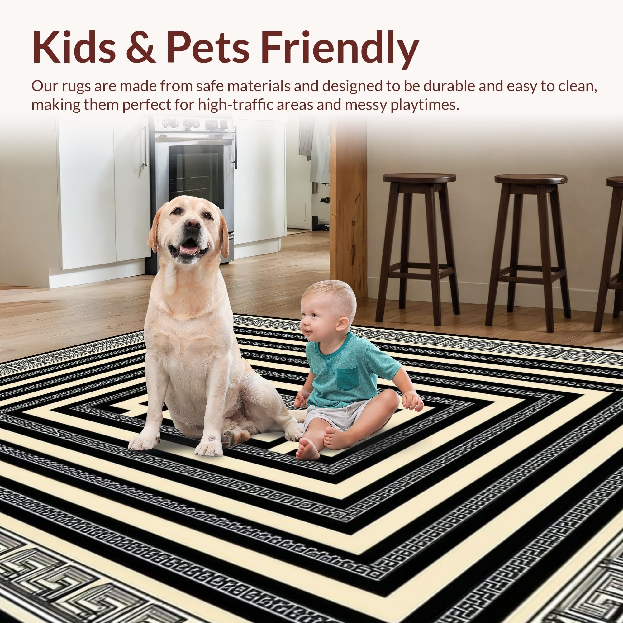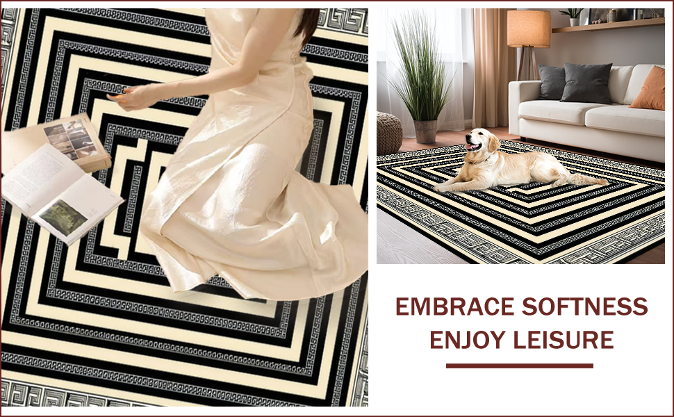 Ultra Soft Area Rug, Non Slip, Stain Resistant, Washable Area Rugs for Living Room, Bedroom, Chic Transitional Greek Key Motif(Gray) Overview: