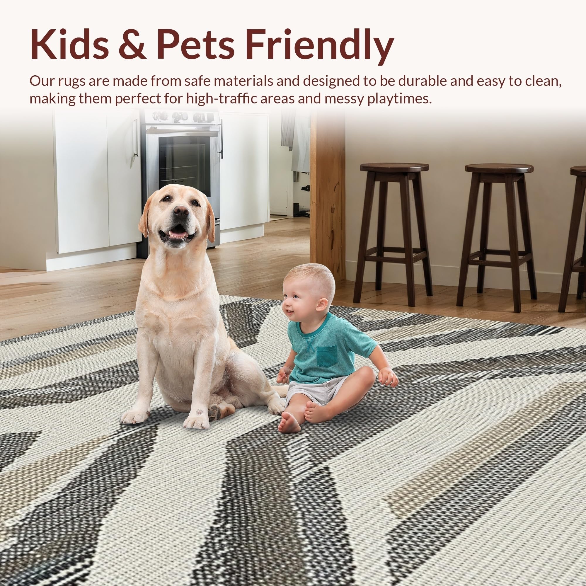Ultra Soft Area Rug, Non Slip, Stain Resistant, Washable Area Rugs for Living Room, Bedroom, Chic Transitional Trellis Arrangement(Beige) Overview: