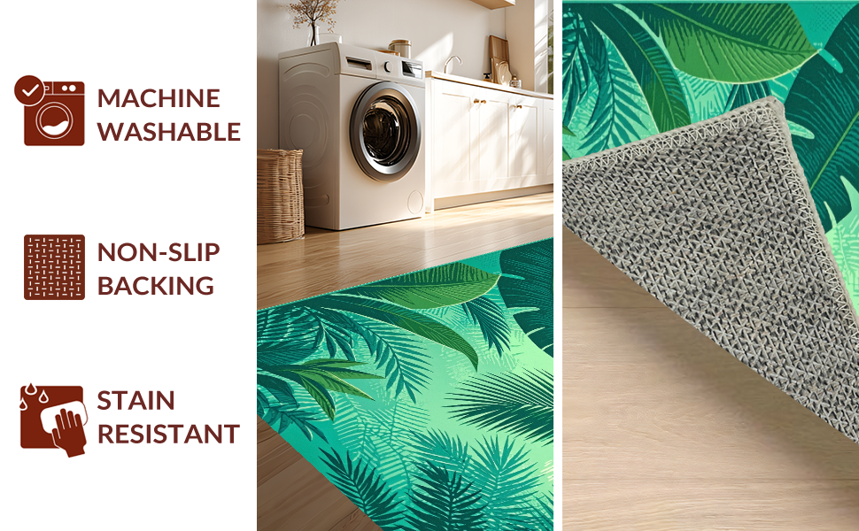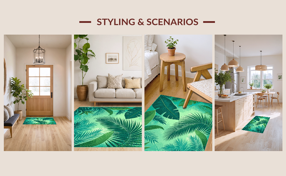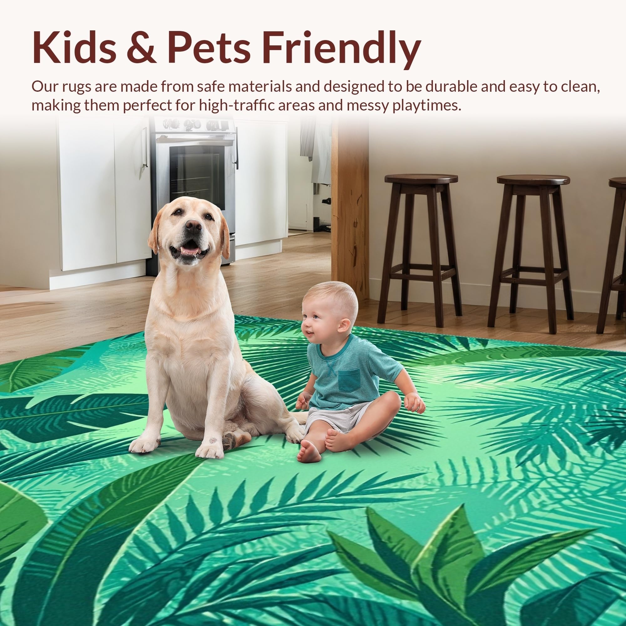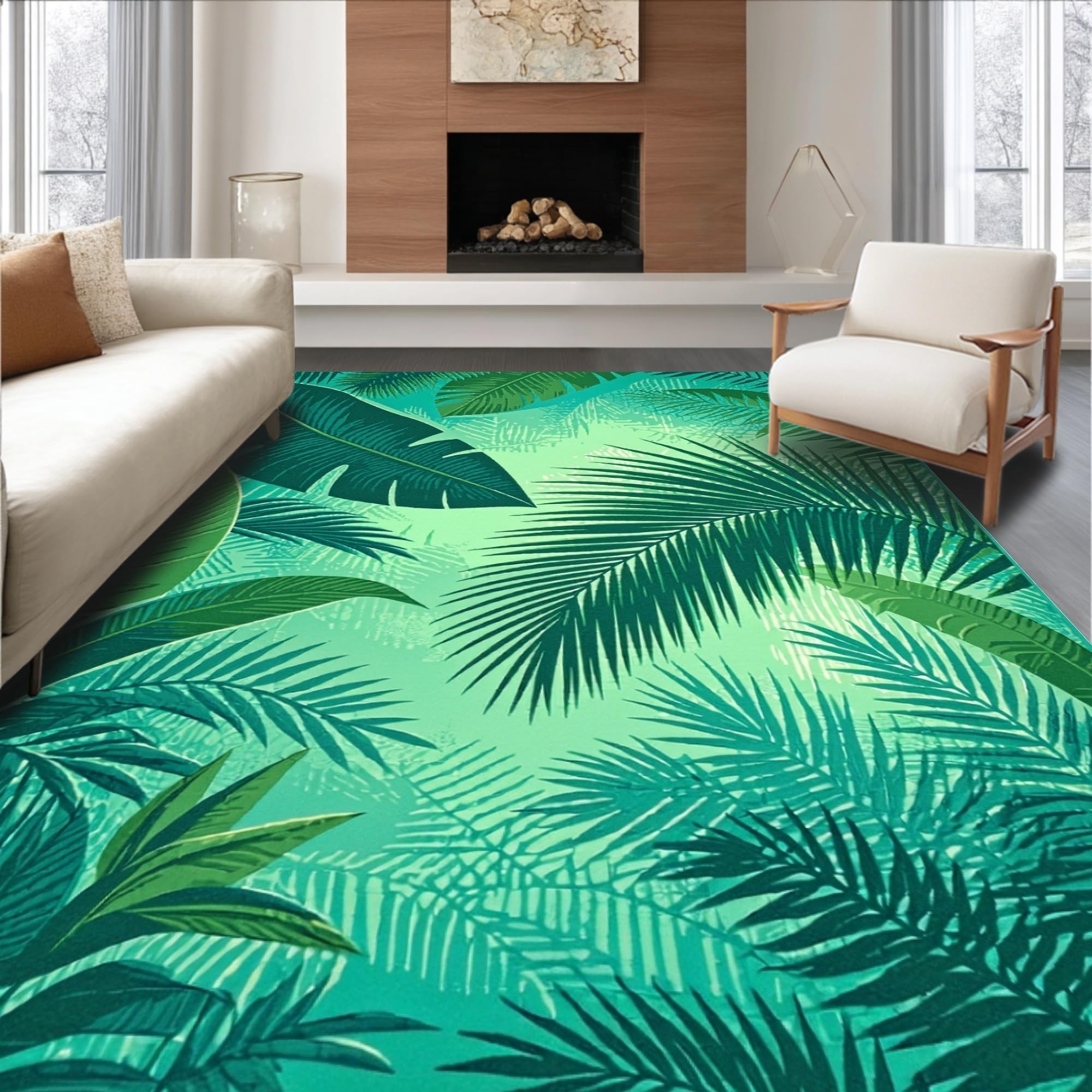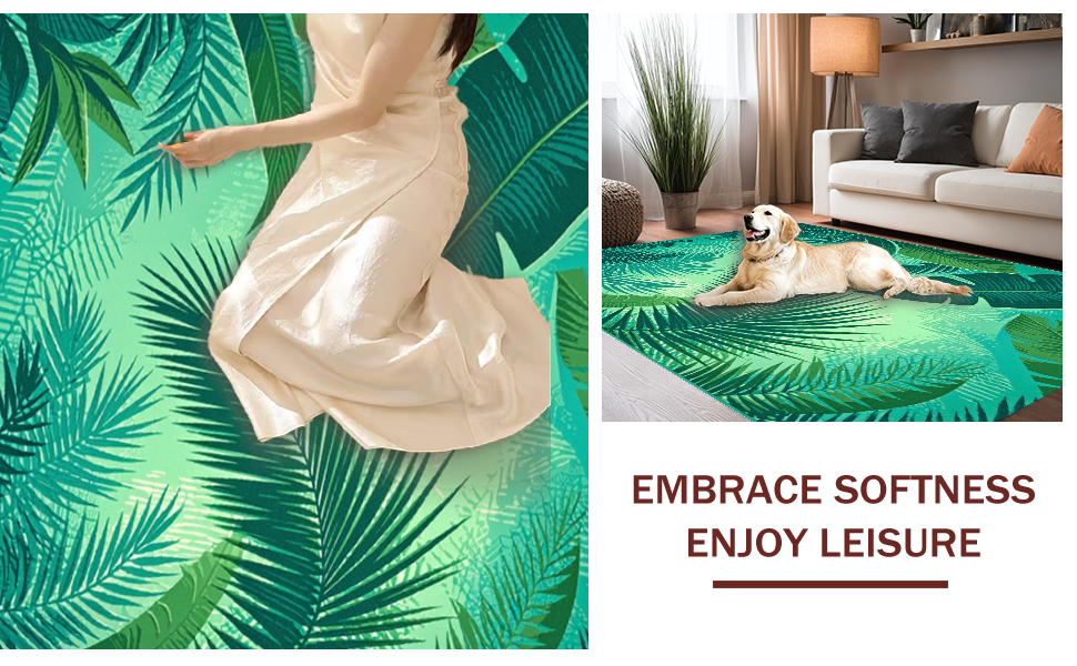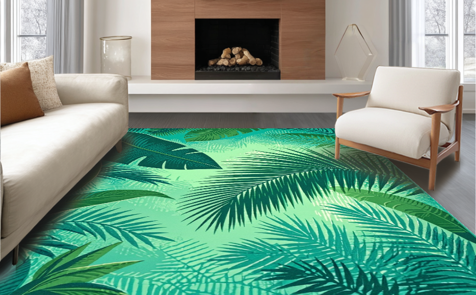Ultra Soft Area Rug, Non Slip, Stain Resistant, Washable Area Rugs for Living Room, Bedroom, Chic Tropical Graphic Impression(Green) Overview: