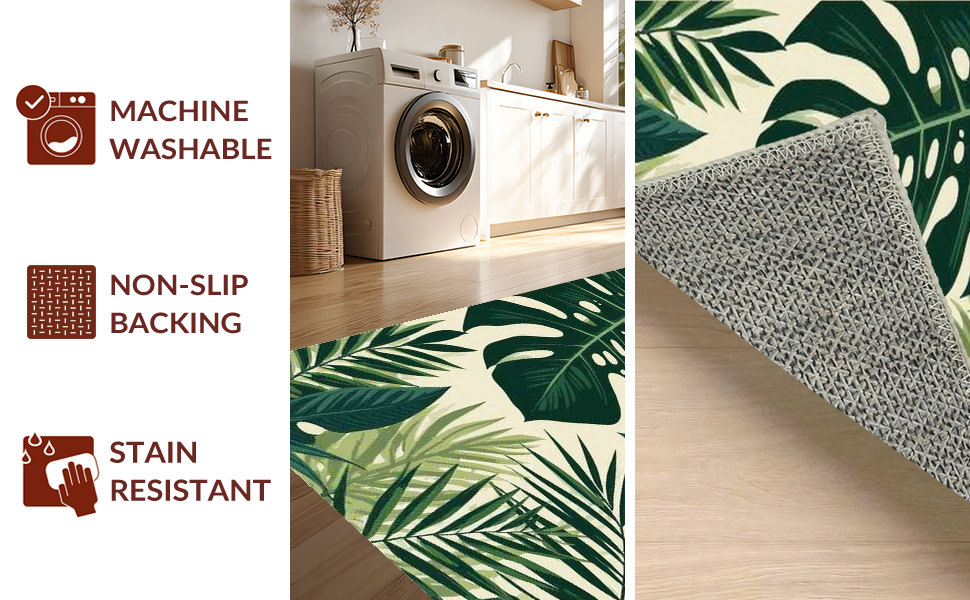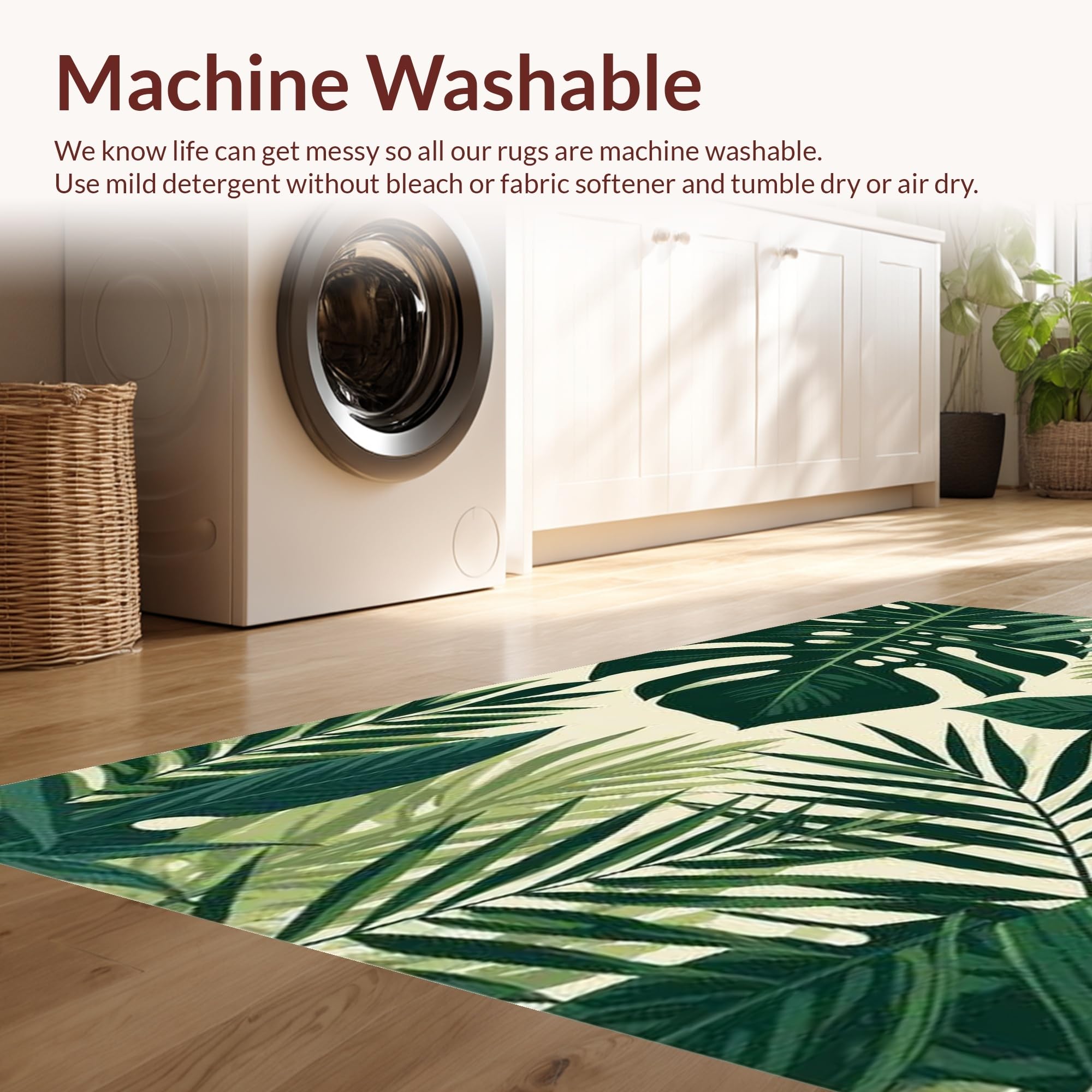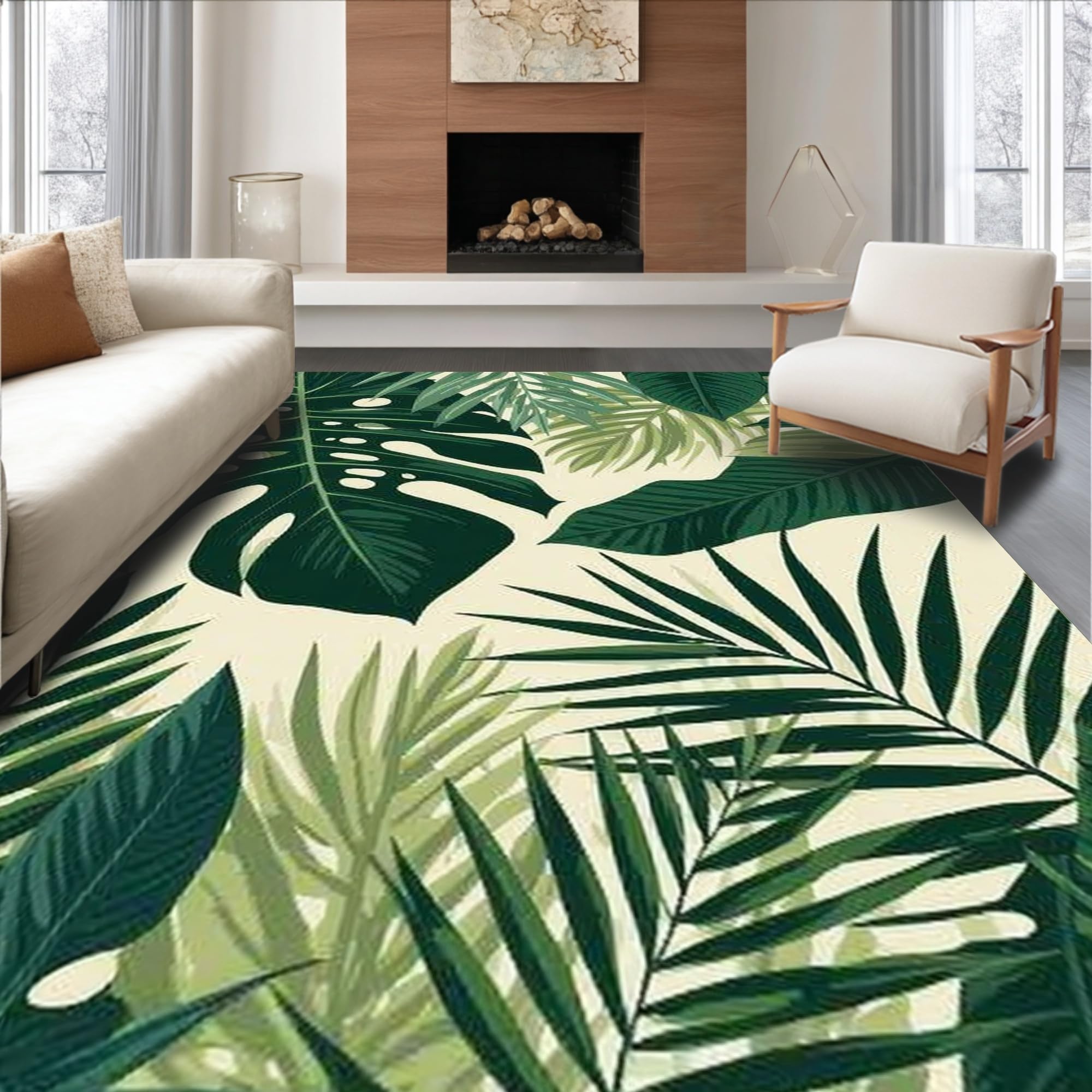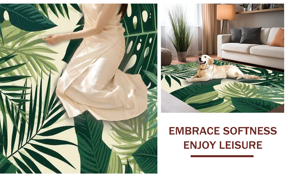 Ultra Soft Area Rug, Non Slip, Stain Resistant, Washable Area Rugs for Living Room, Bedroom, Chic Tropical Greenery Motif(Green) Overview: