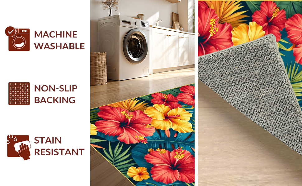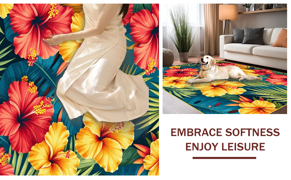 Ultra Soft Area Rug, Non Slip, Stain Resistant, Washable Area Rugs for Living Room, Bedroom, Chic Tropical Inspired Color Palette(Red) Overview: