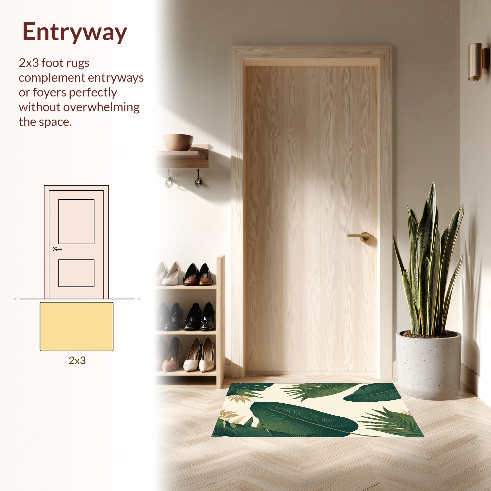 Flatwoven High Traffic Area Rug, Chic Tropical Oasis Feel, Non Slip, Stain Resistant, Washable Area Rugs for Living Room, Bedroom (Green) Overview: