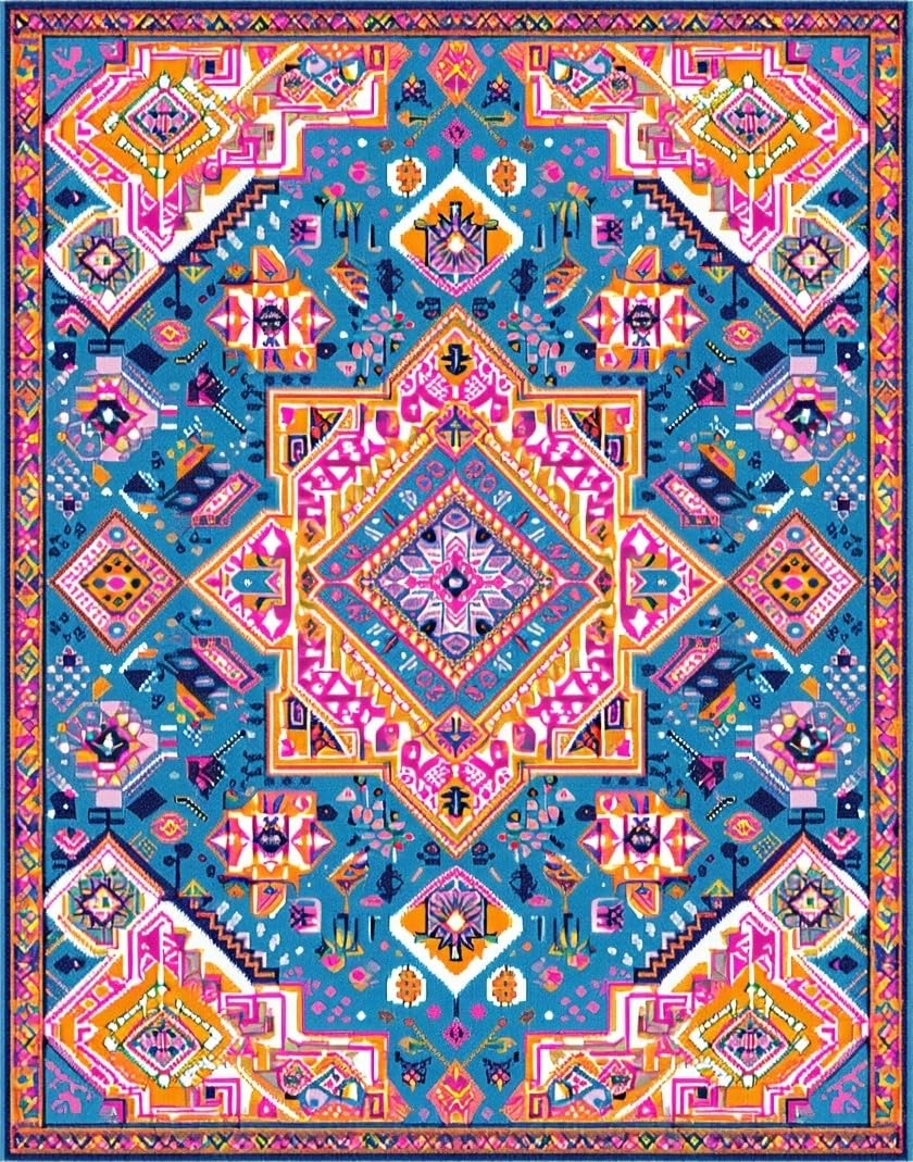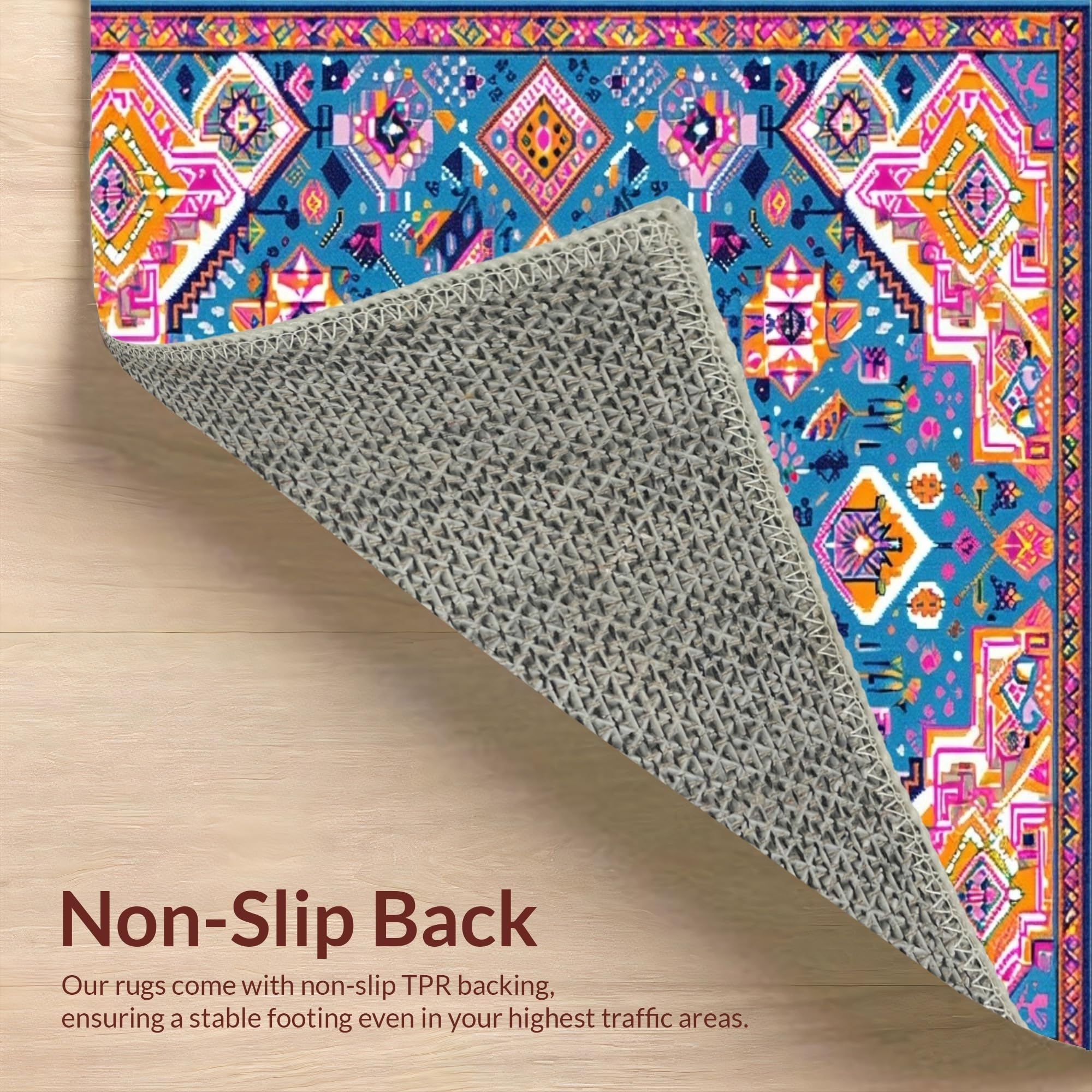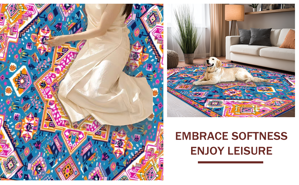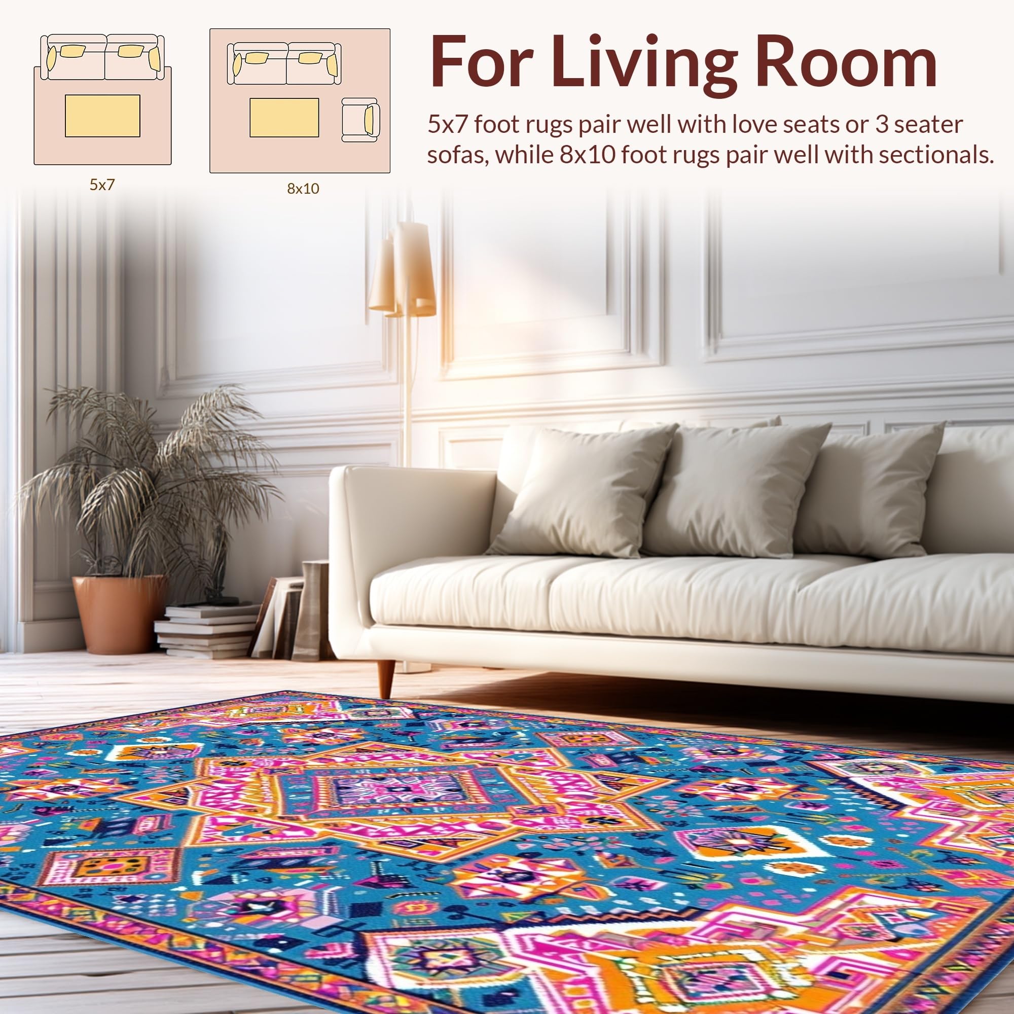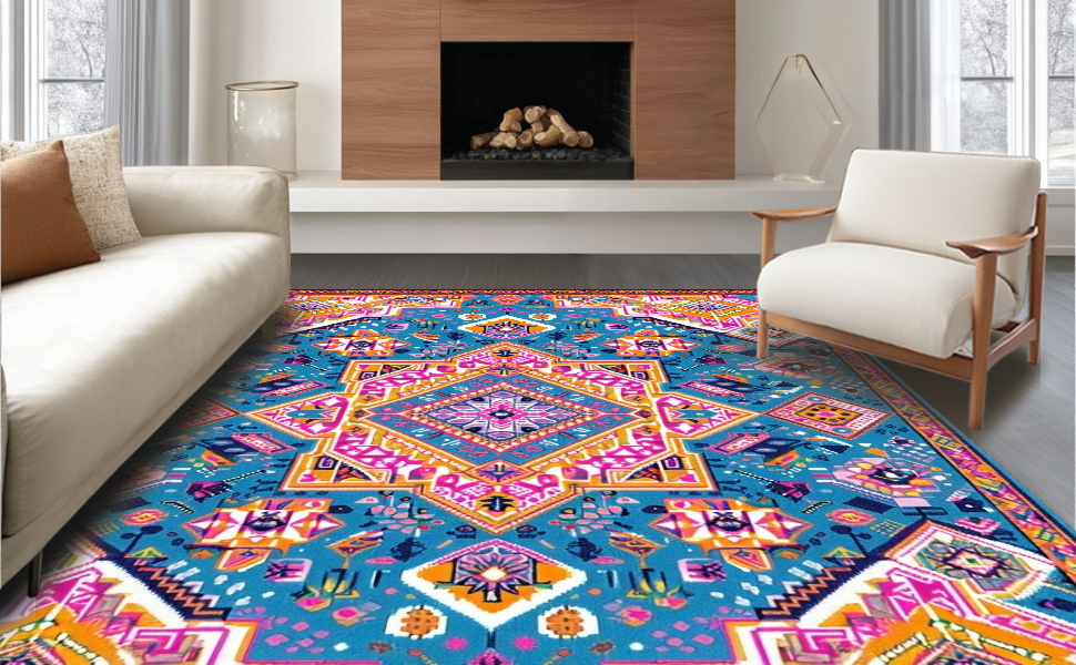 Ultra Soft Area Rug, Non Slip, Stain Resistant, Washable Area Rugs for Living Room, Bedroom, Chic Urban Colorful Pattern Fusion(Blue) Overview: