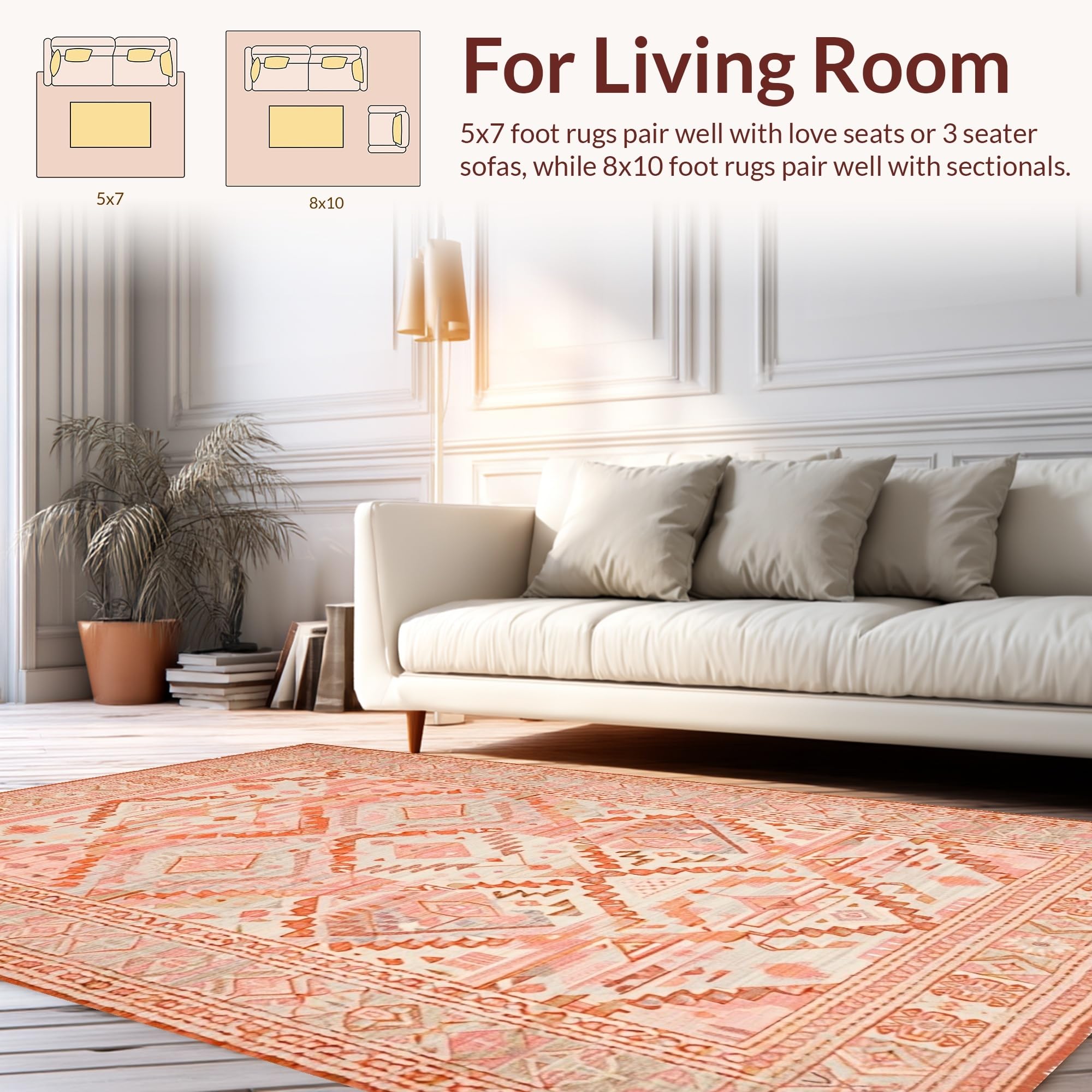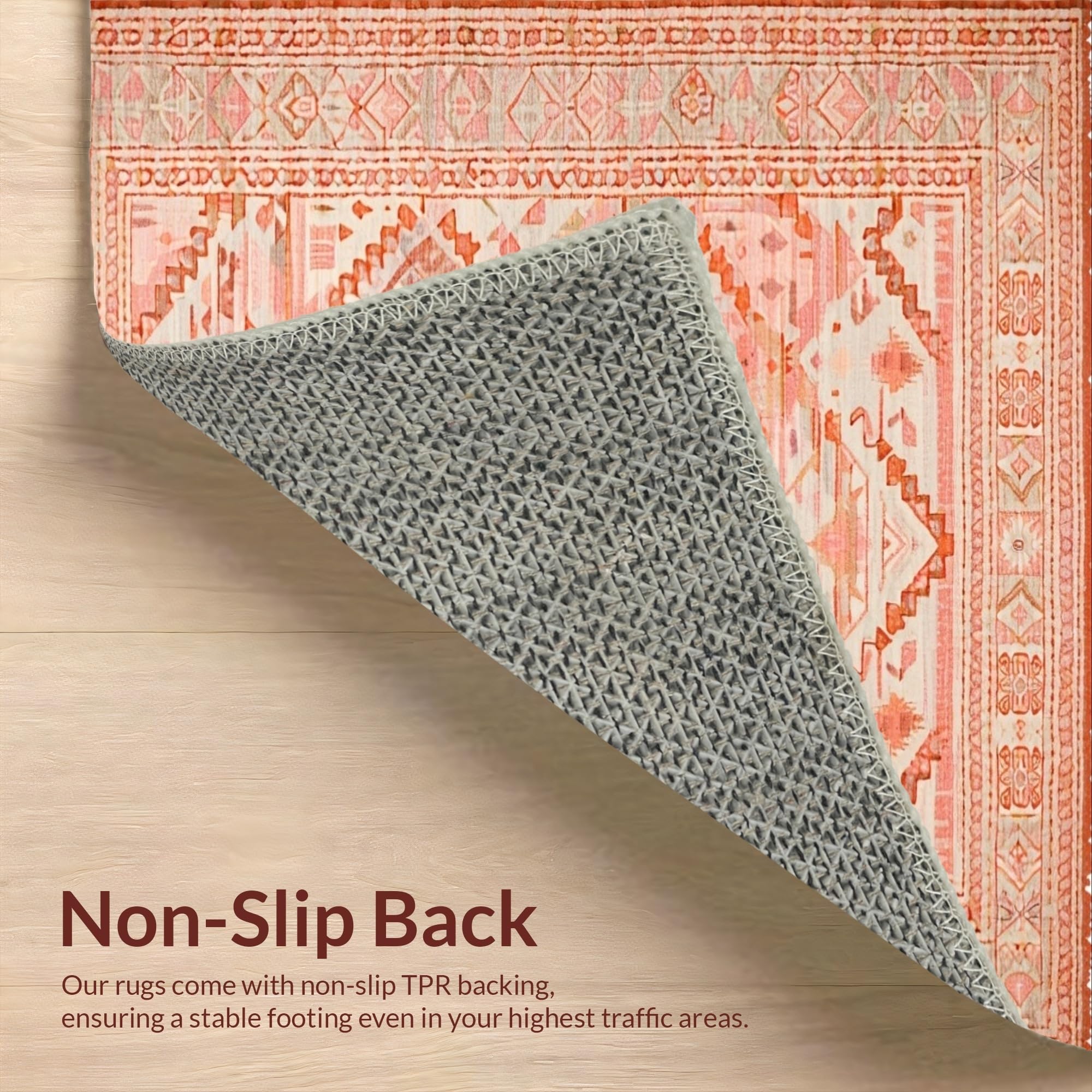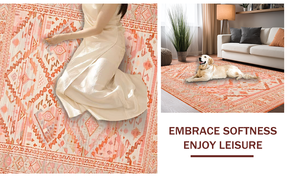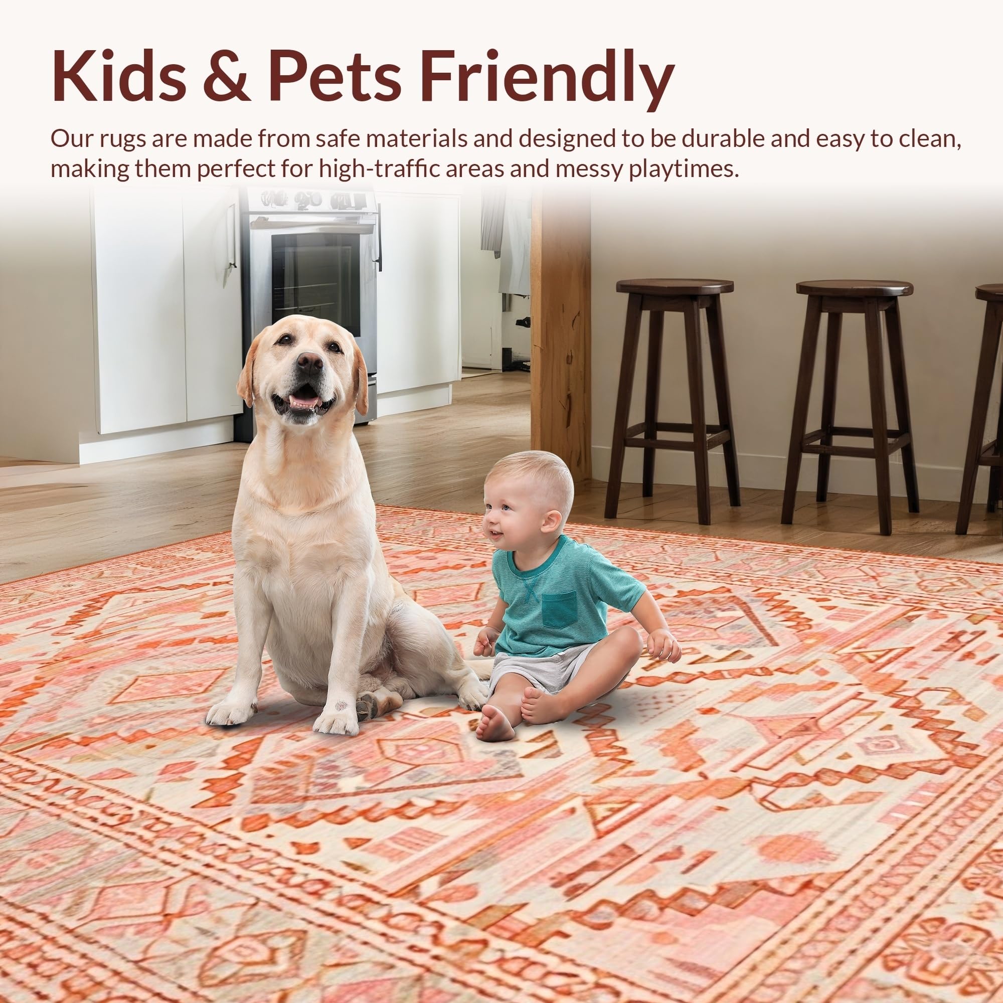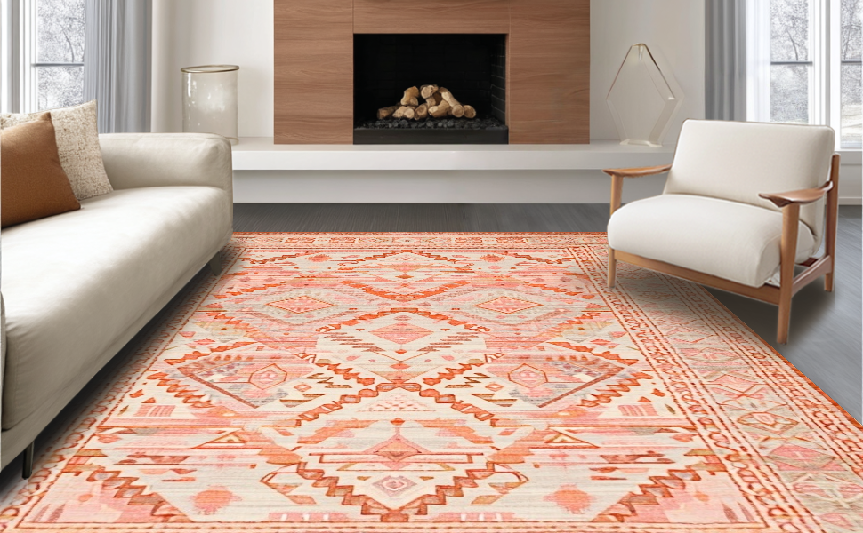Ultra Soft Area Rug, Non Slip, Stain Resistant, Washable Area Rugs for Living Room, Bedroom, Chic Vibrant Ethnic Design(Pink) Overview: