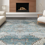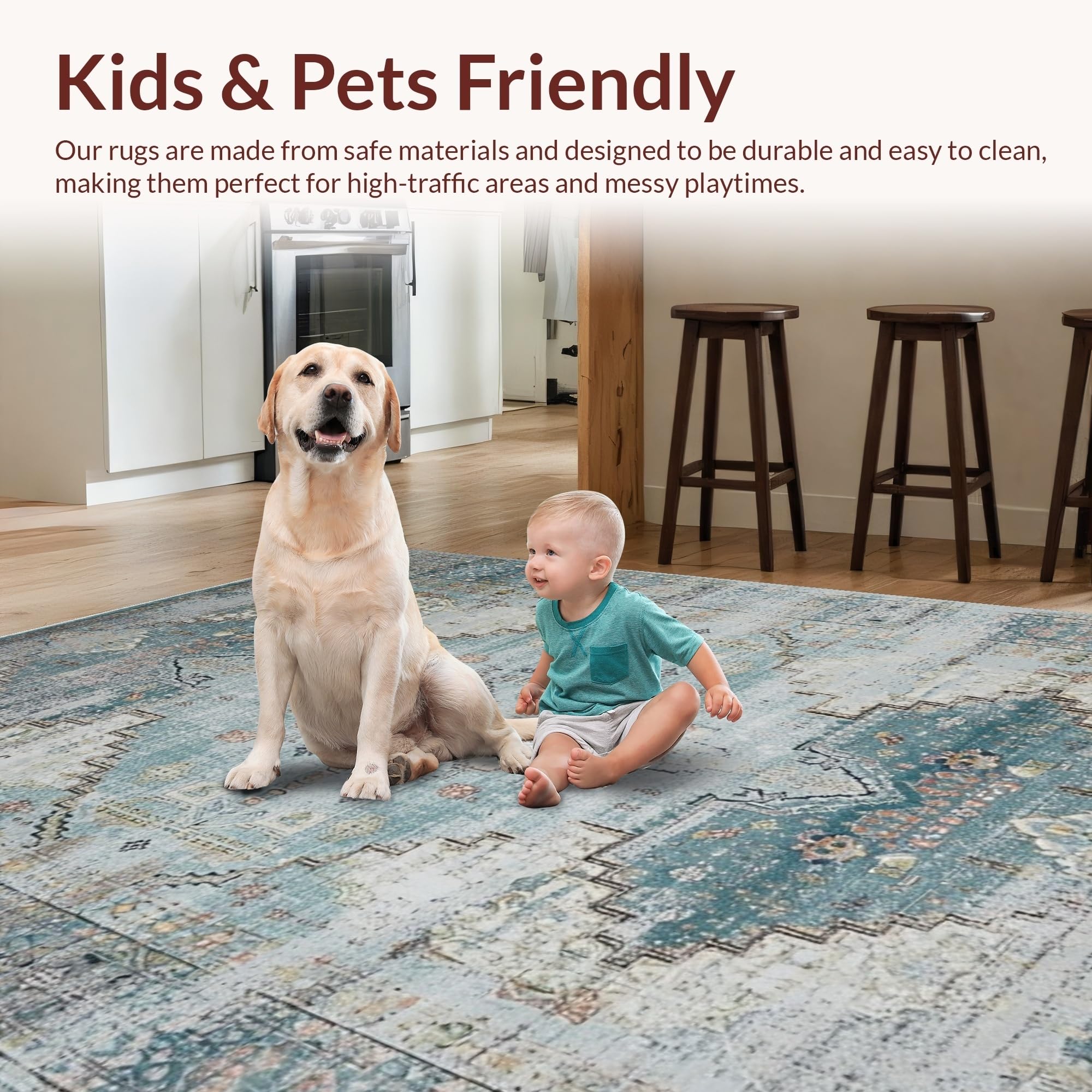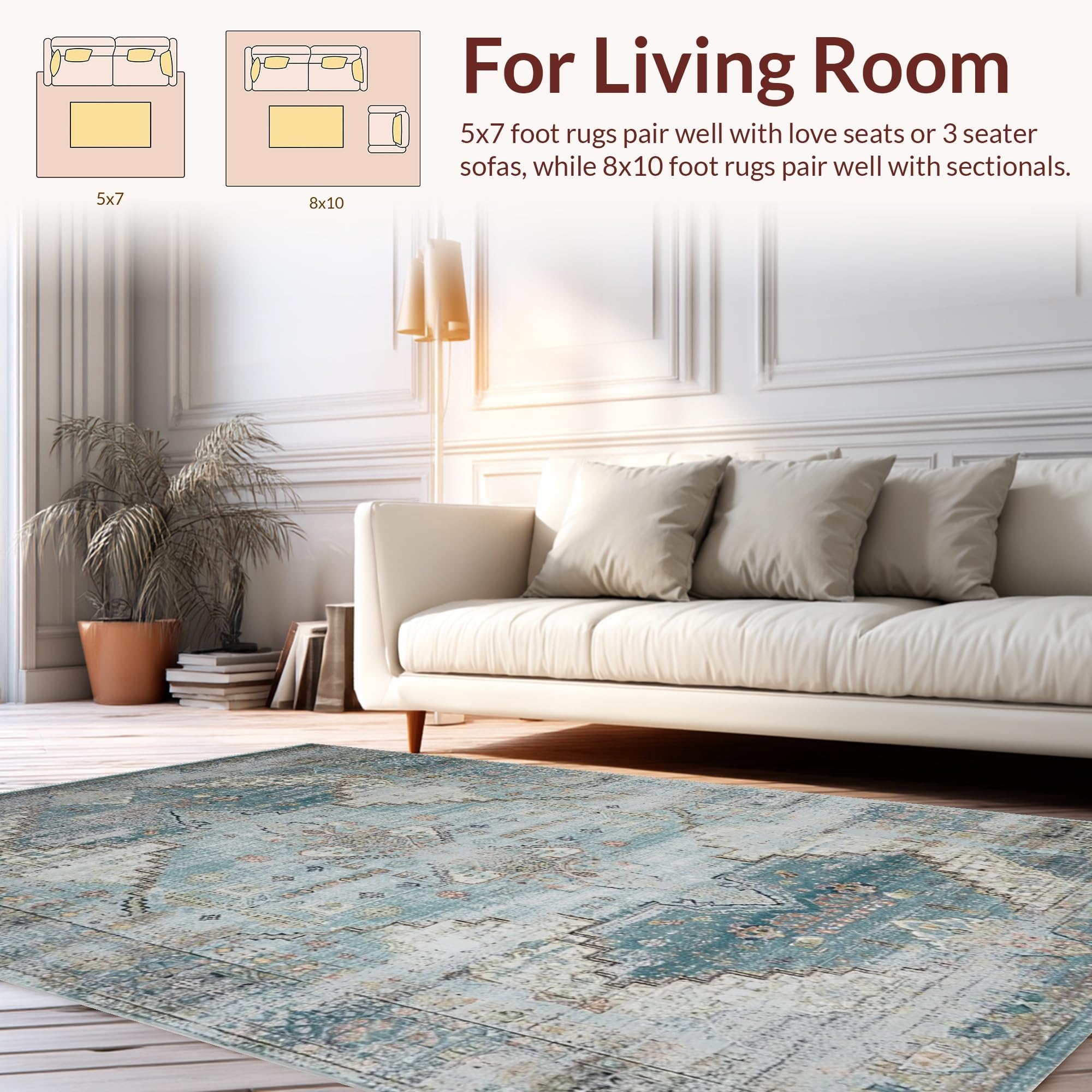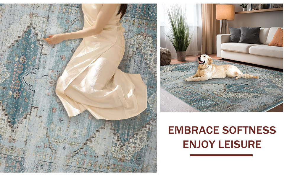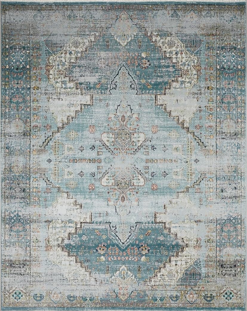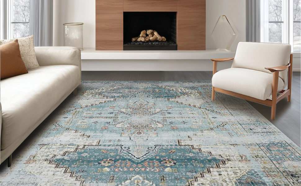 Ultra Soft Area Rug, Non Slip, Stain Resistant, Washable Area Rugs for Living Room, Bedroom, Chic Vintage Layered Diamond Design(Blue) Overview: