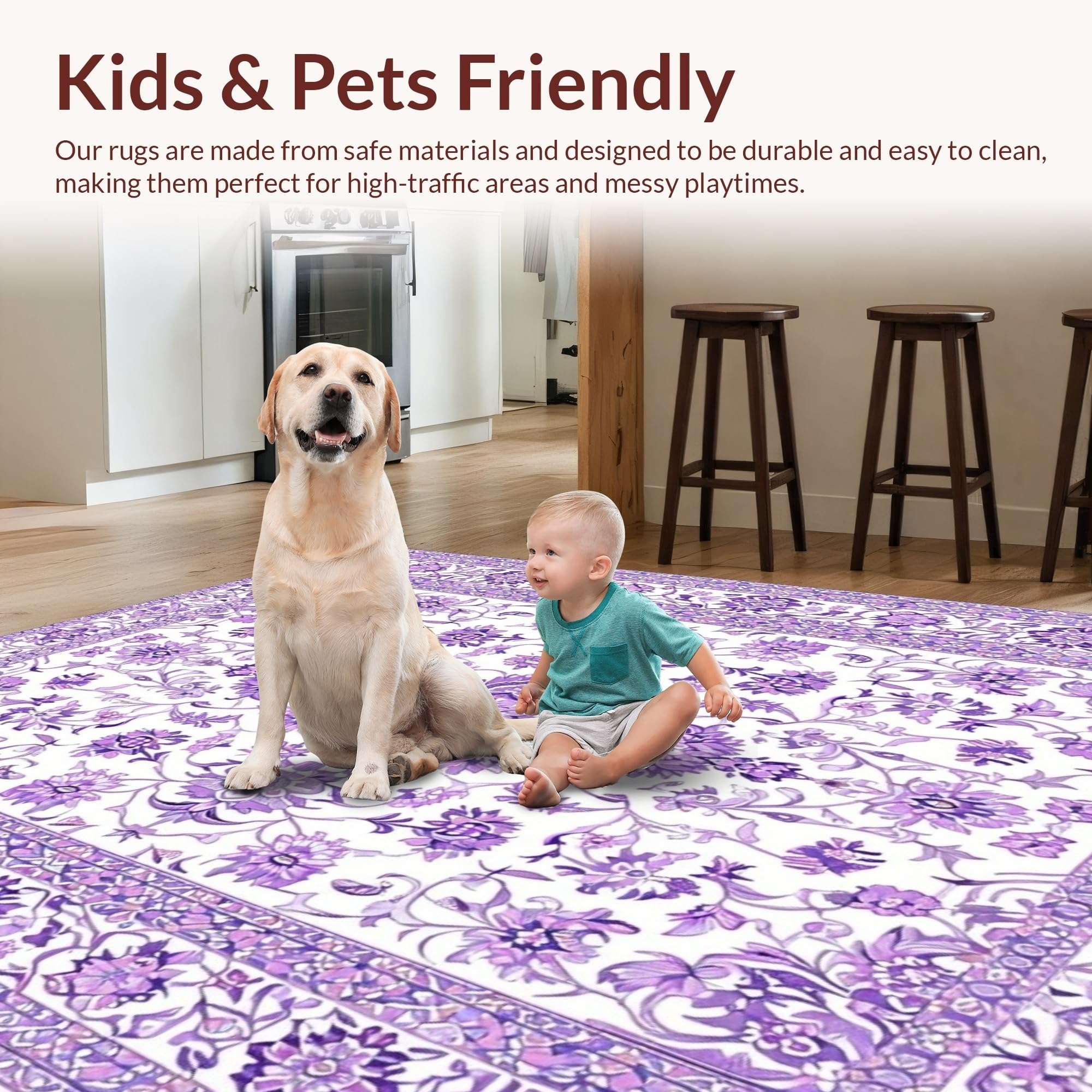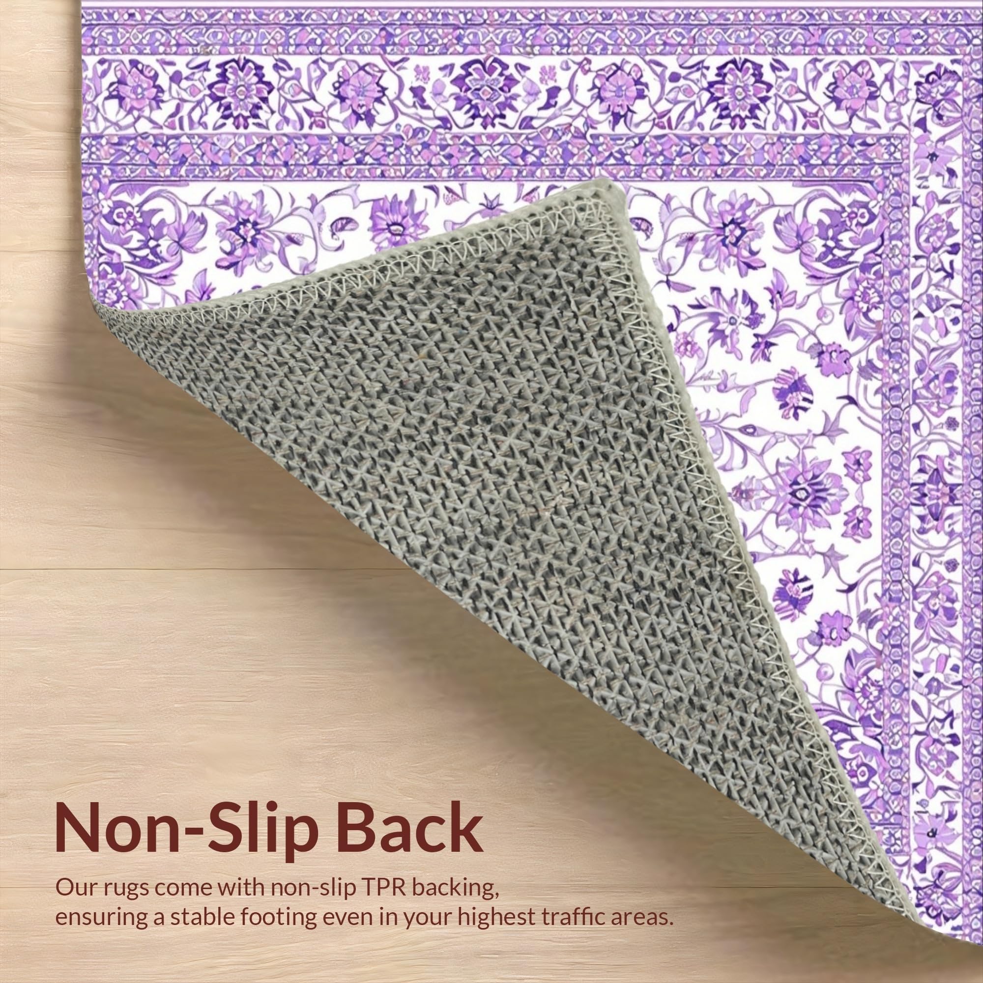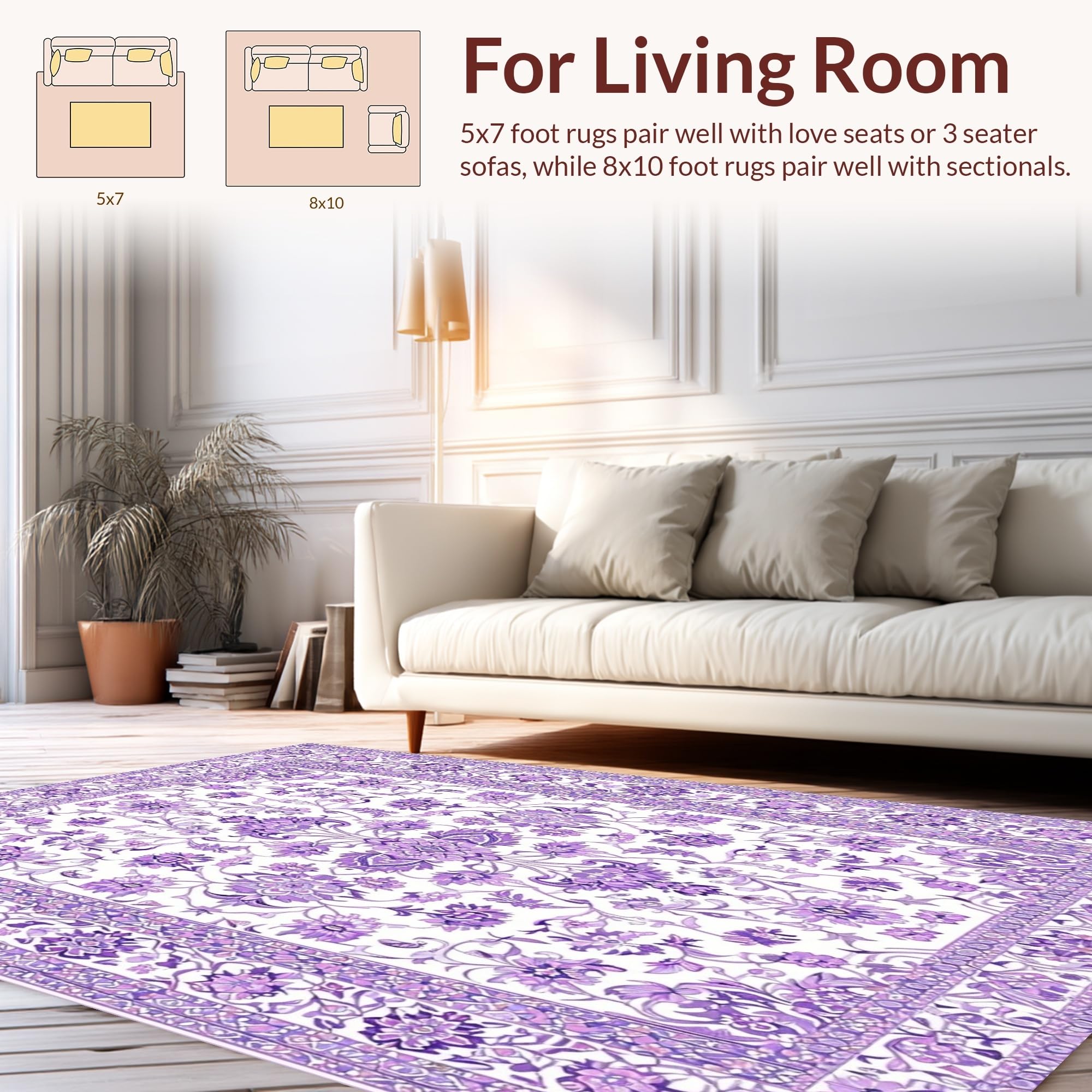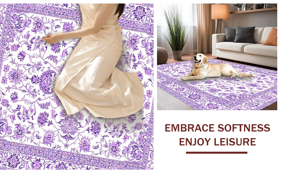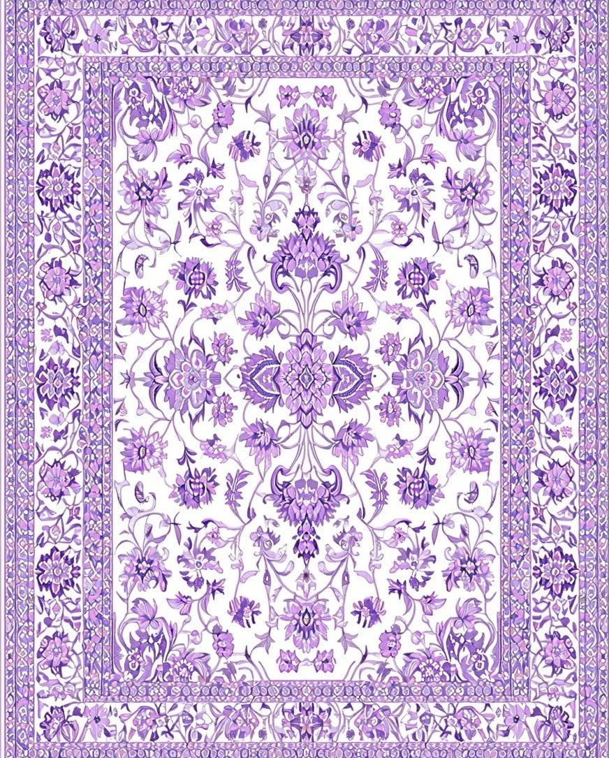 Ultra Soft Area Rug, Non Slip, Stain Resistant, Washable Area Rugs for Living Room, Bedroom, Chic Vintage Purple Blossom Design(Purple) Overview: