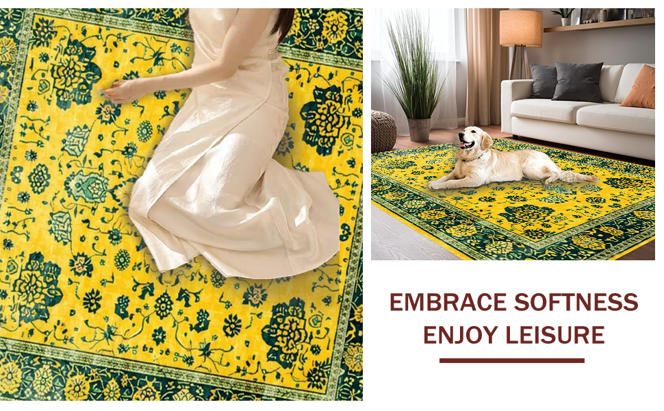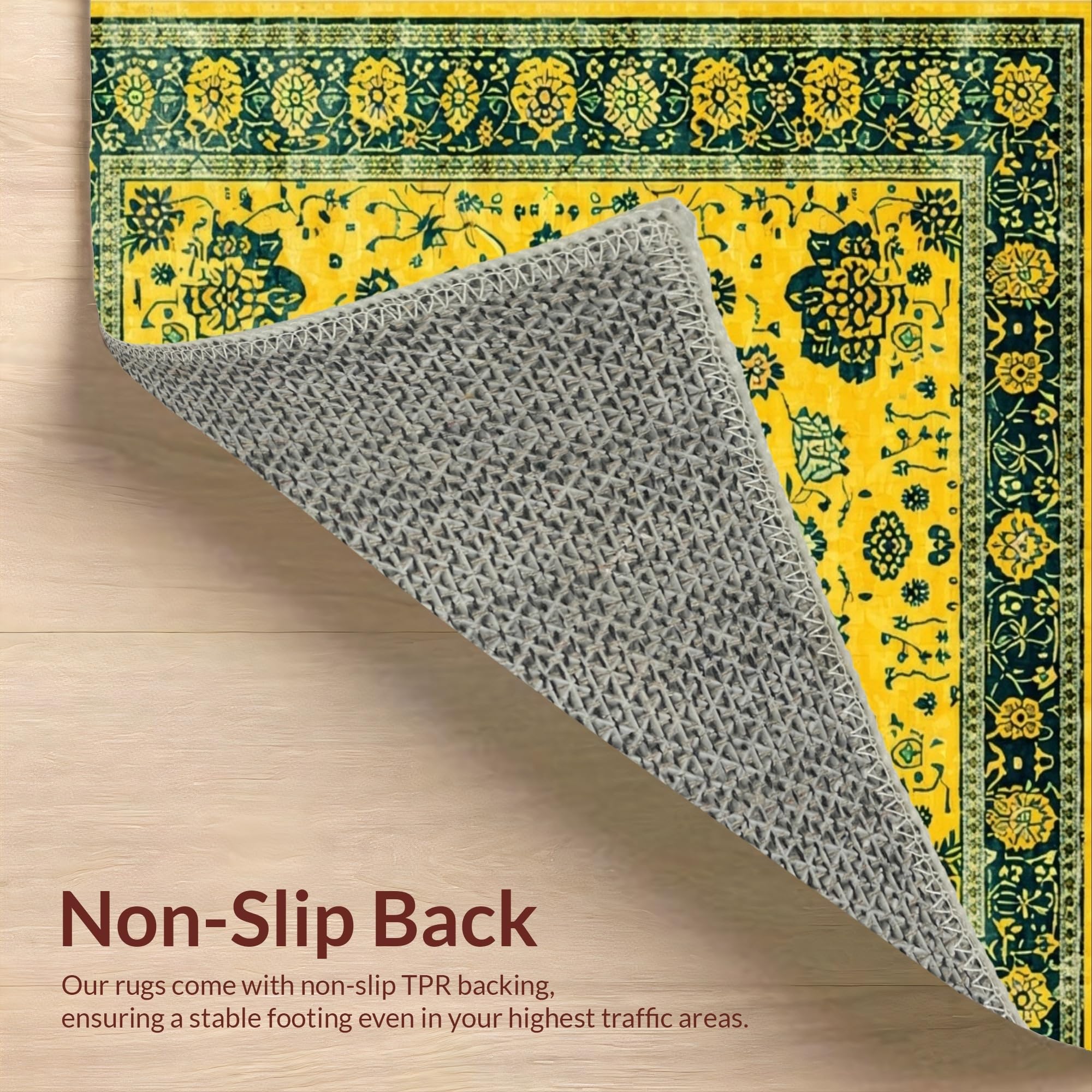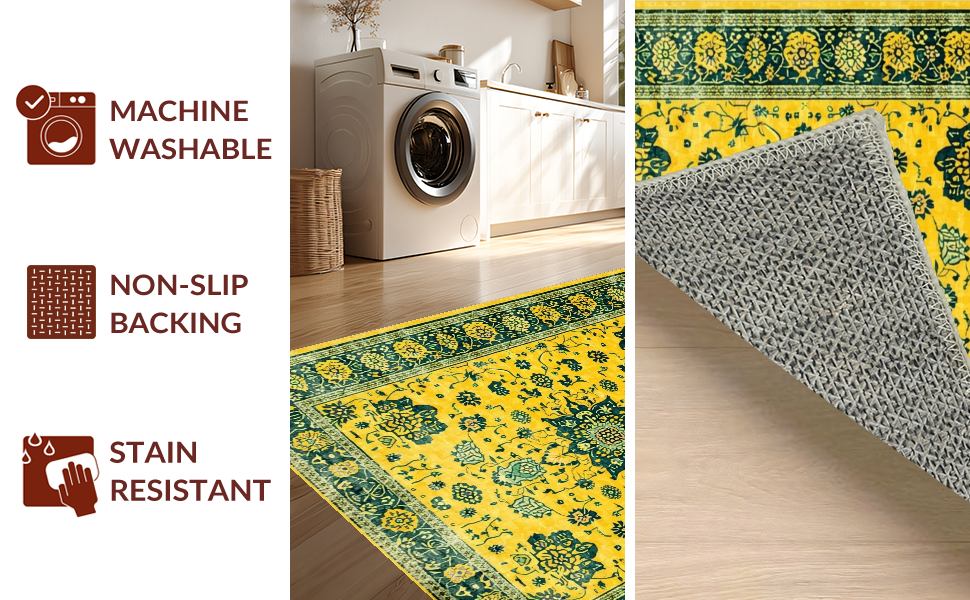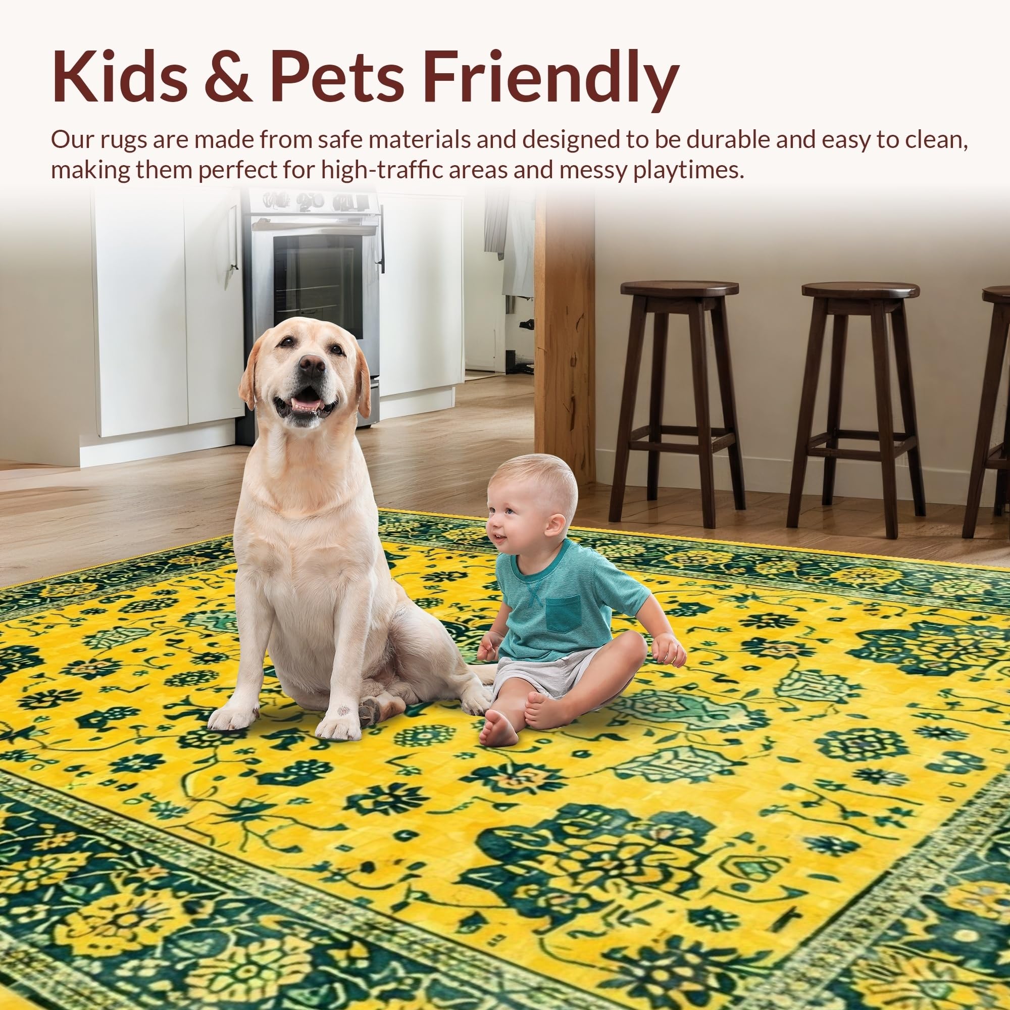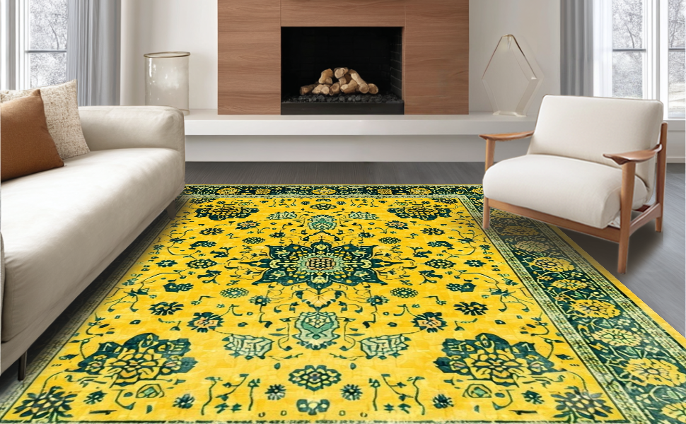Ultra Soft Area Rug, Non Slip, Stain Resistant, Washable Area Rugs for Living Room, Bedroom, Chic Vintage Symmetrical Design(Yellow) Overview: