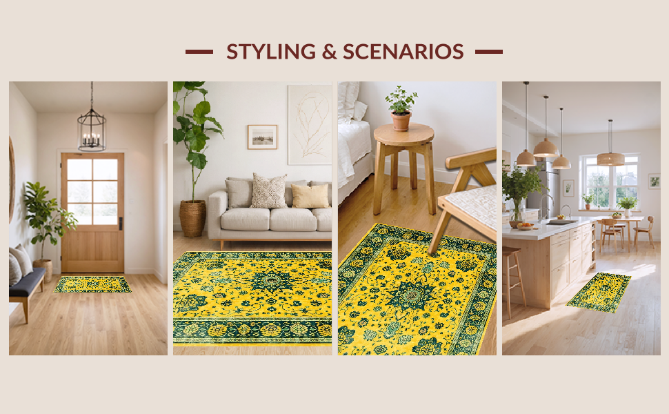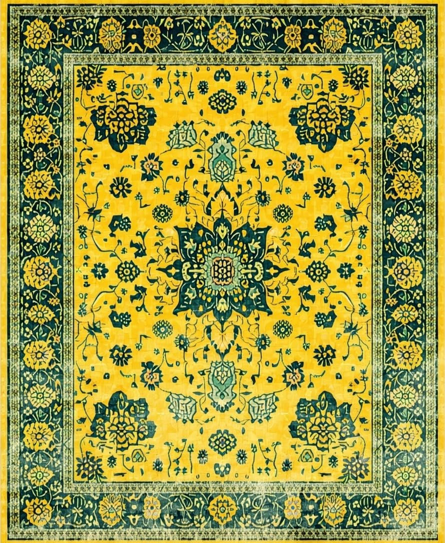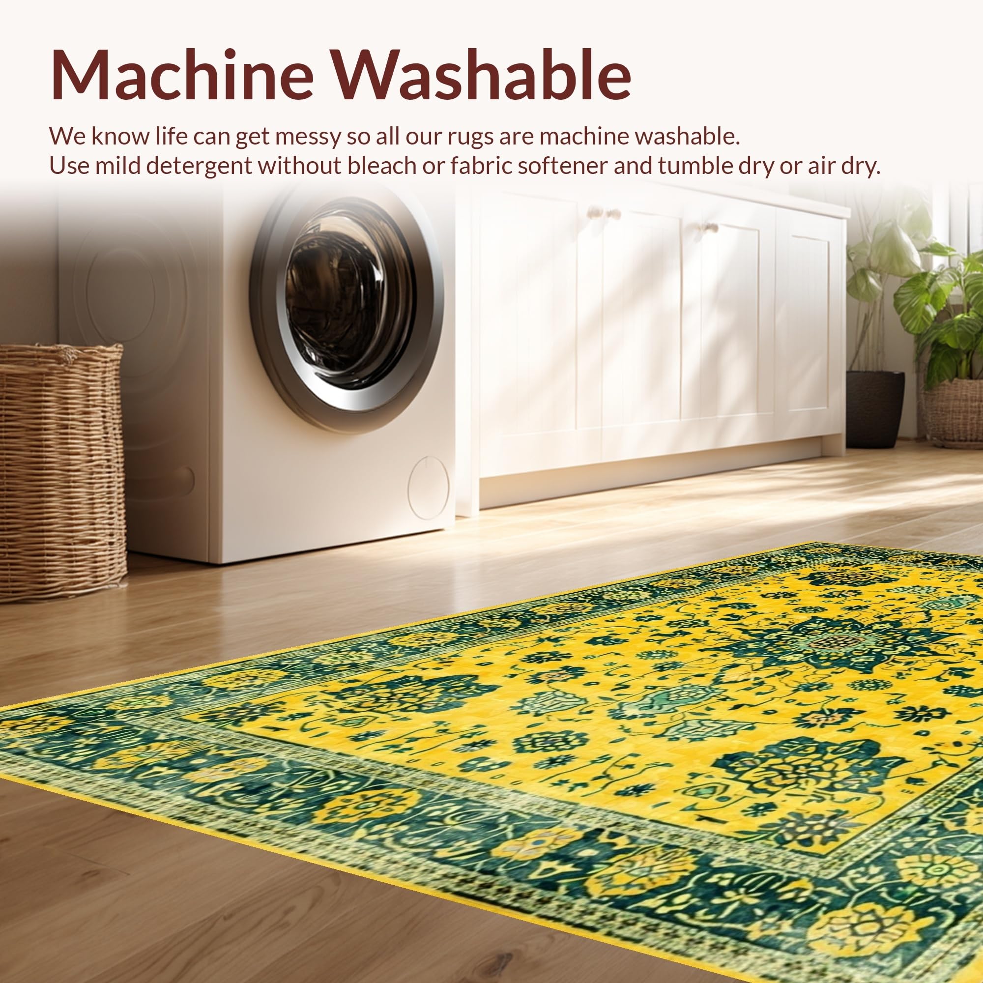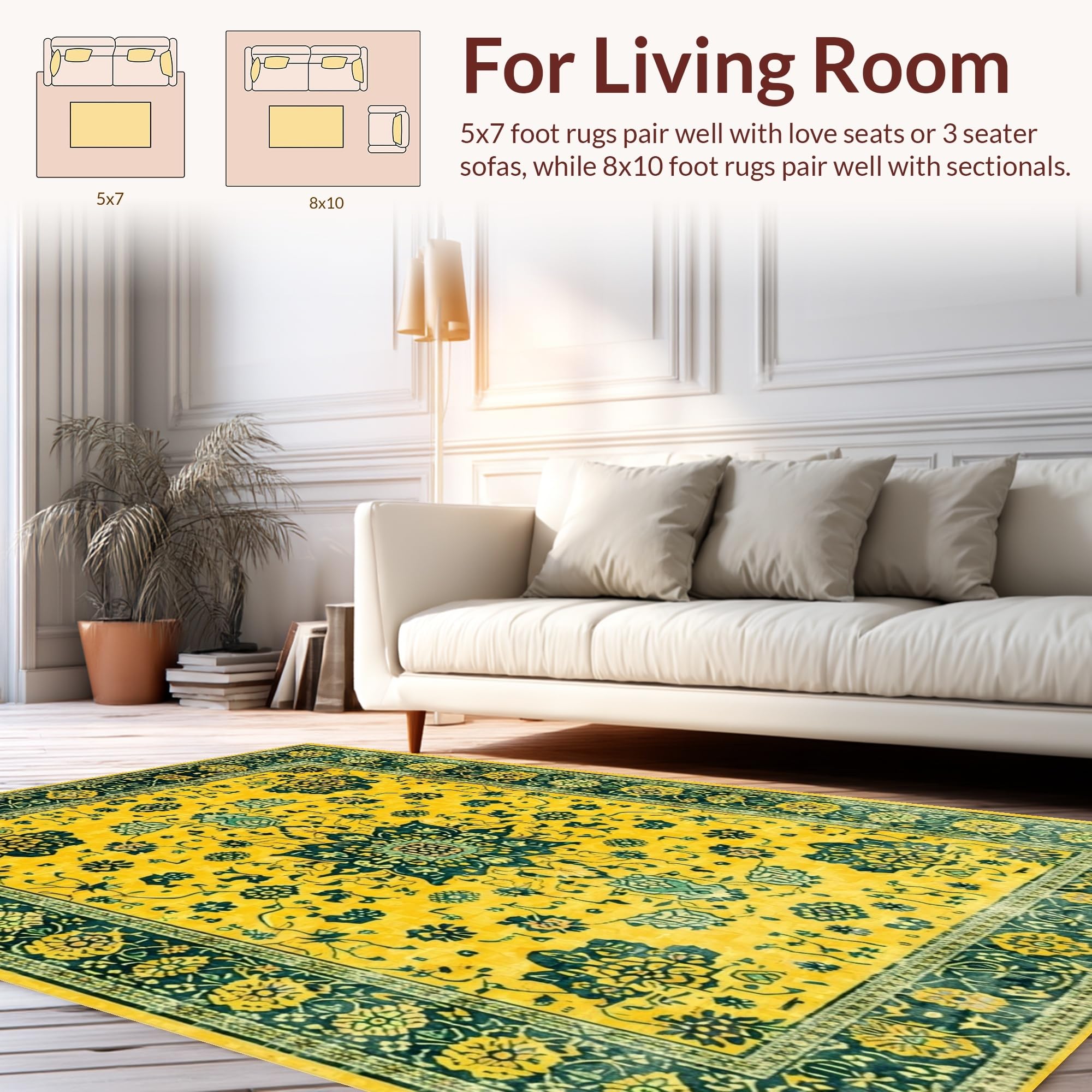 Ultra Soft Area Rug, Non Slip, Stain Resistant, Washable Area Rugs for Living Room, Bedroom, Chic Vintage Symmetrical Design(Yellow) Overview:
