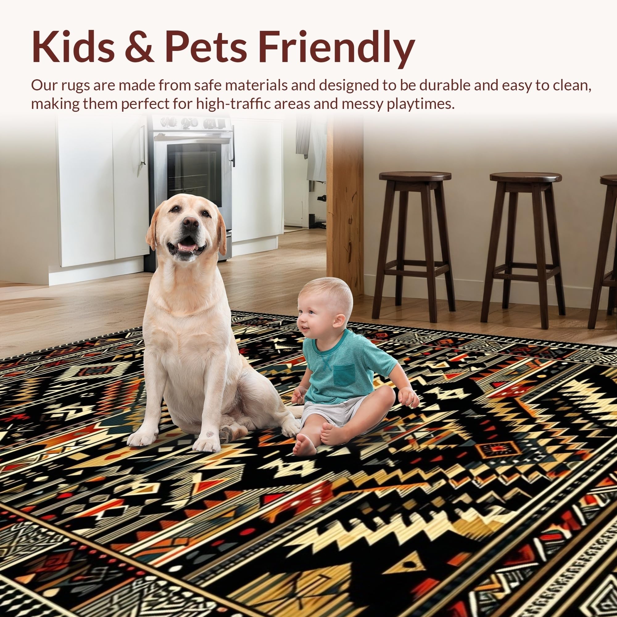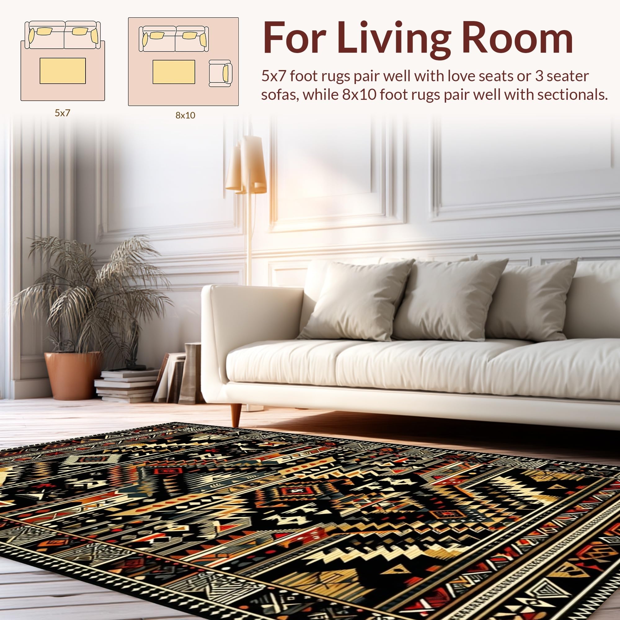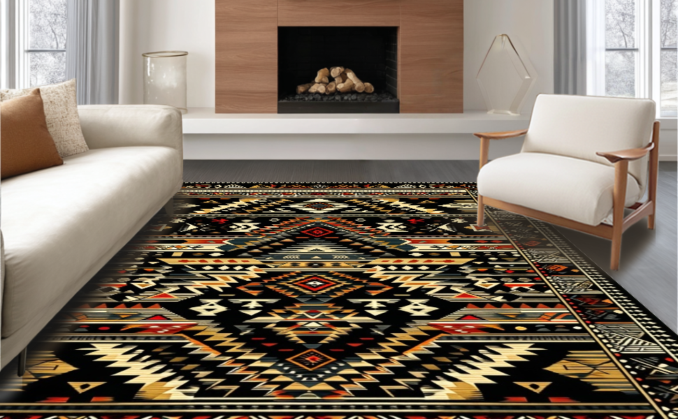 Ultra Soft Area Rug, Non Slip, Stain Resistant, Washable Area Rugs for Living Room, Bedroom, Chic Western-Inspired Pattern Play(Black) Overview: