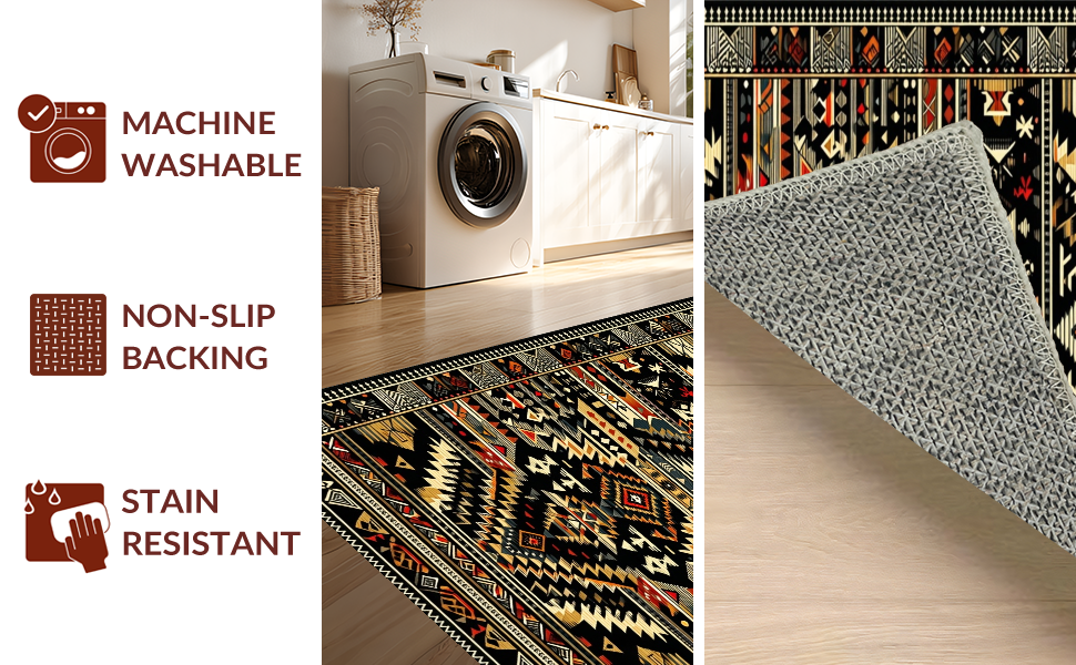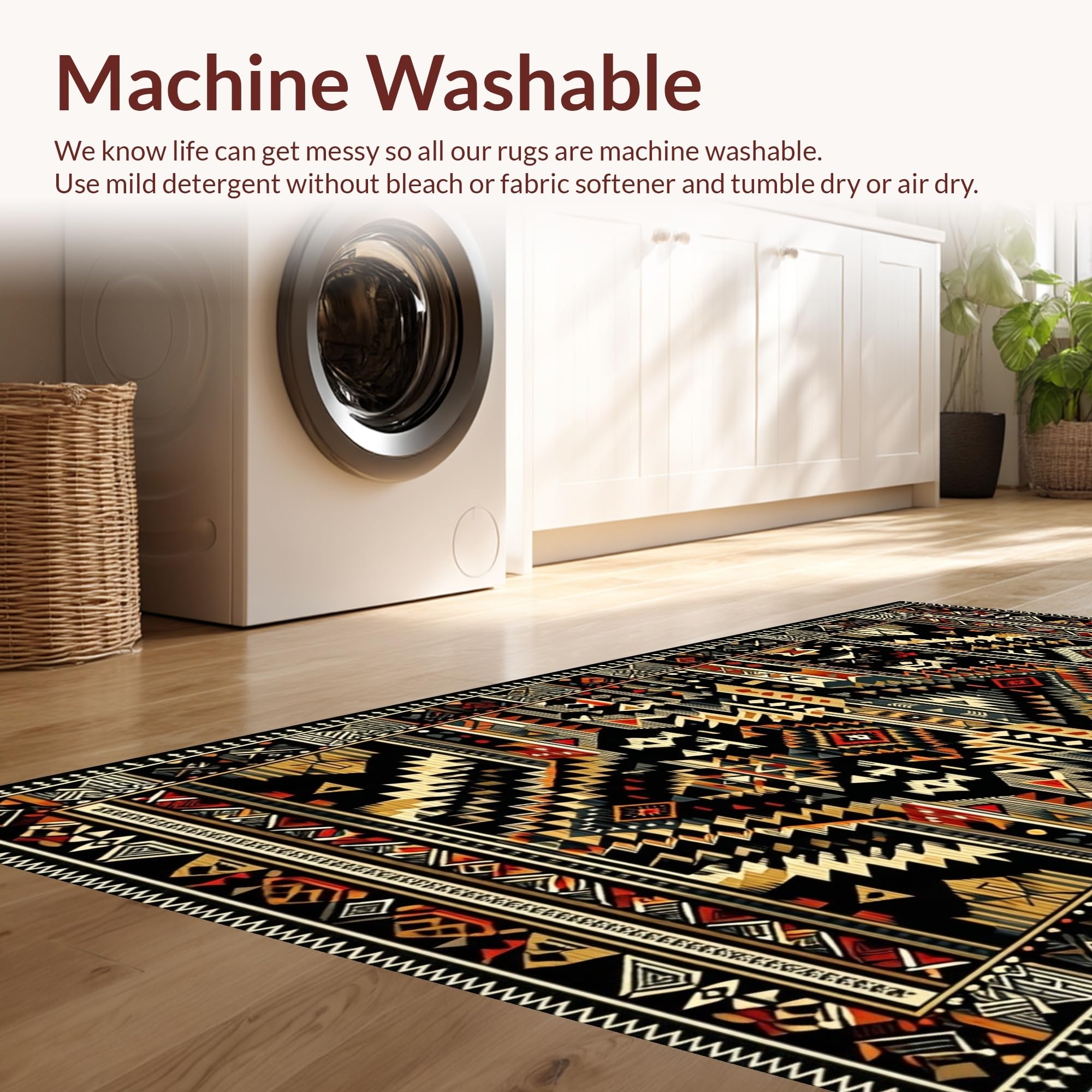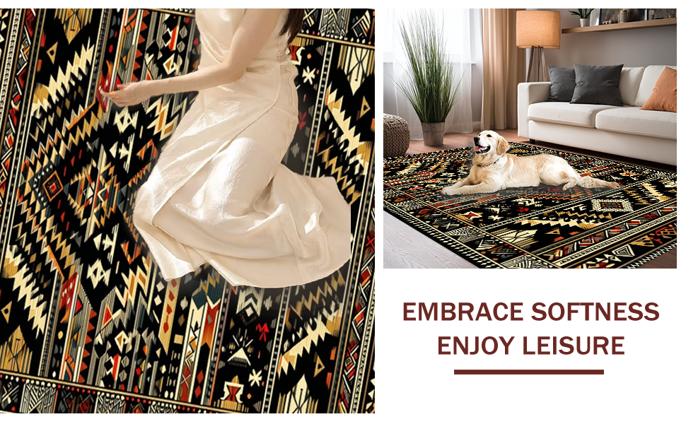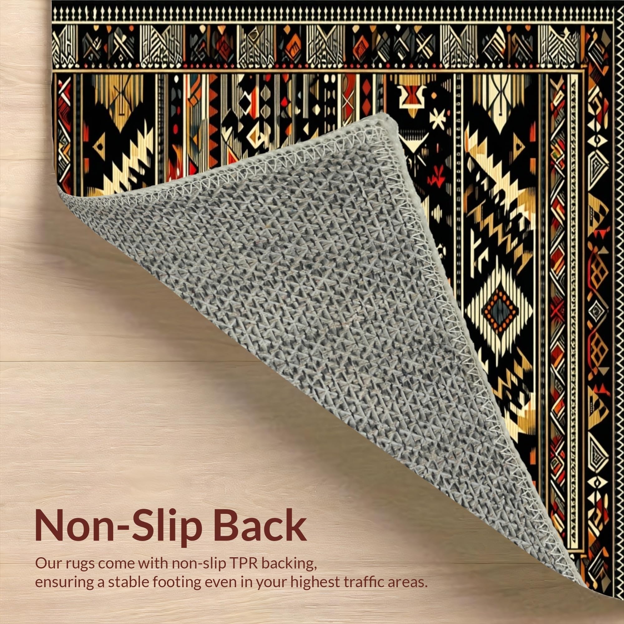 Ultra Soft Area Rug, Non Slip, Stain Resistant, Washable Area Rugs for Living Room, Bedroom, Chic Western-Inspired Pattern Play(Black) Overview: