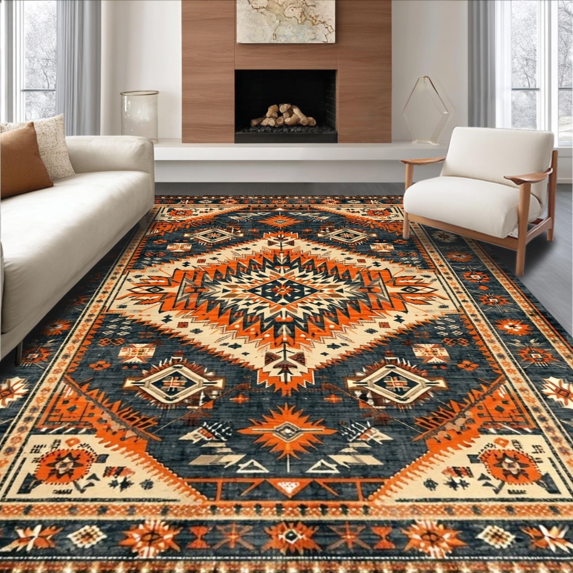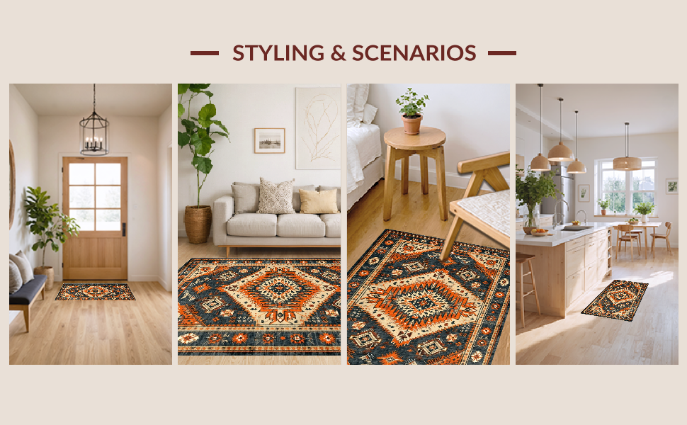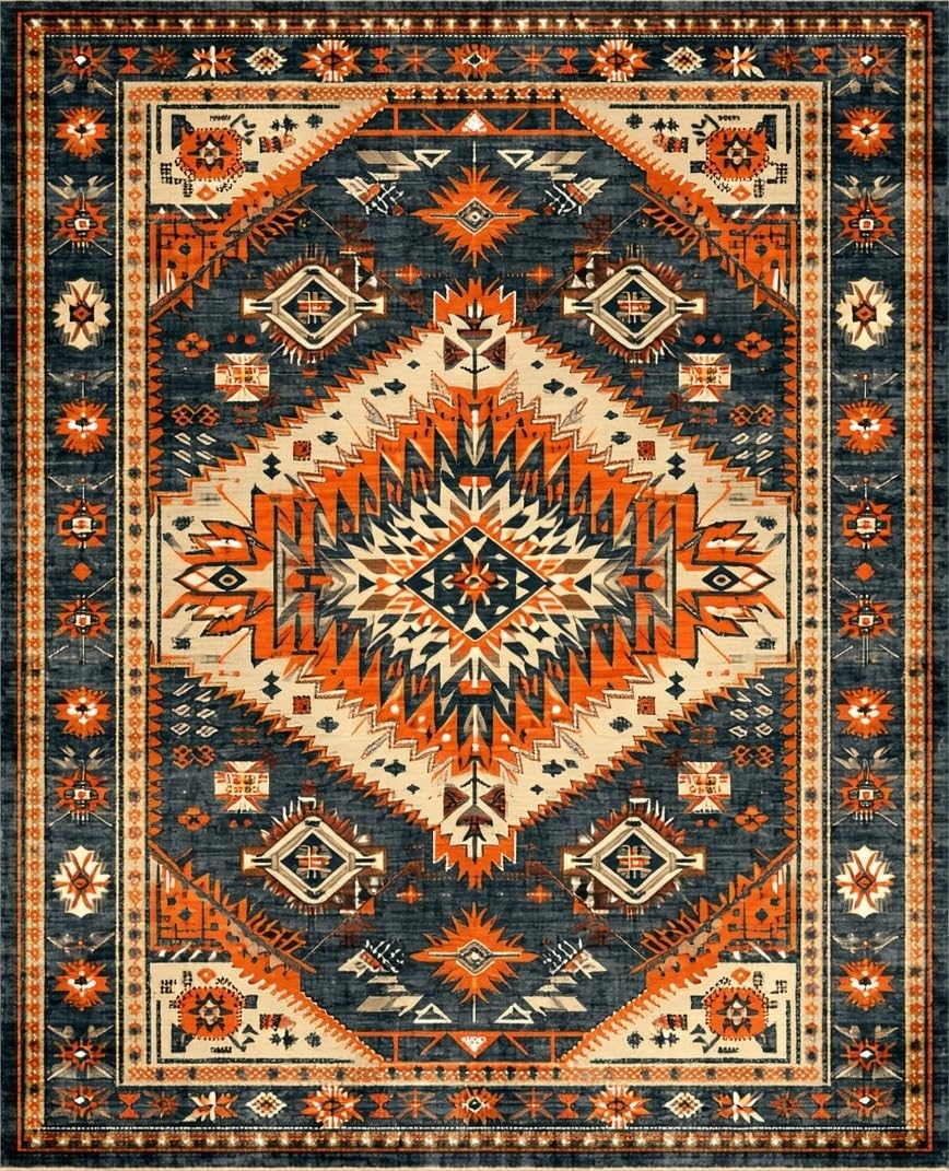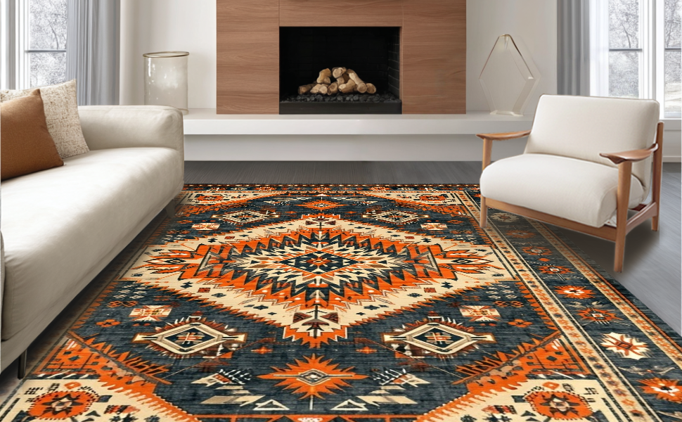Ultra Soft Area Rug, Non Slip, Stain Resistant, Washable Area Rugs for Living Room, Bedroom, Chic Western Themed Vintage Aesthetic(Gray) Overview: