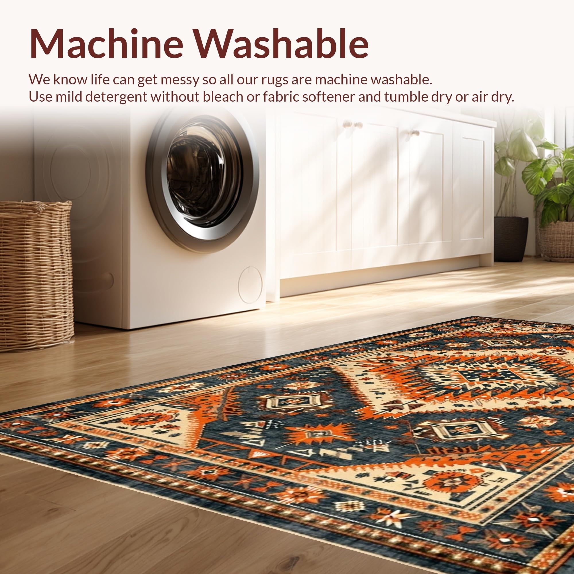 - Machine Washable: Our rugs can be easily thrown in the wash machine.