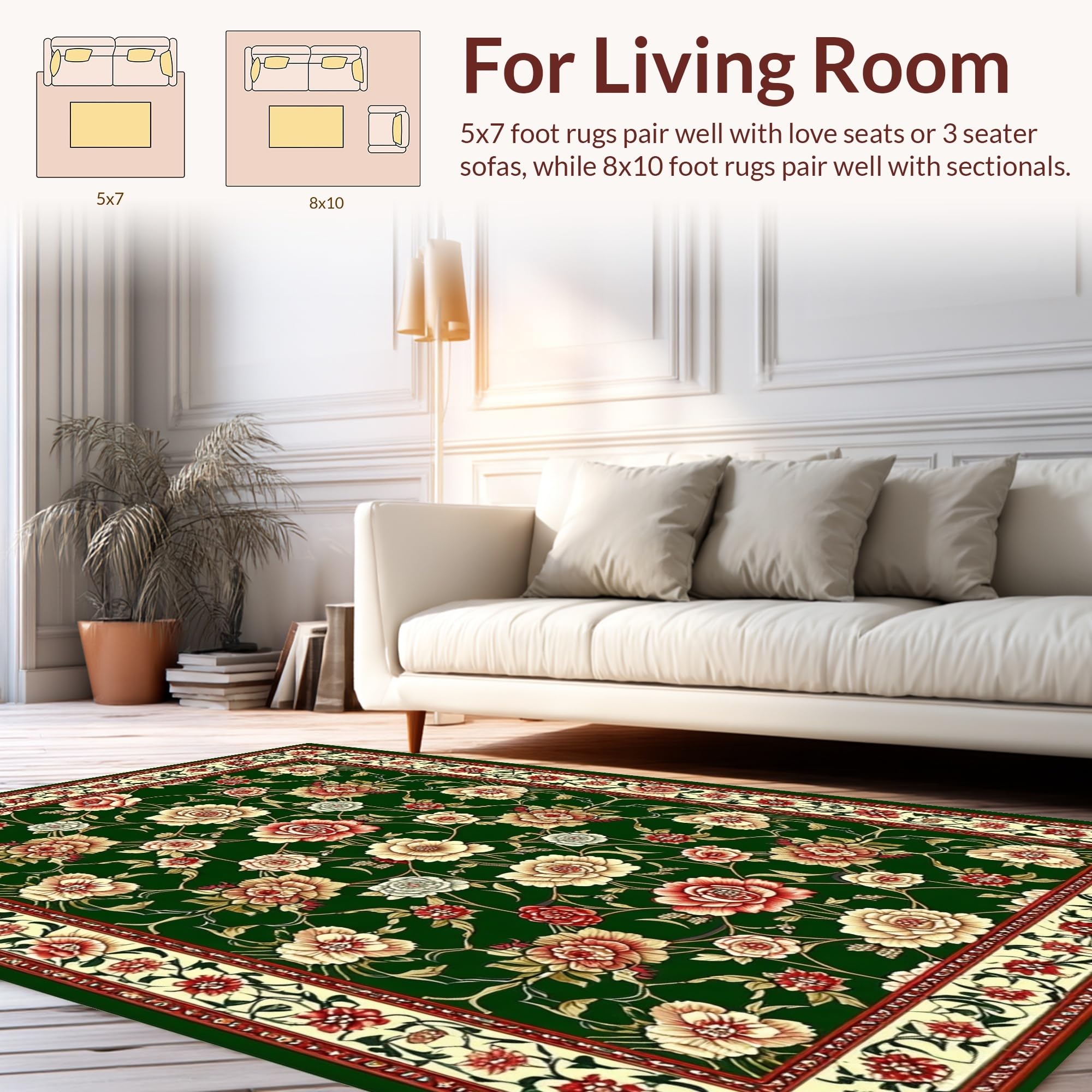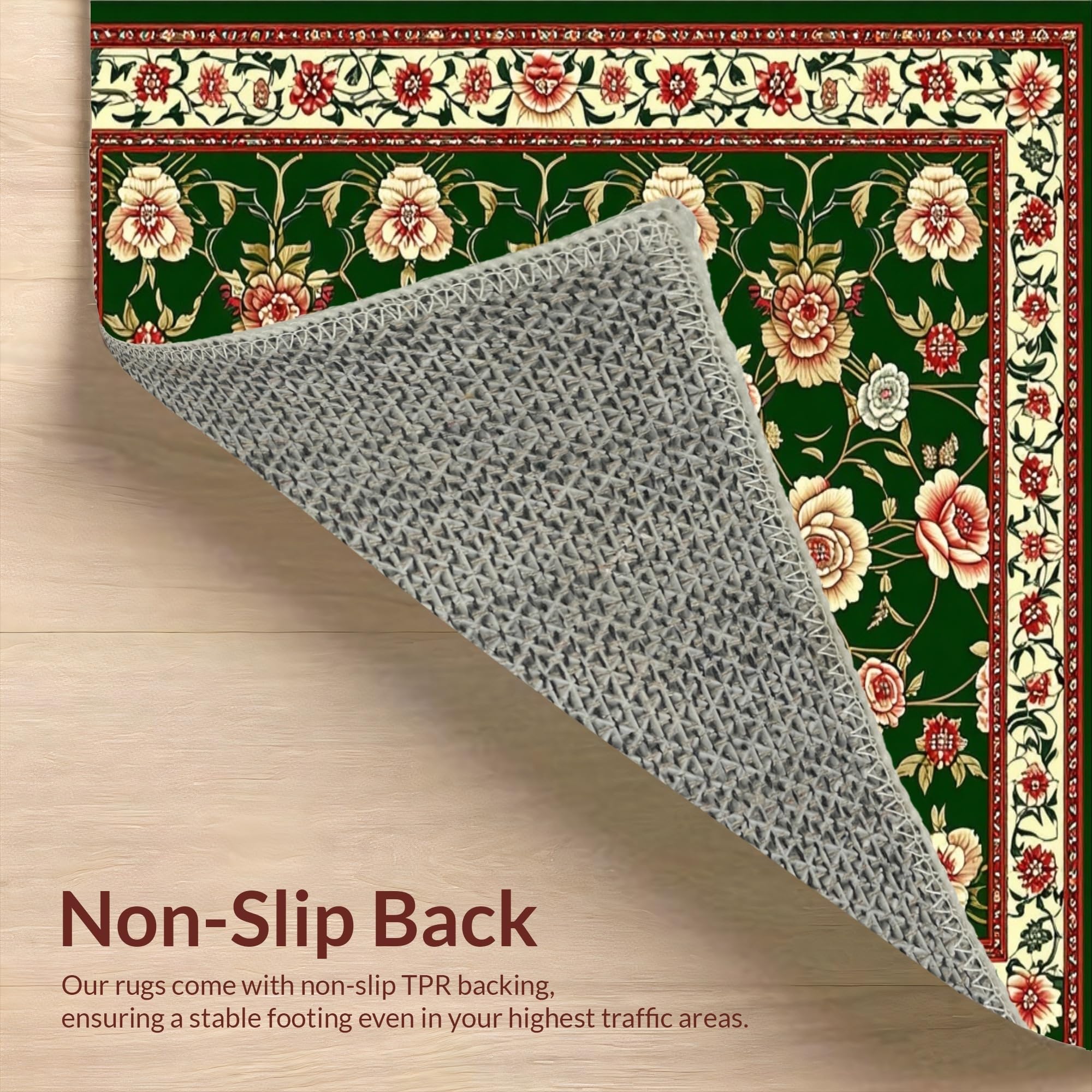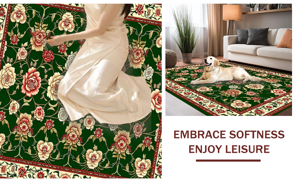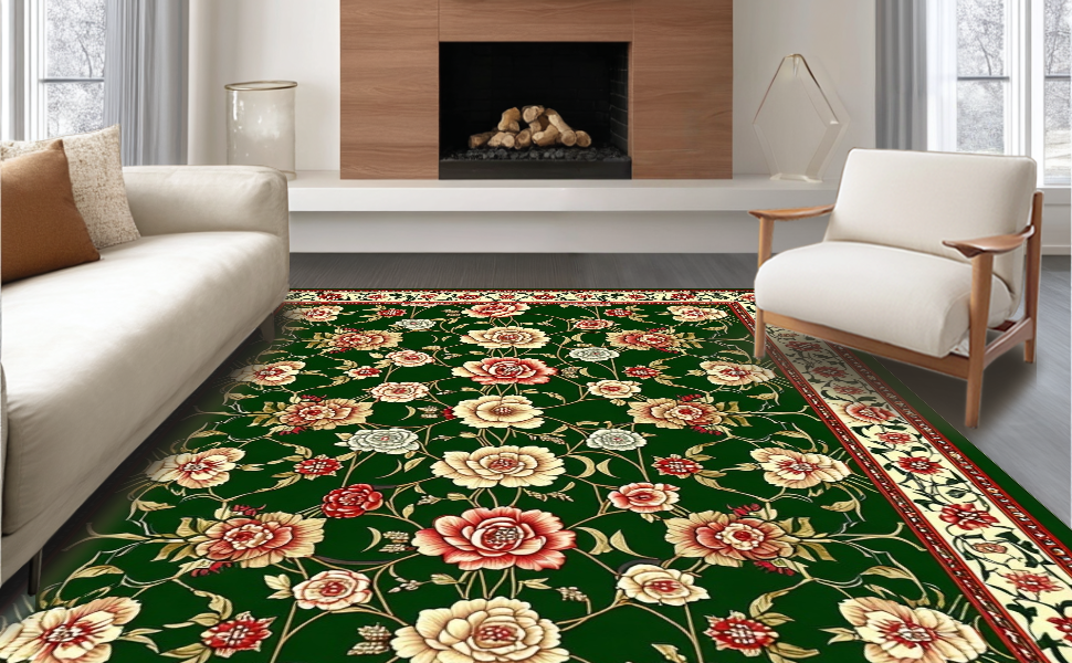 Ultra Soft Area Rug, Non Slip, Stain Resistant, Washable Area Rugs for Living Room, Bedroom, Chic Whimsical Flower Arrangement(Green) Overview: