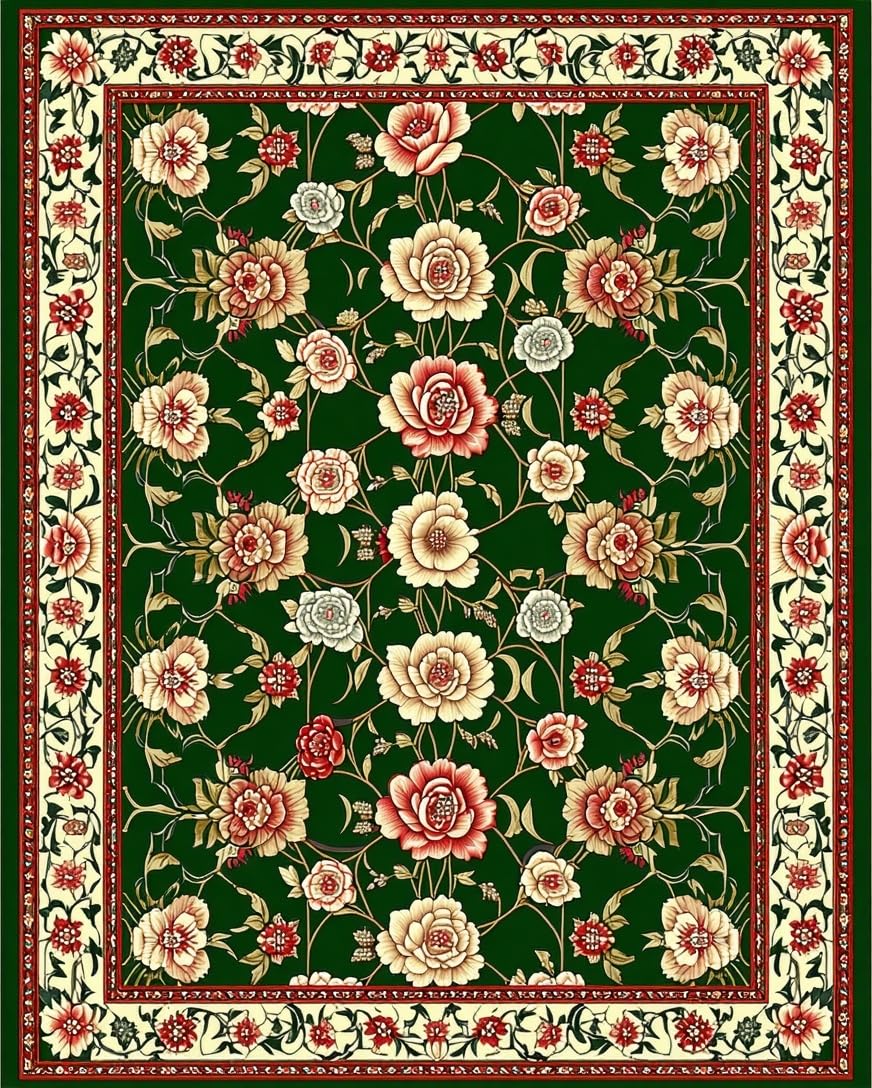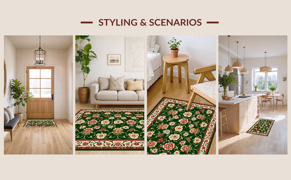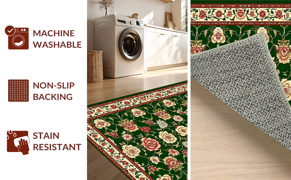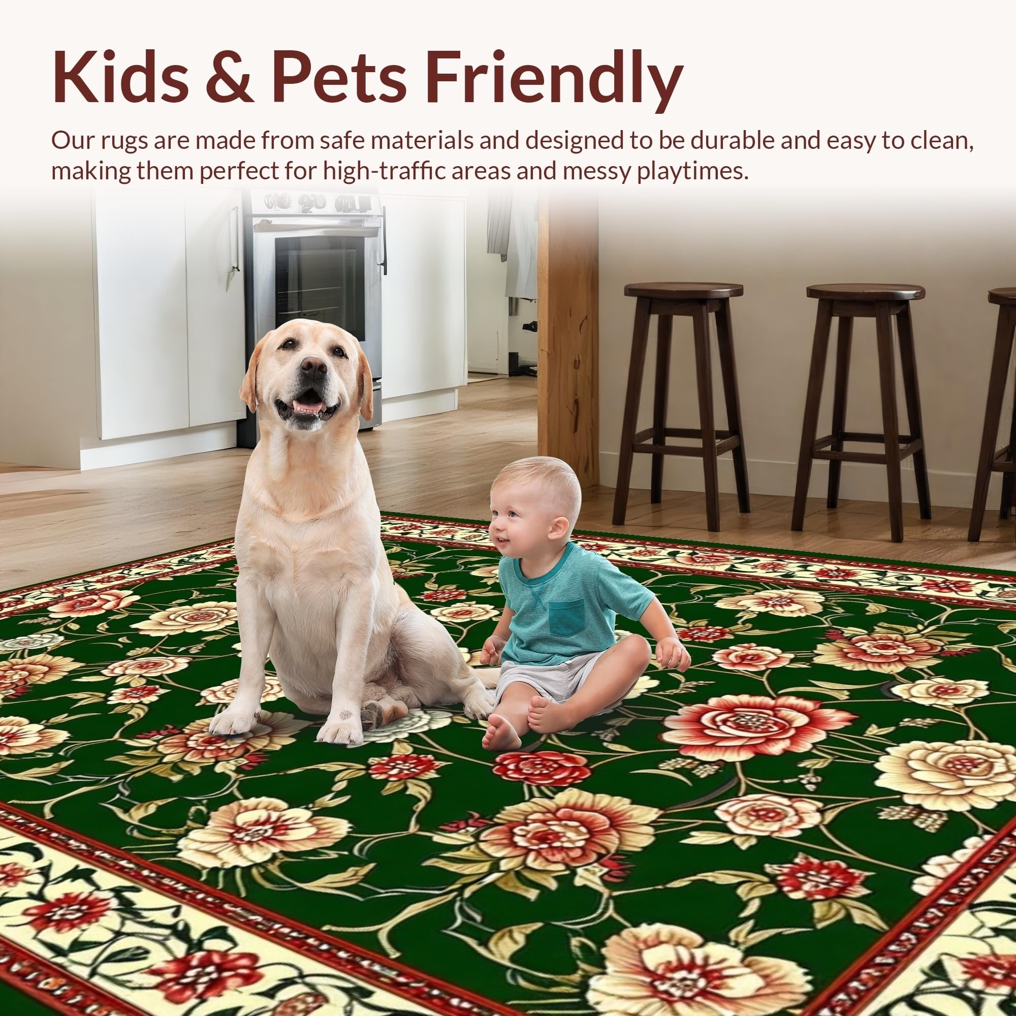 Ultra Soft Area Rug, Non Slip, Stain Resistant, Washable Area Rugs for Living Room, Bedroom, Chic Whimsical Flower Arrangement(Green) Overview: