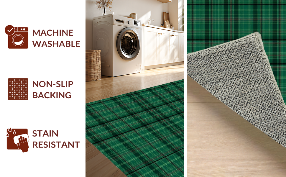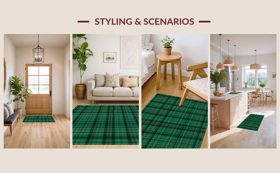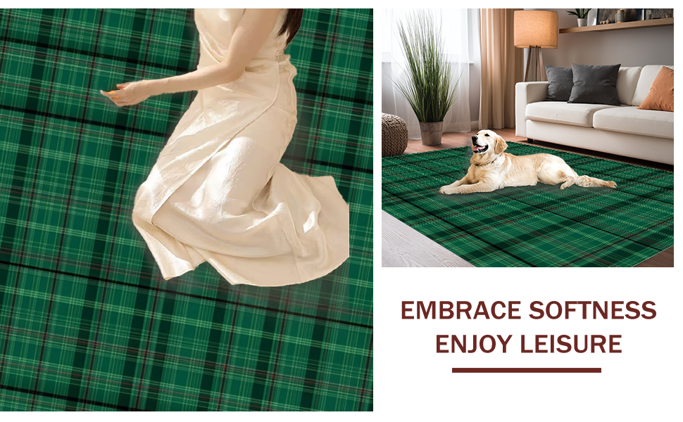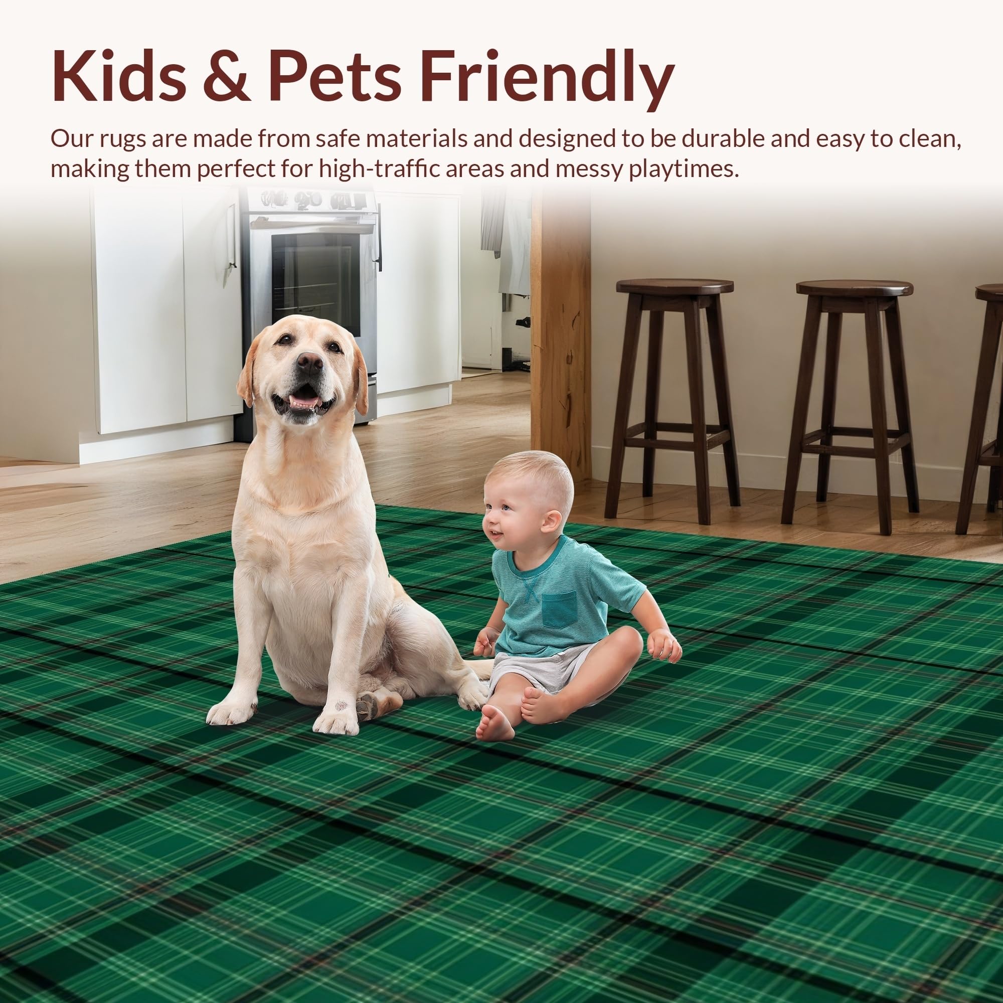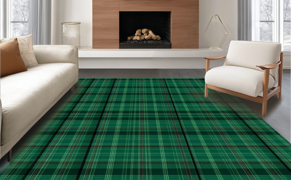 Ultra Soft Area Rug, Non Slip, Stain Resistant, Washable Area Rugs for Living Room, Bedroom, Chic White and Green Plaid(Green) Overview: