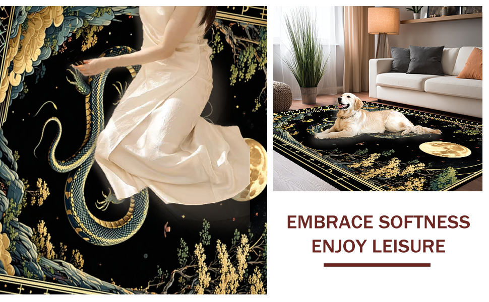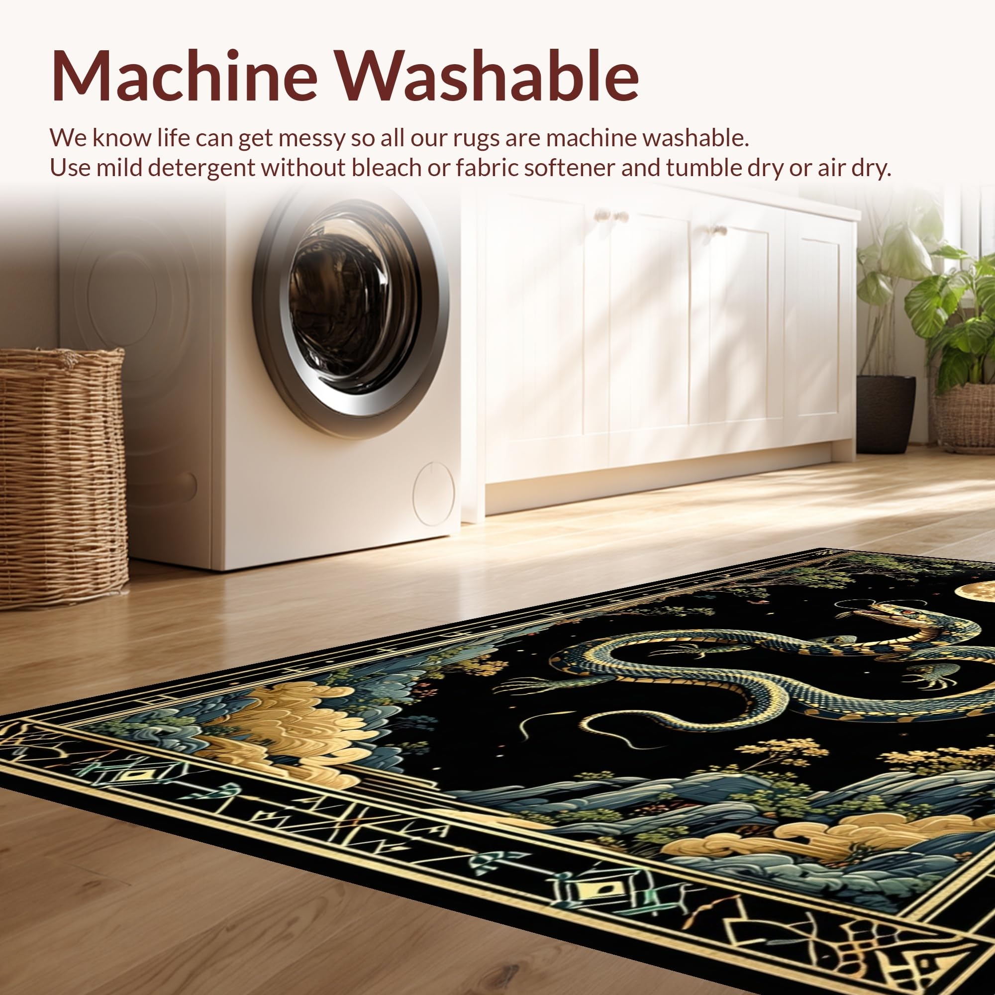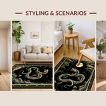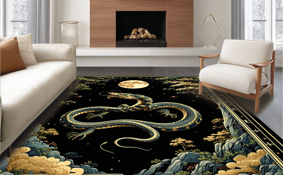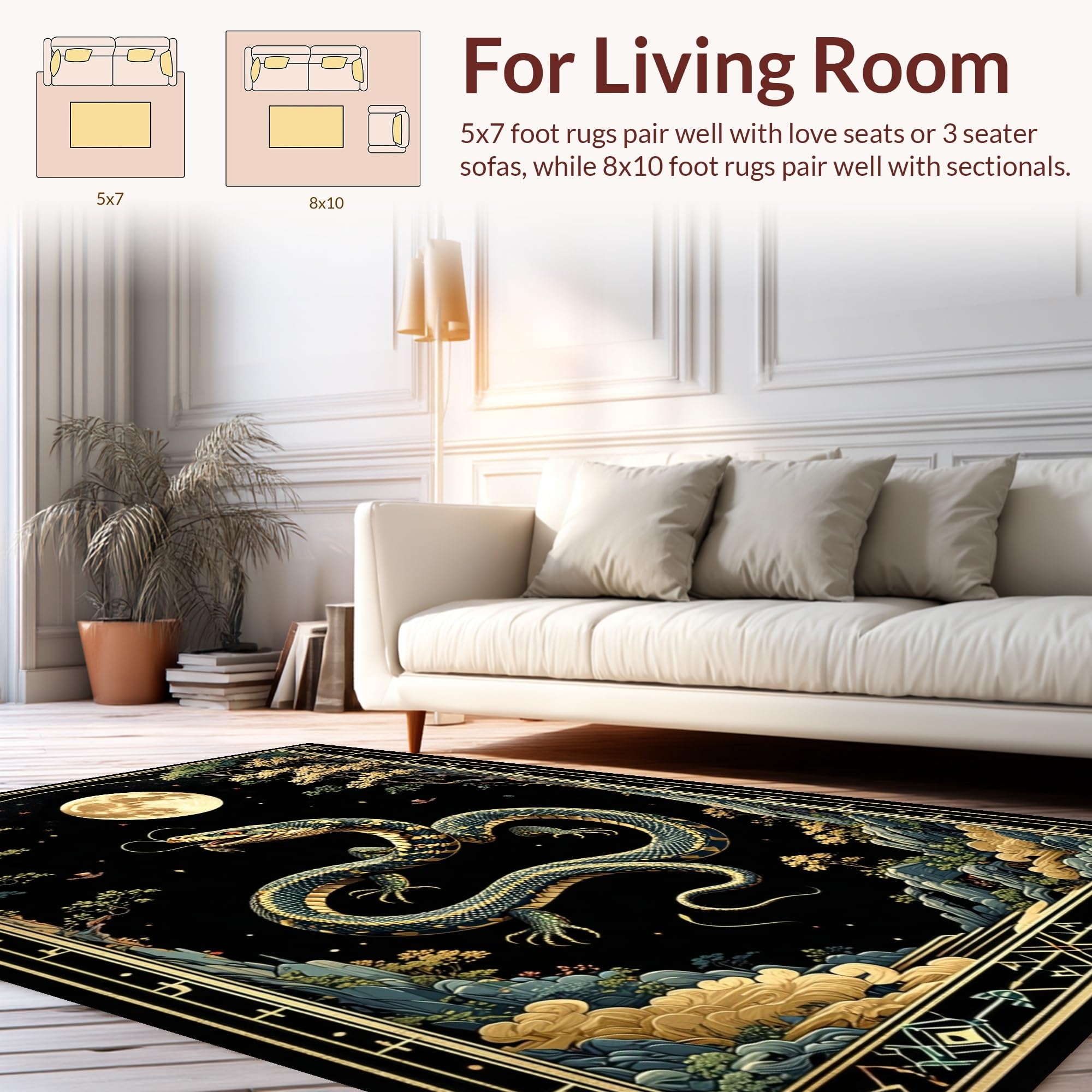 Ultra Soft Area Rug, Non Slip, Stain Resistant, Washable Area Rugs for Living Room, Bedroom, Chic Witchy Serpent Illustration(Black) Overview: