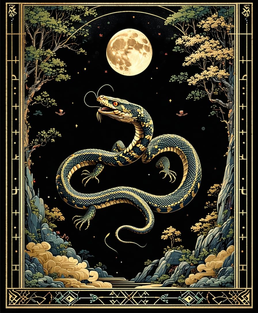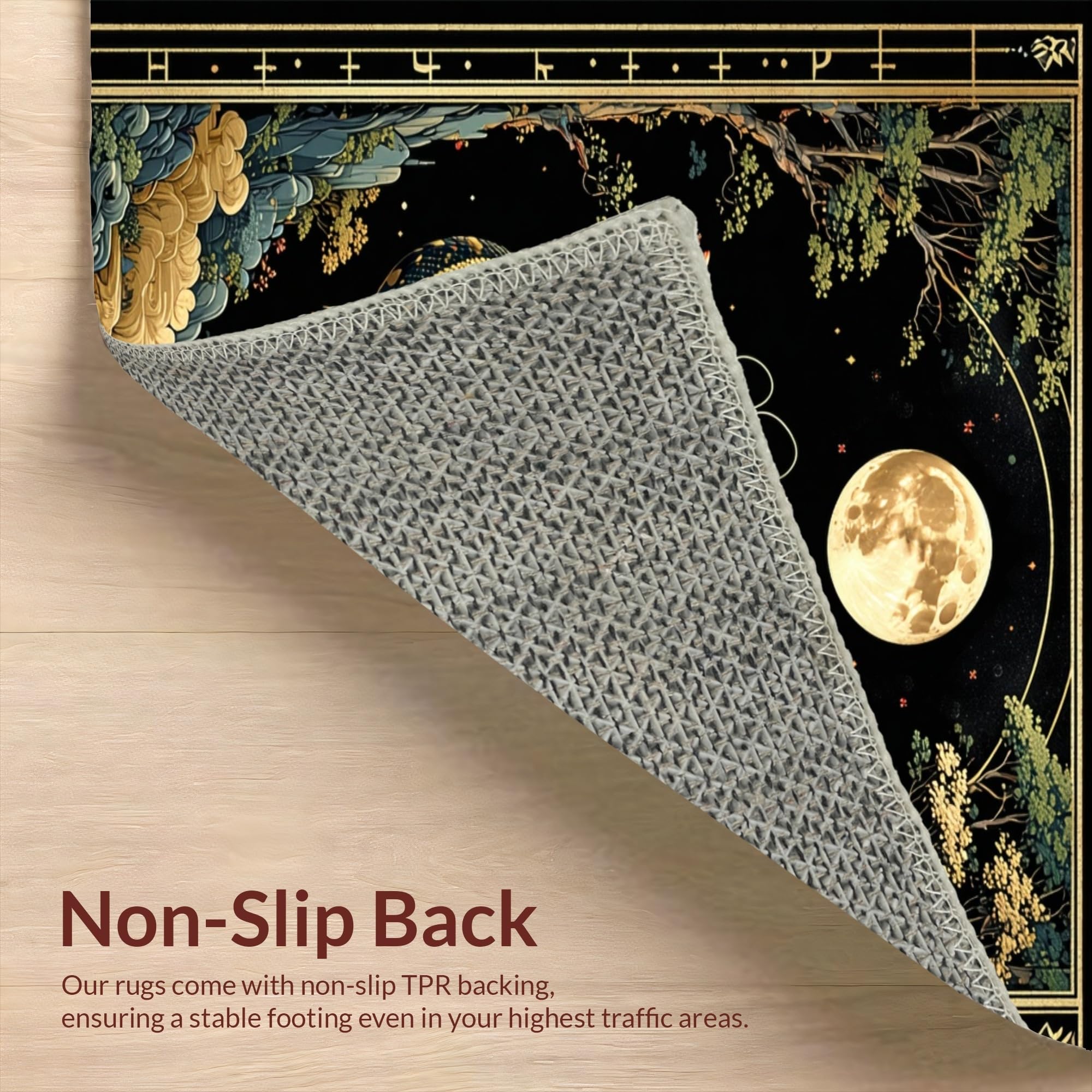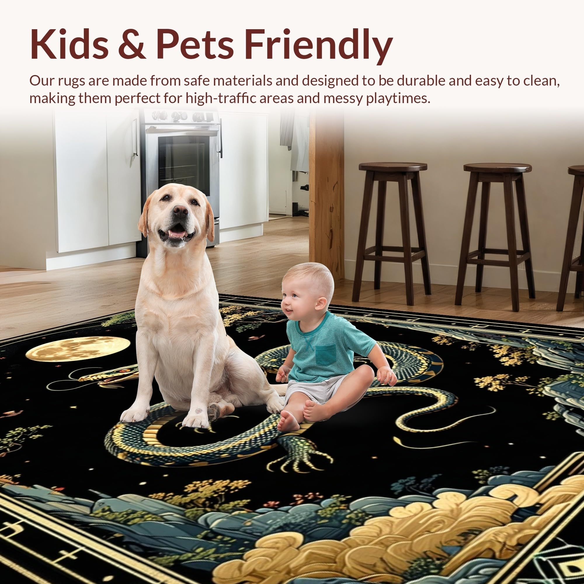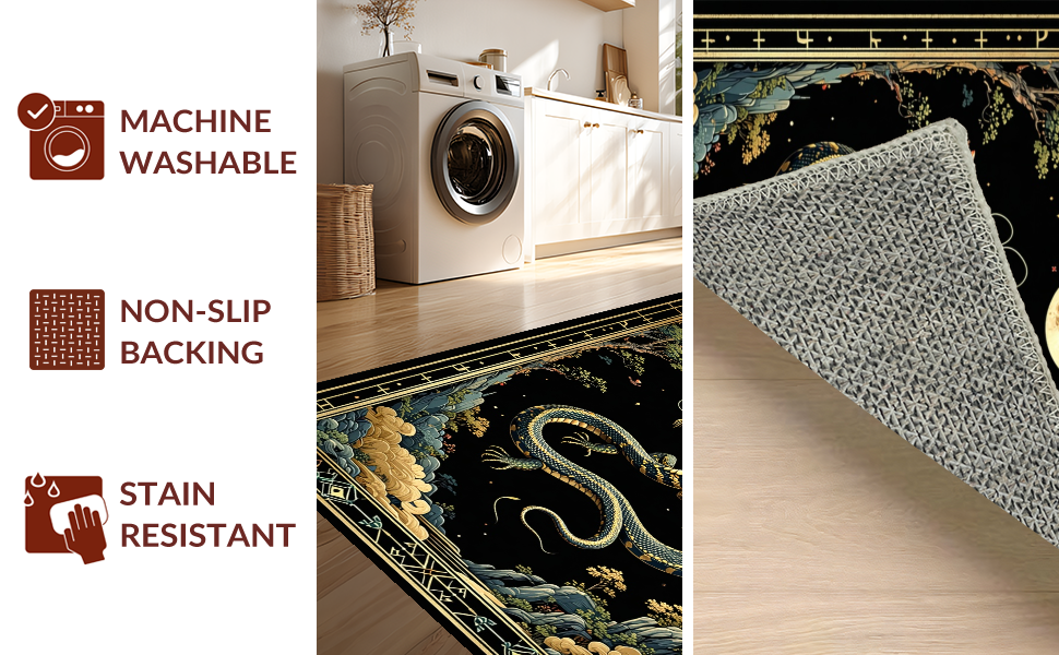 Ultra Soft Area Rug, Non Slip, Stain Resistant, Washable Area Rugs for Living Room, Bedroom, Chic Witchy Serpent Illustration(Black) Overview: