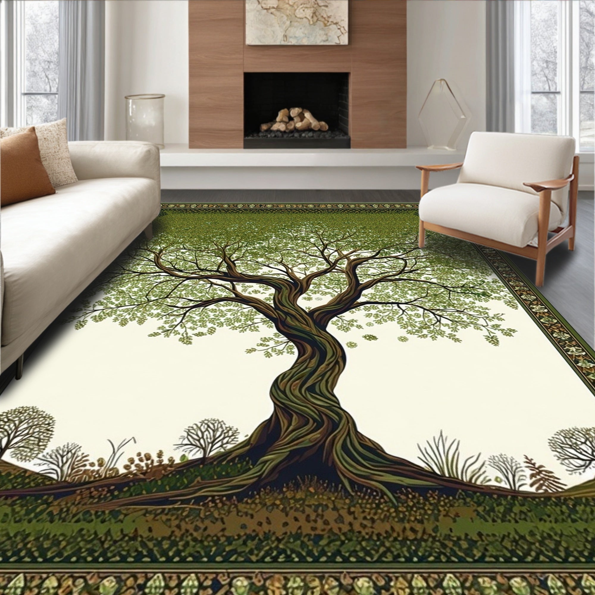 Flatwoven High Traffic Area Rug, Activity with Tree of Life Motif and Earth Tones, Non Slip, Stain Resistant, Washable Area Rugs for Living Room, Bedroom (Green) Overview: