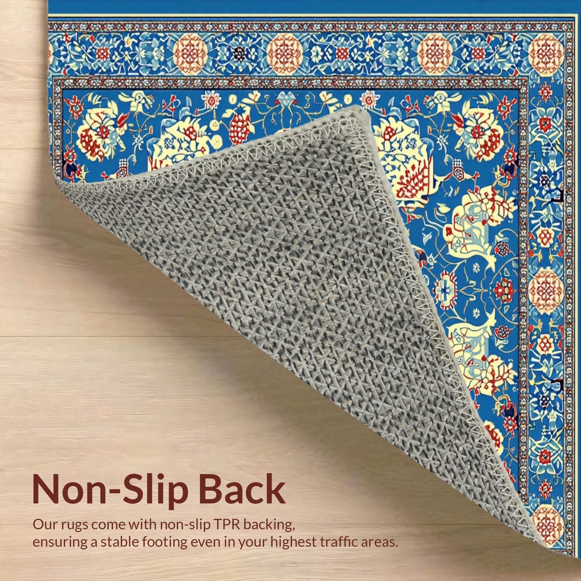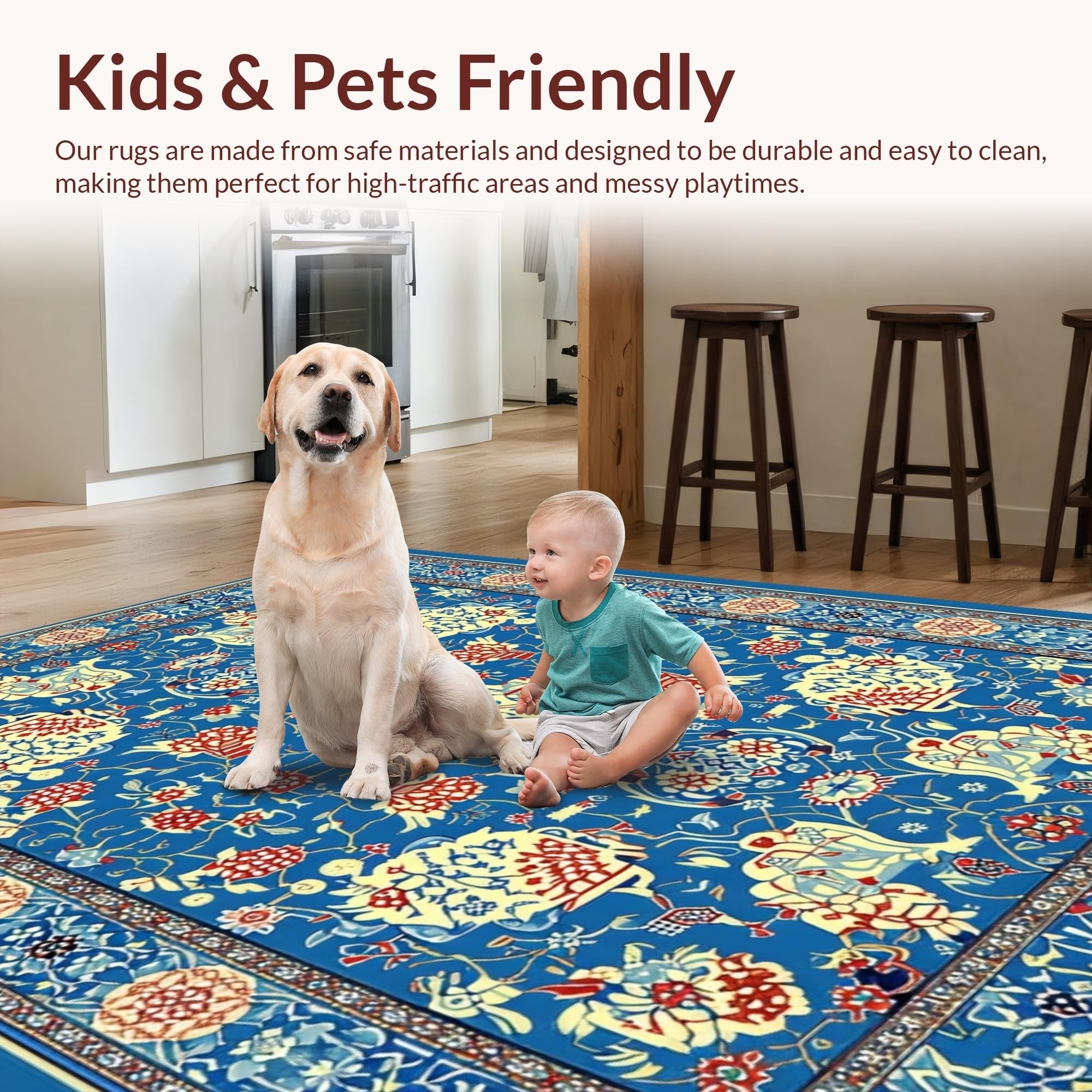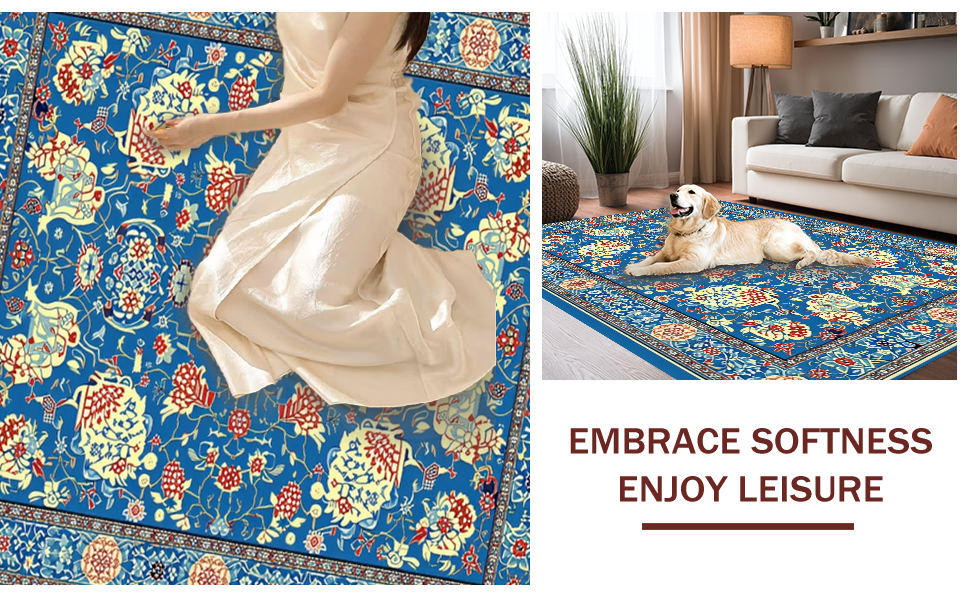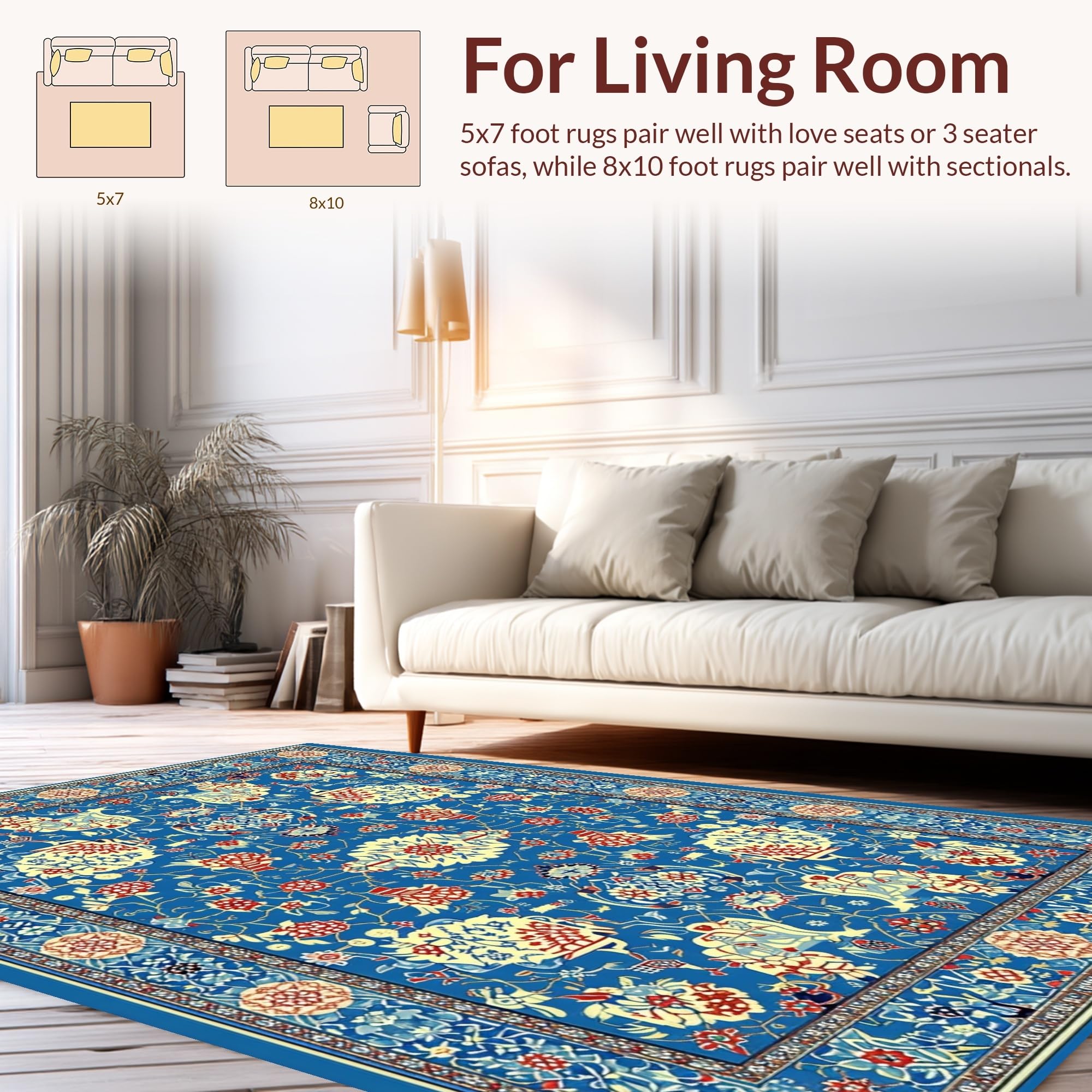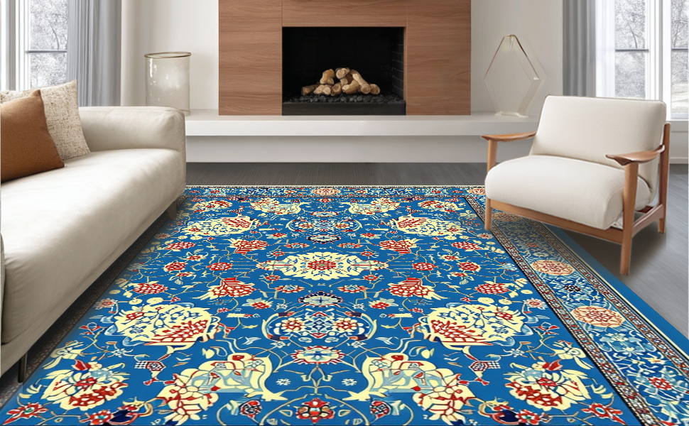 Ultra Soft Area Rug, Non Slip, Stain Resistant, Washable Area Rugs for Living Room, Bedroom, Chinoiserie Blue and White Floral Elegance(Blue) Overview: