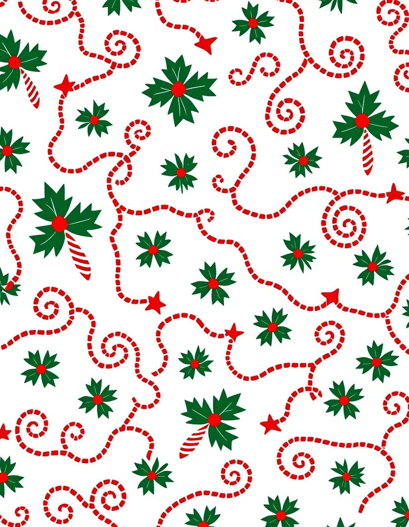 Christmas Light Swirl with Holly Leaf and Cane Design(Green)