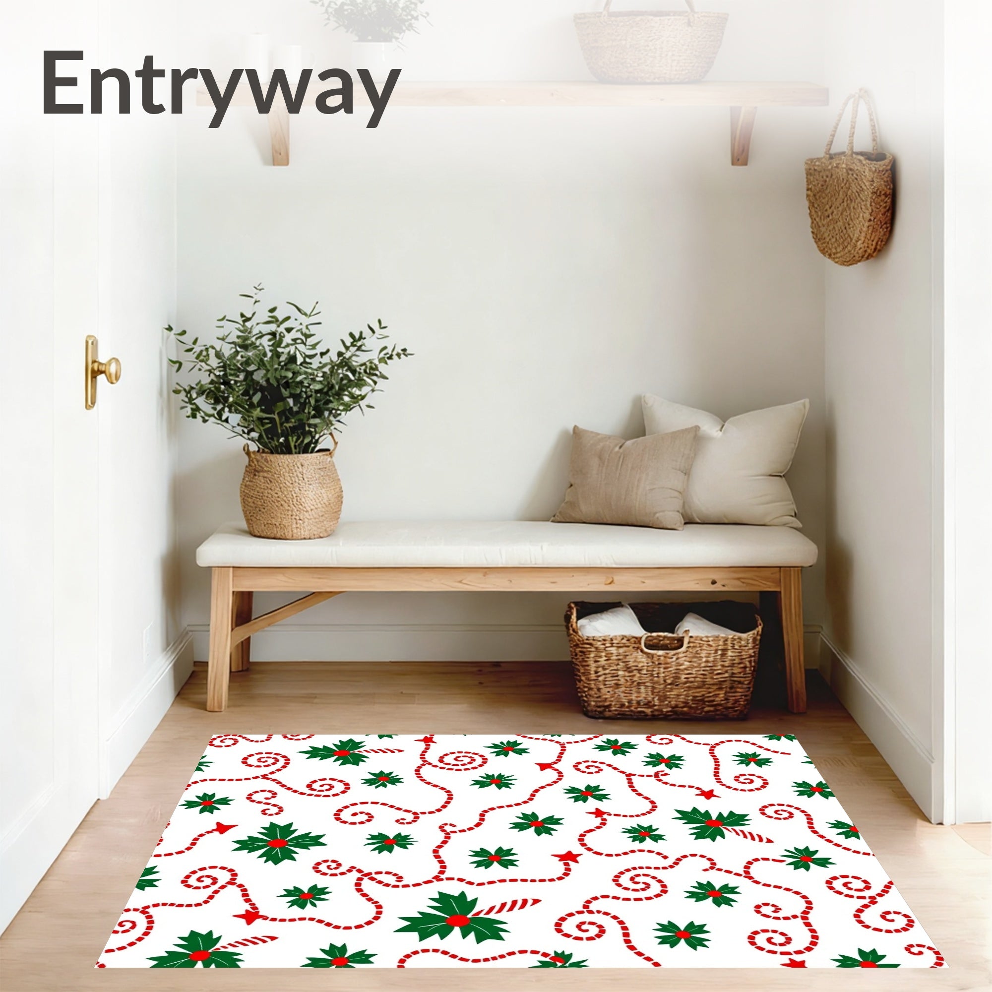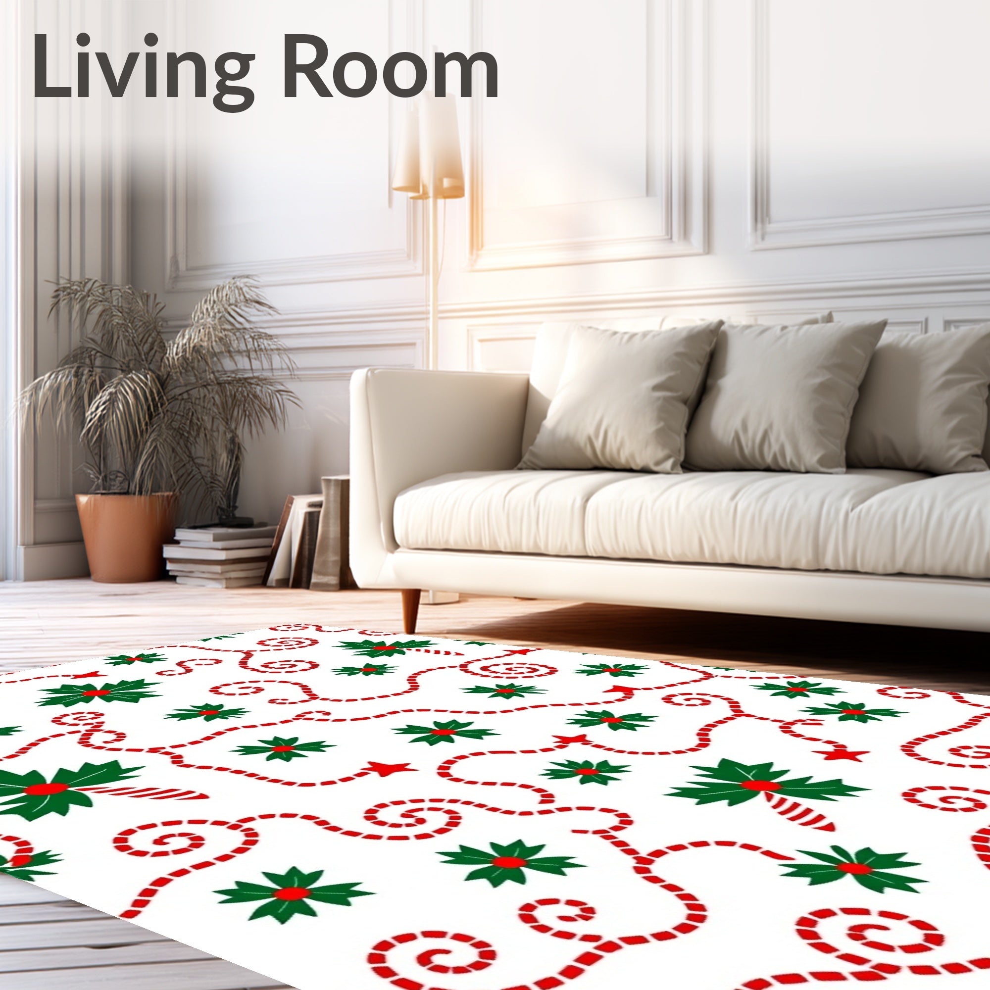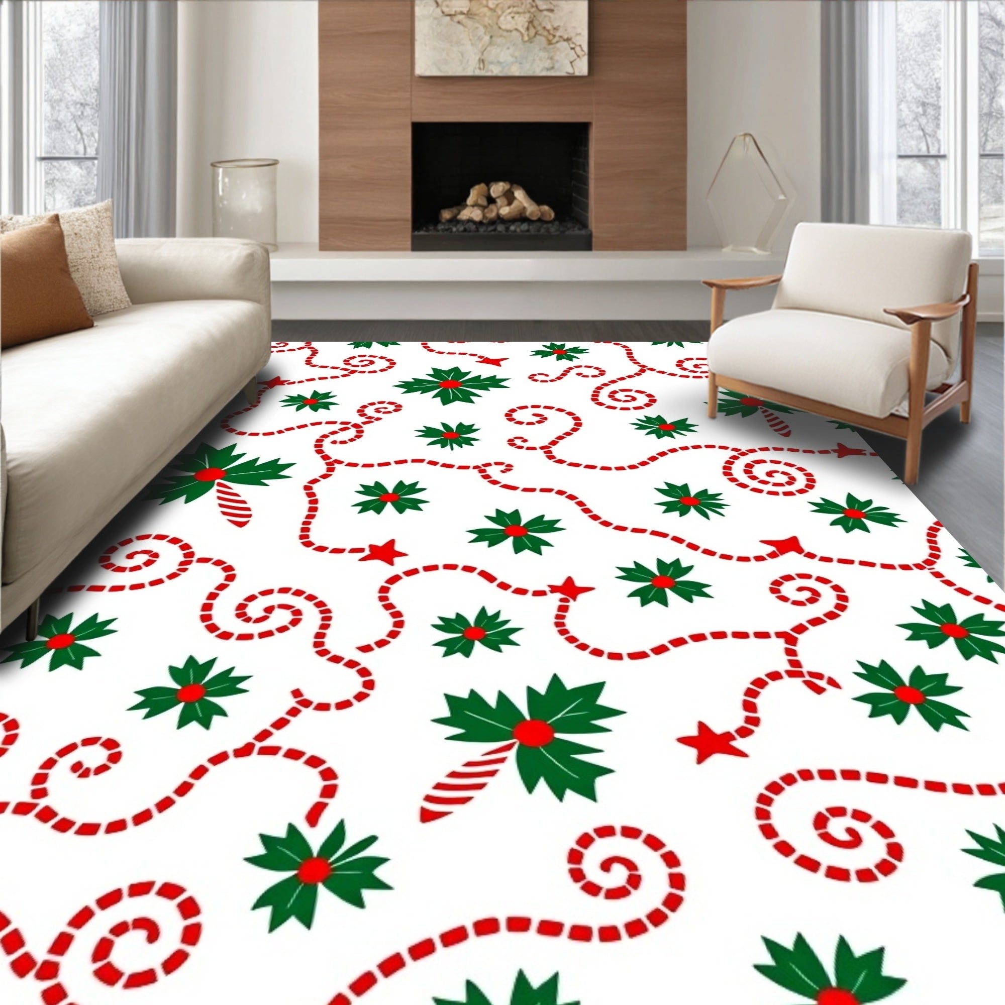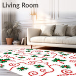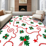 Ultra Soft Area Rug, Non Slip, Stain Resistant, Washable Area Rugs for Living Room, Bedroom, Christmas Light Swirl with Holly Leaf and Cane Design(Green) Overview: