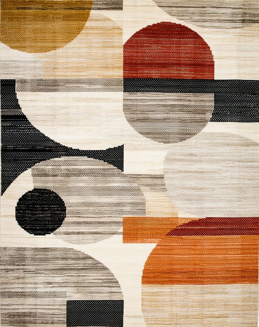 Circles Geometric Abstract Rustic Warm Colors Area Beige Black(Beige)