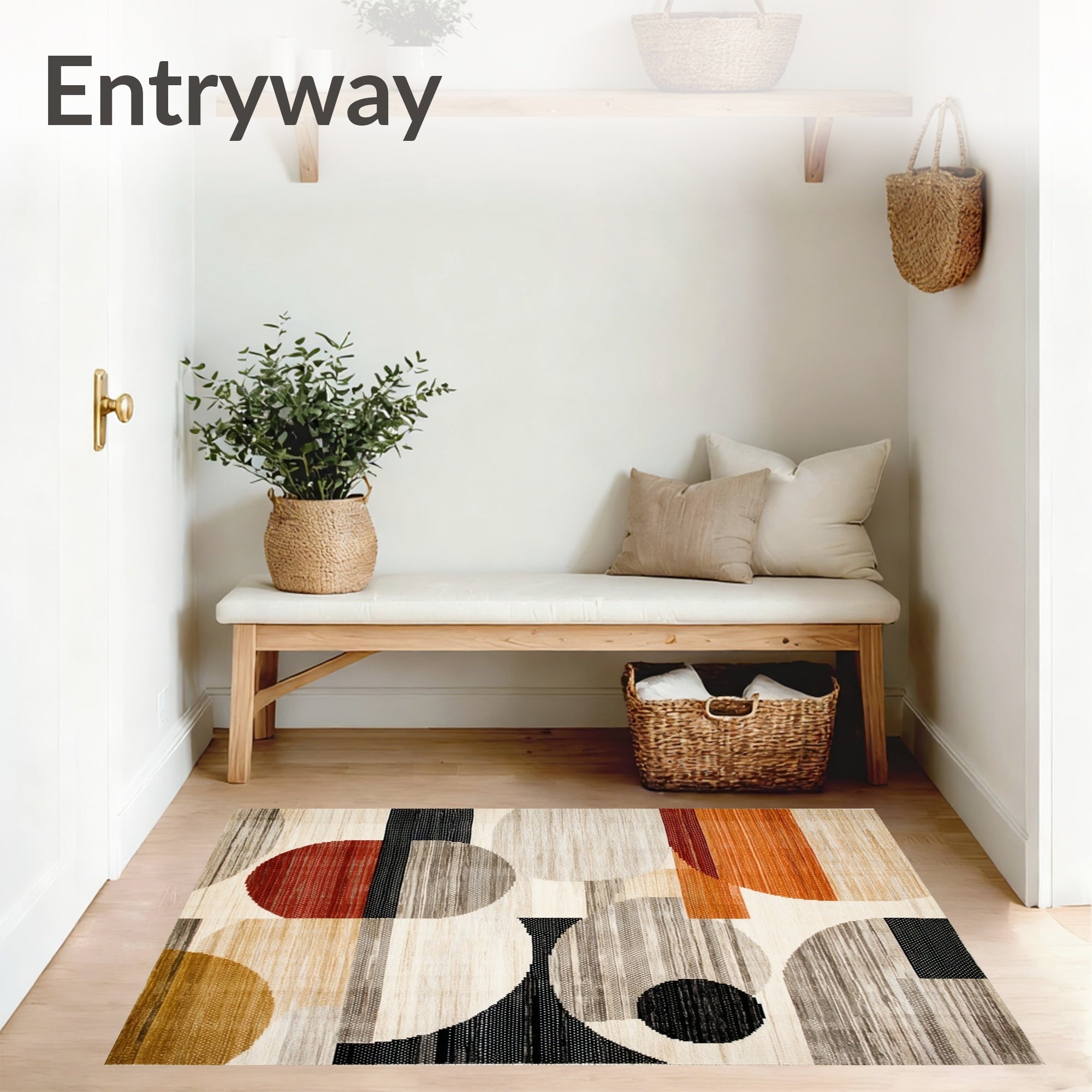 Ultra Soft Area Rug, Non Slip, Stain Resistant, Washable Area Rugs for Living Room, Bedroom, Circles Geometric Abstract Rustic Warm Colors Area Beige Black(Beige) Overview: