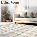 Ultra Soft Area Rug, Non Slip, Stain Resistant, Washable Area Rugs for Living Room, Bedroom, Classic Beige and Oatmeal Plaid with Crisp Lines(Beige) Overview: