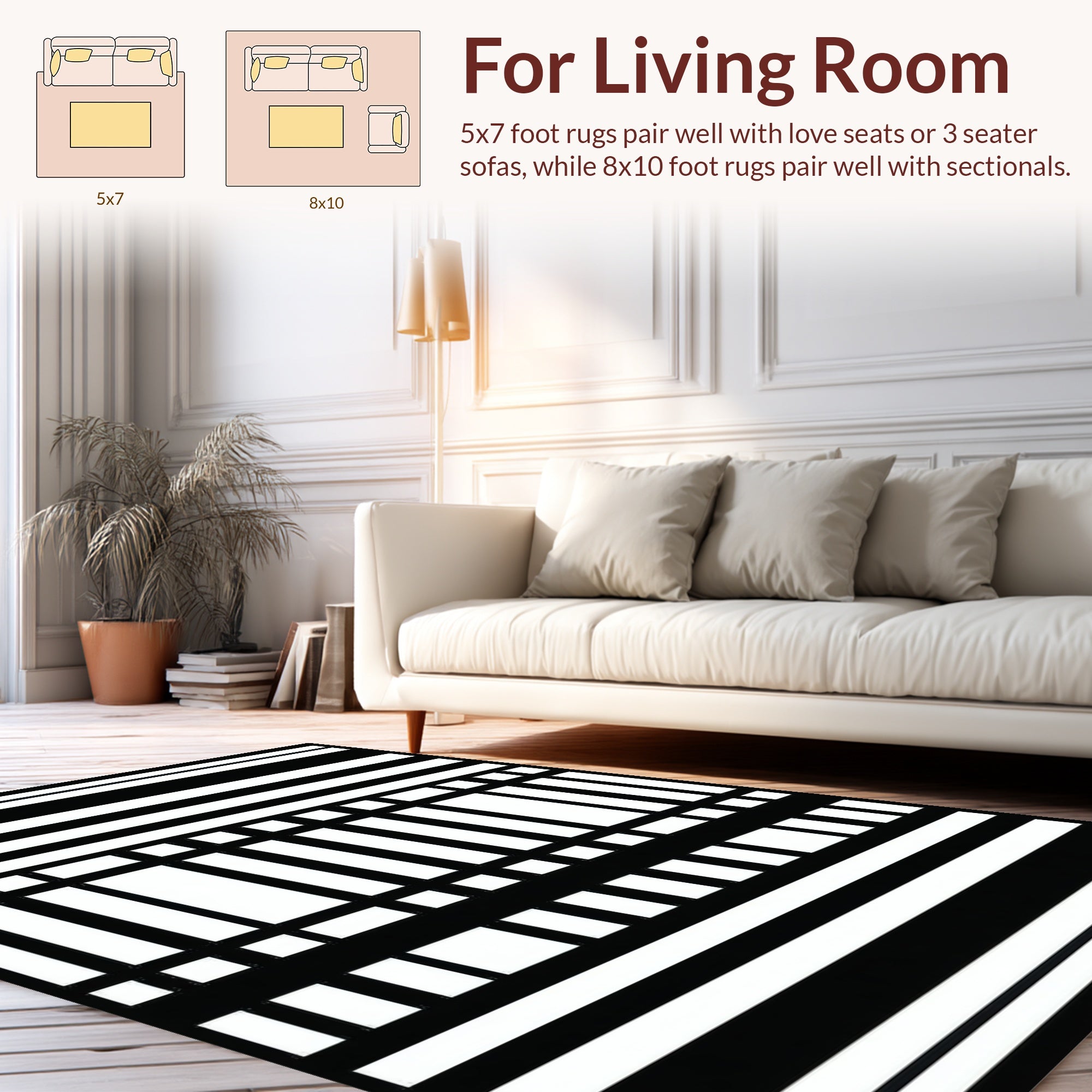 Flatwoven High Traffic Area Rug, Classic Bistro Stripe Handwoven for Sophisticated Accent, Non Slip, Stain Resistant, Washable Area Rugs for Living Room, Bedroom (Black) Overview:
