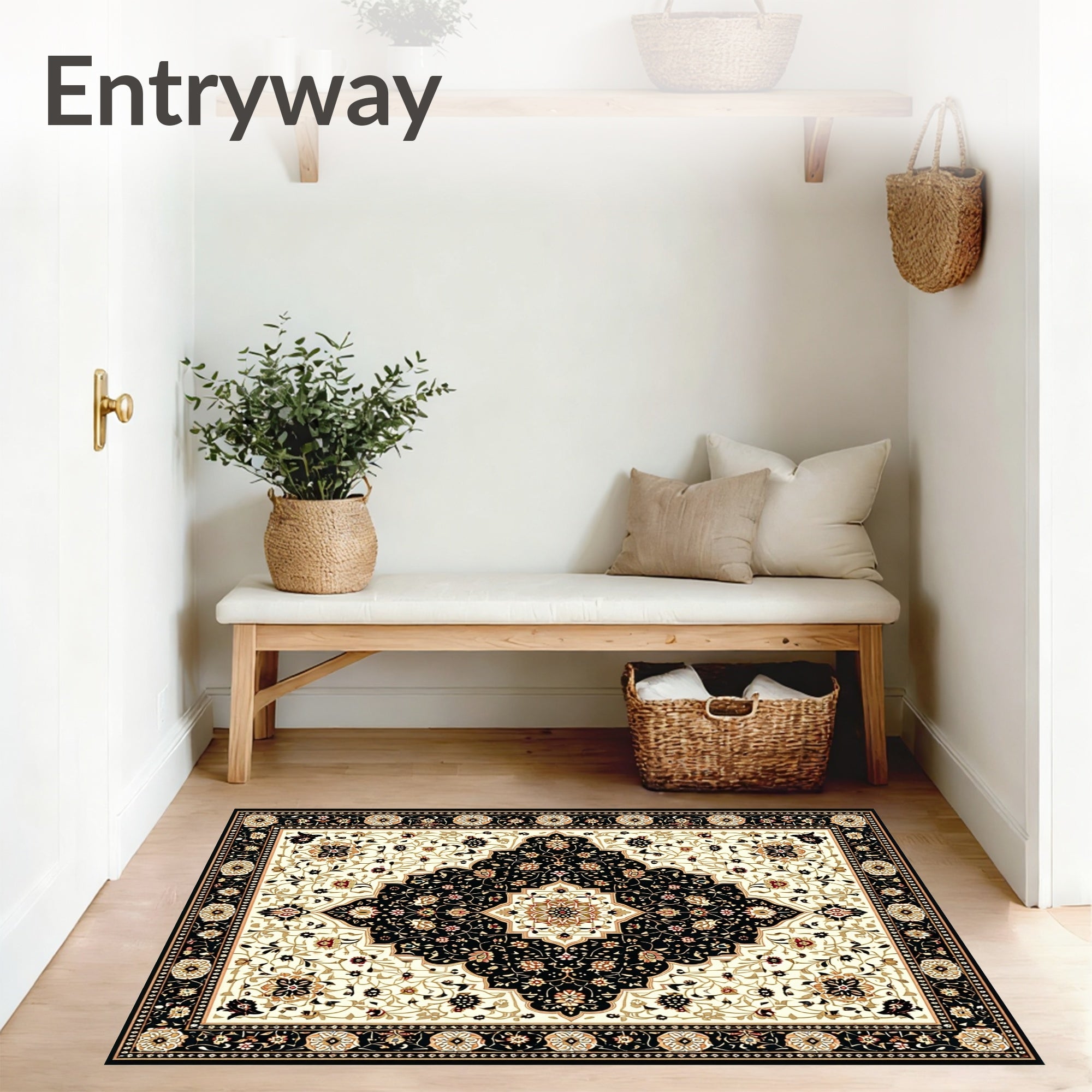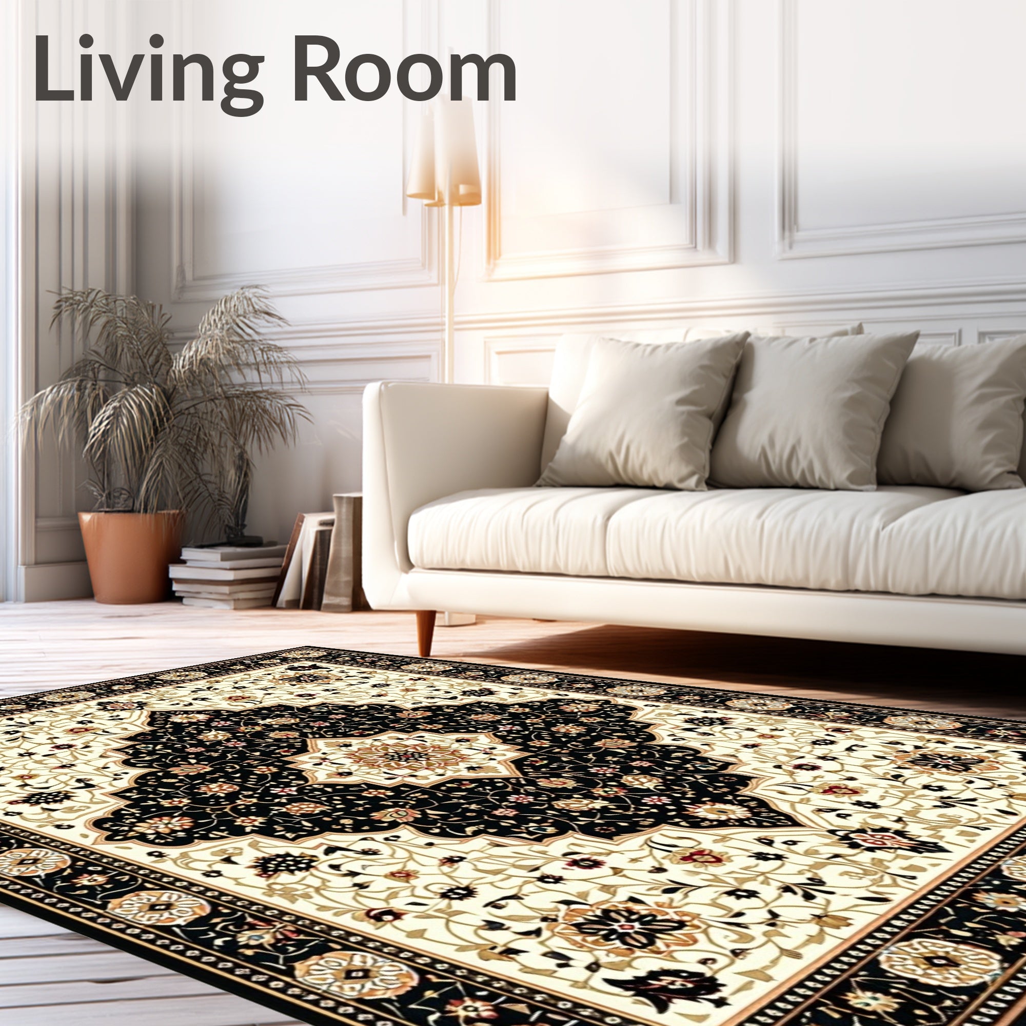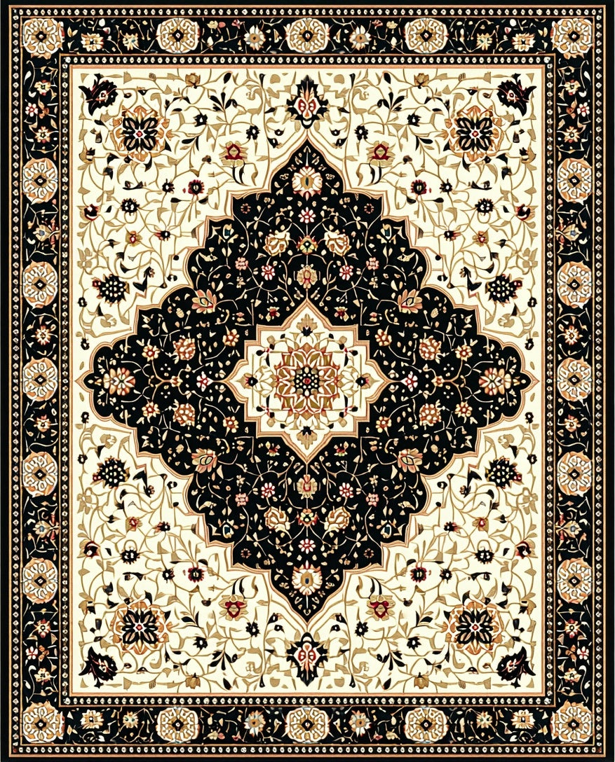 Classic Black and Beige with Refined Oriental Floral Medallions(Beige)