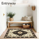 Flatwoven High Traffic Area Rug, Classic Black and Beige with Refined Oriental Floral Medallions, Non Slip, Stain Resistant, Washable Area Rugs for Living Room, Bedroom (Beige) Overview: