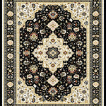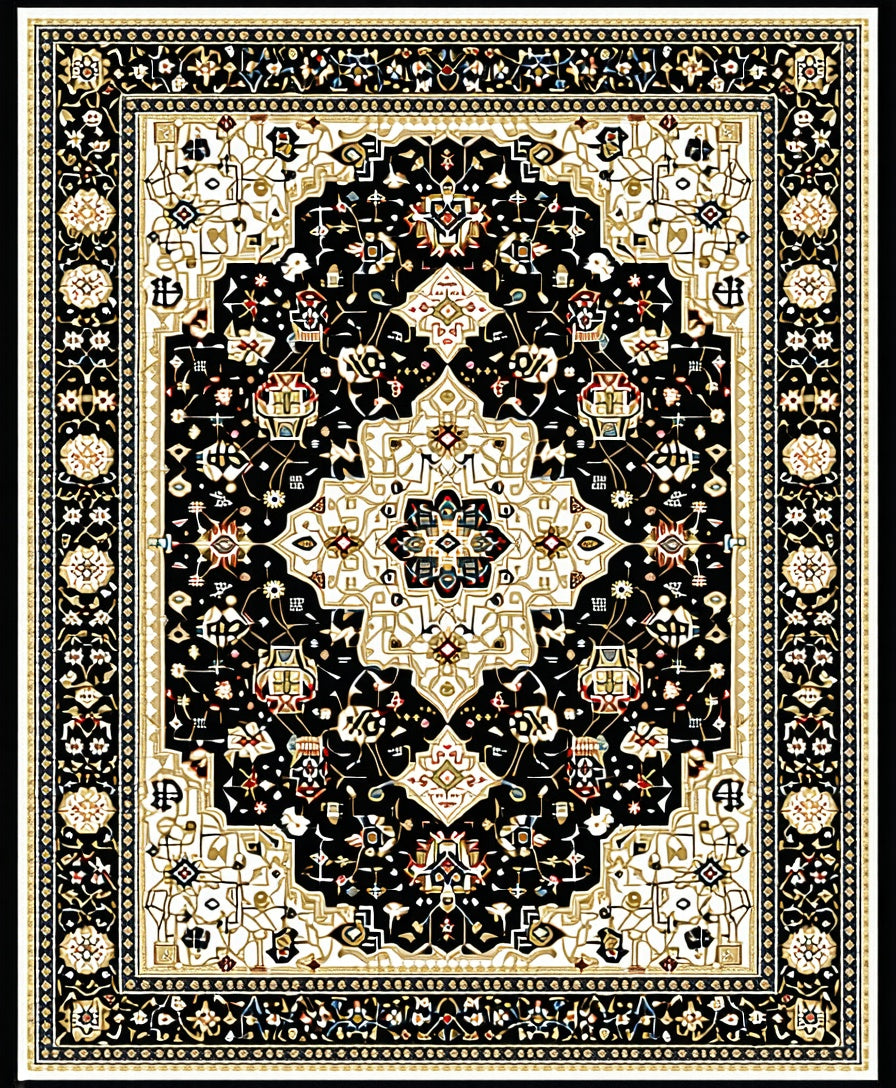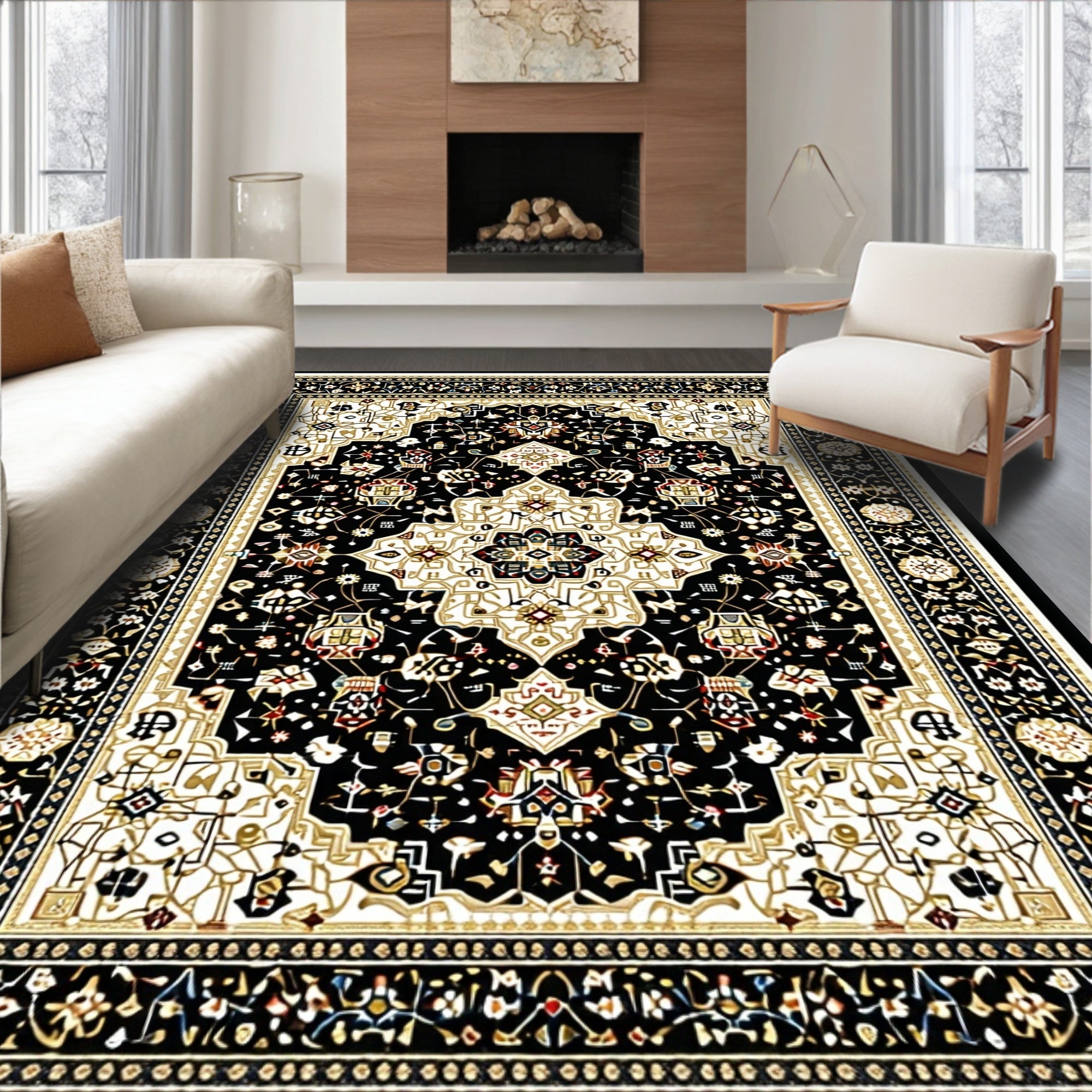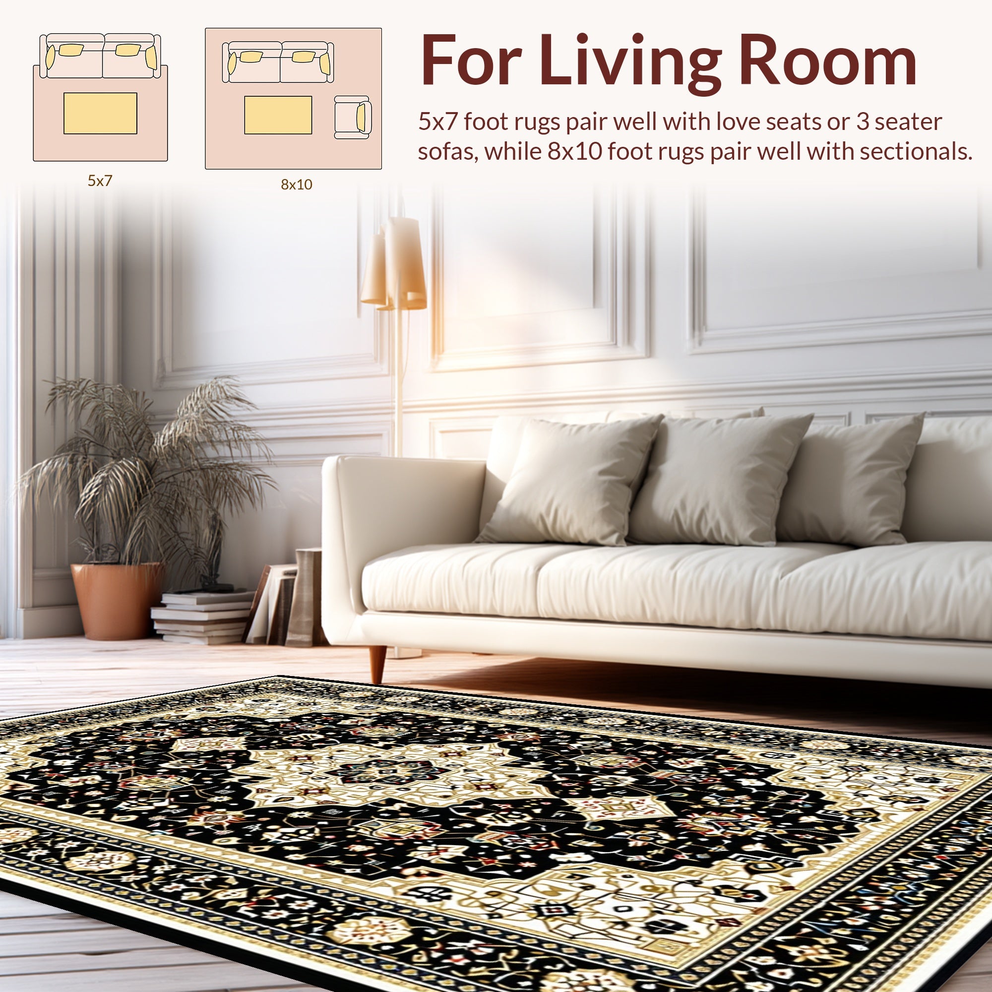 Flatwoven High Traffic Area Rug, Classic Black Beige Damask Style, Non Slip, Stain Resistant, Washable Area Rugs for Living Room, Bedroom (Black) Overview: