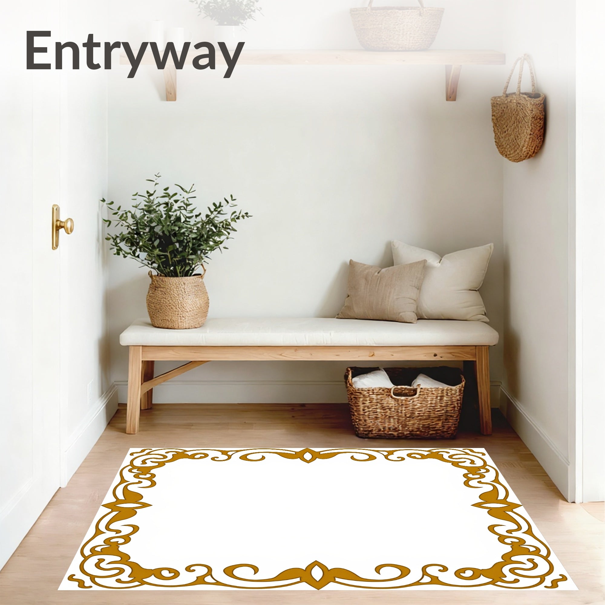 Ultra Soft Area Rug, Non Slip, Stain Resistant, Washable Area Rugs for Living Room, Bedroom, Classic Border Scroll Interlocking Transitional Hallway Charm(Brown) Overview: