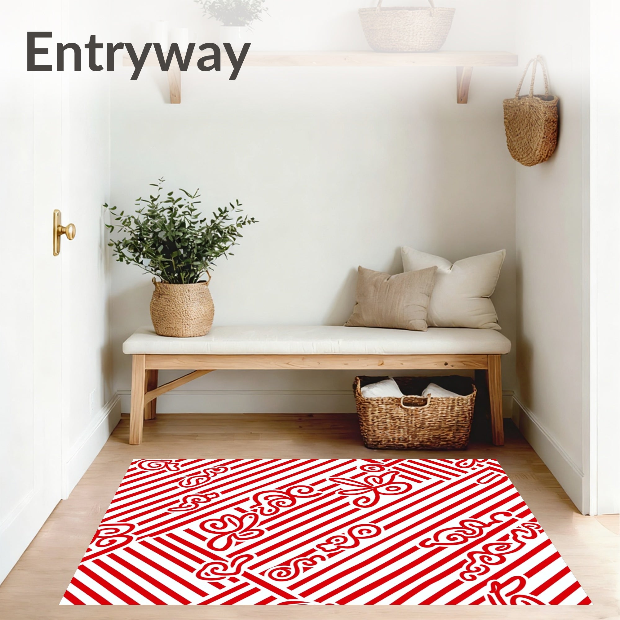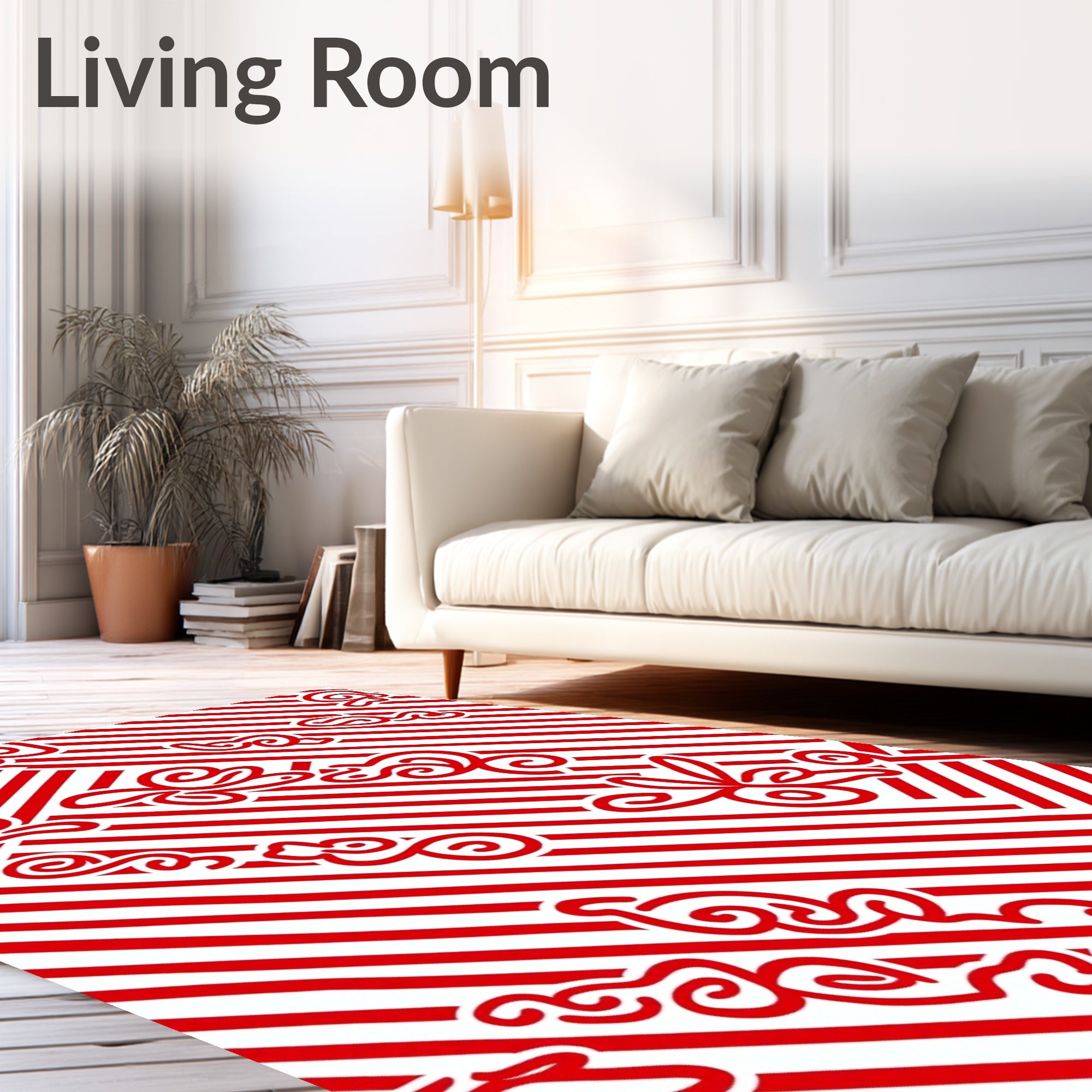 Classic Cane Stripe Medallion Non Slip(Red)