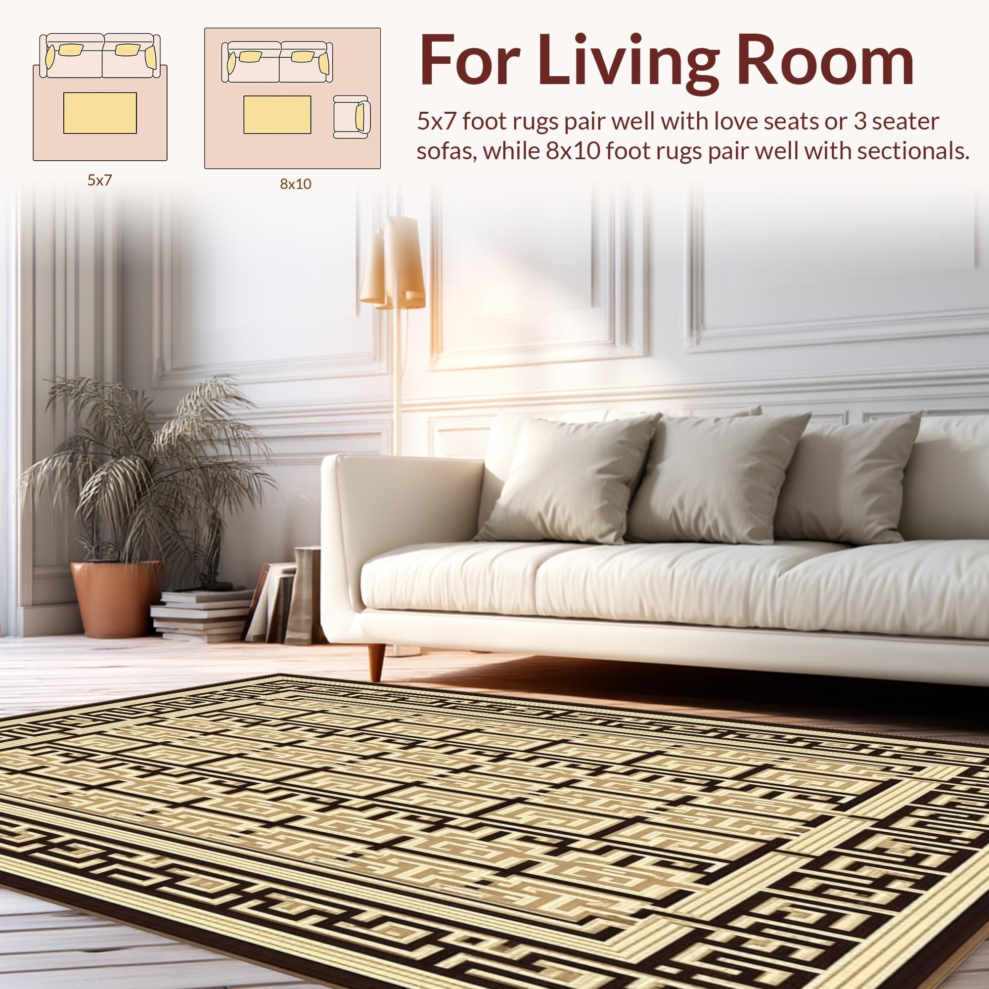 Ultra Soft Area Rug, Non Slip, Stain Resistant, Washable Area Rugs for Living Room, Bedroom, Classic Checkered Design in Cream(Beige) Overview: