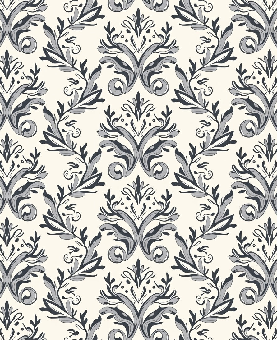 Classic Damask Scrollwork with Botanical Vine Motifs(Gray)