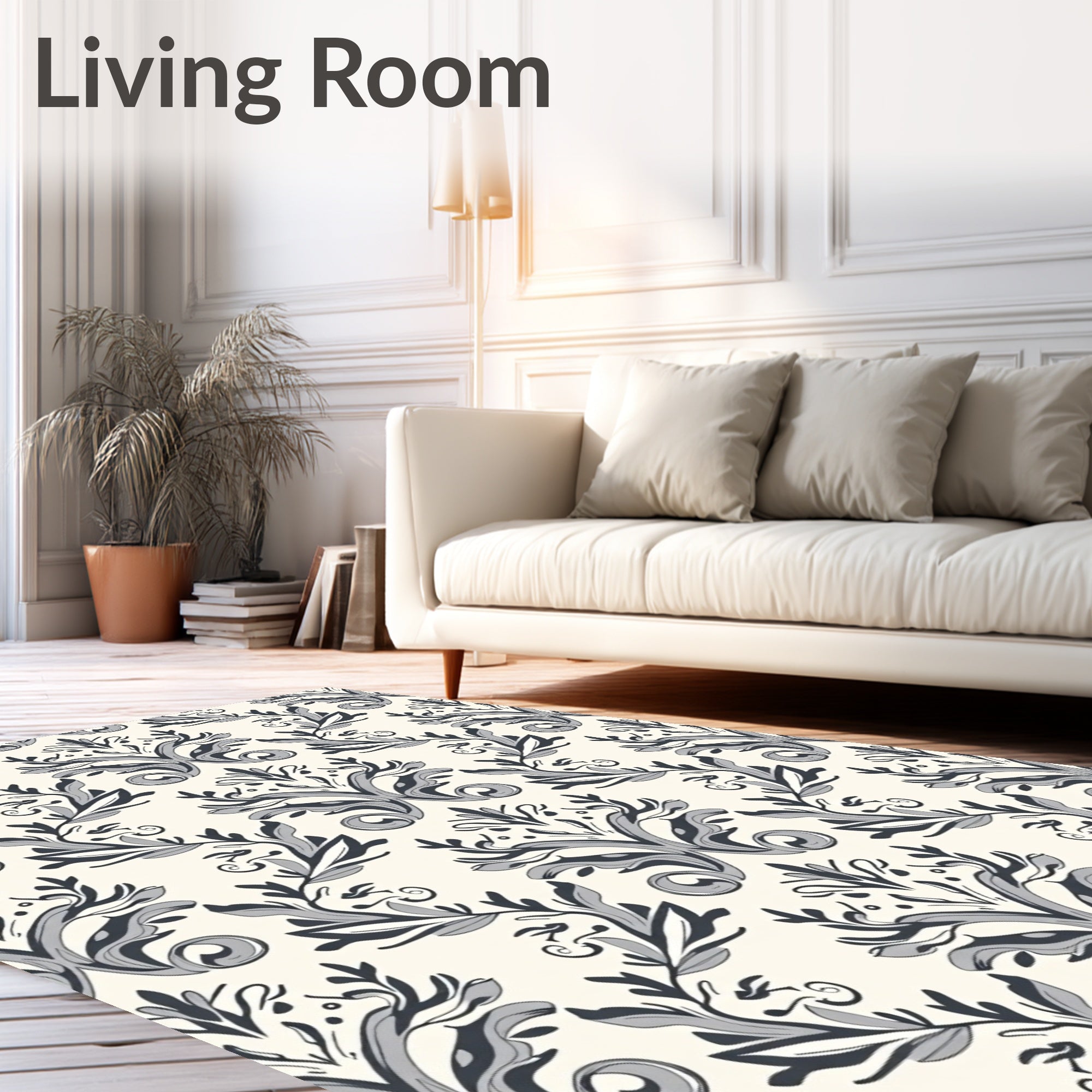 Ultra Soft Area Rug, Non Slip, Stain Resistant, Washable Area Rugs for Living Room, Bedroom, Classic Damask Scrollwork with Botanical Vine Motifs(Gray) Overview: