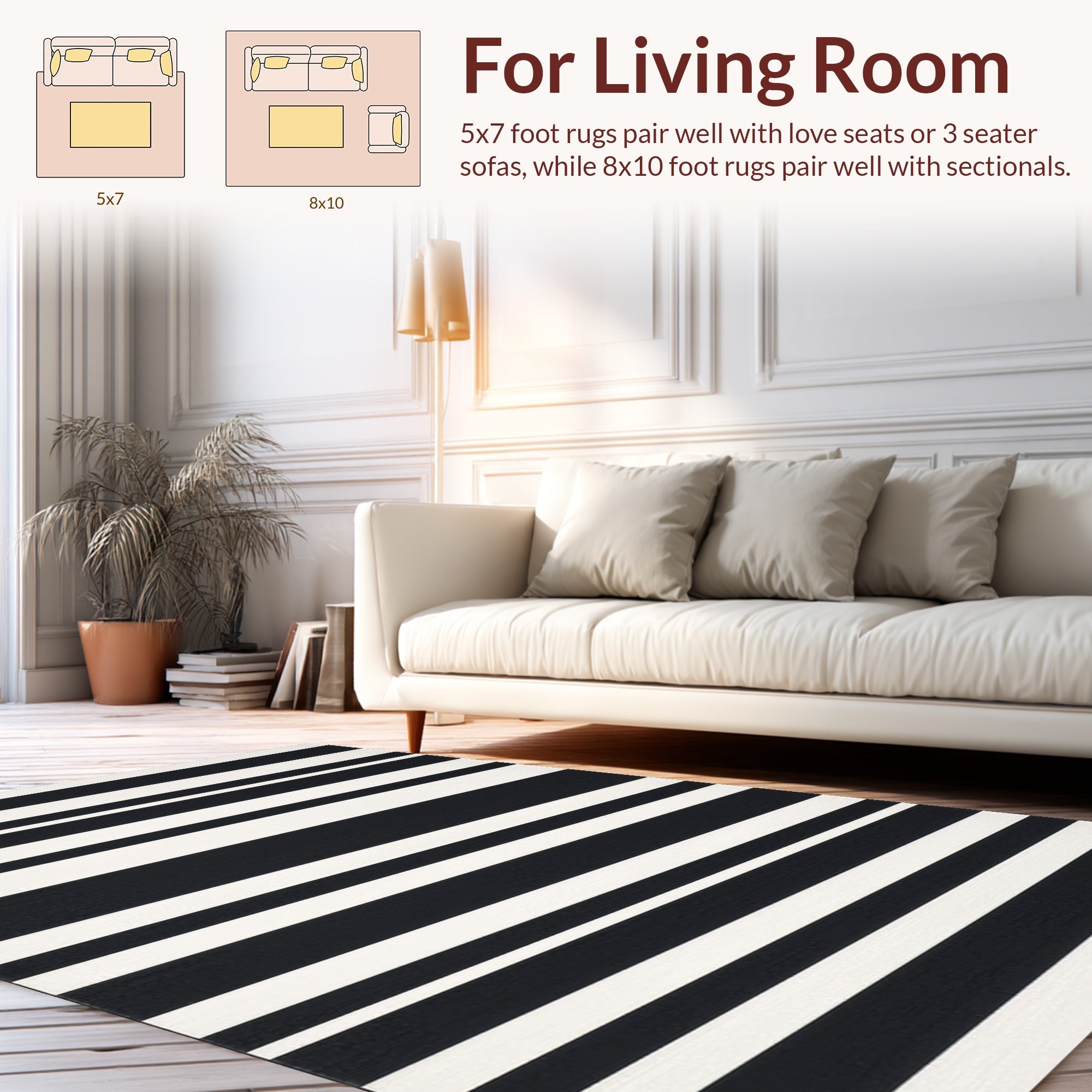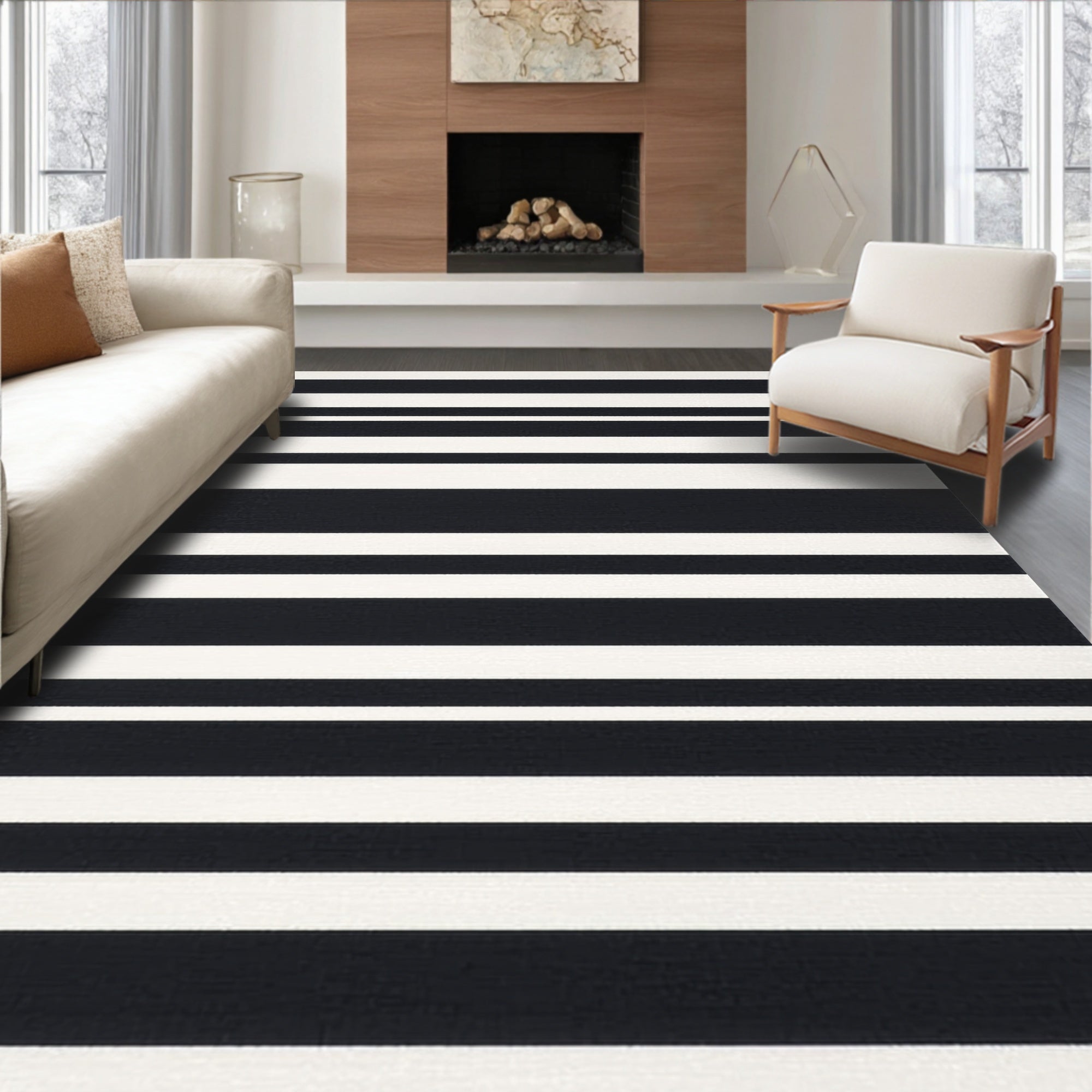 Ultra Soft Area Rug, Non Slip, Stain Resistant, Washable Area Rugs for Living Room, Bedroom, Classic Dual-Tone Linear Pattern Indoor Outdoor Washable Floor Covering(Black) Overview: