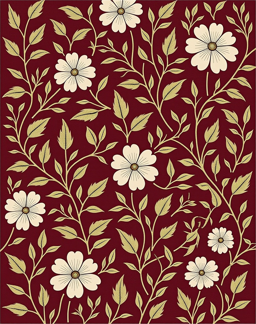 Classic Floral Vine with Botanical Garden Inspiration(Burgundy)