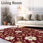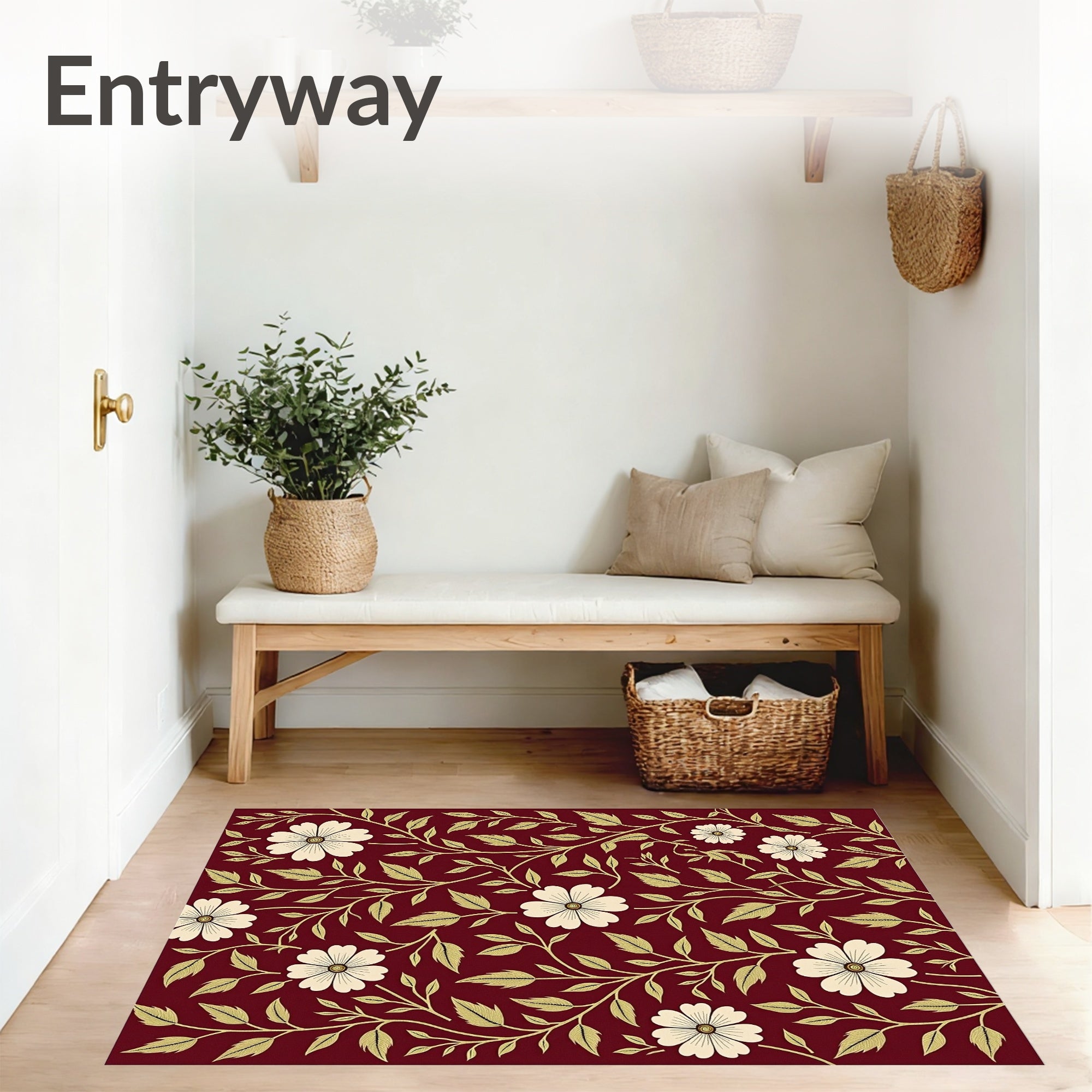 Flatwoven High Traffic Area Rug, Classic Floral Vine with Botanical Garden Inspiration, Non Slip, Stain Resistant, Washable Area Rugs for Living Room, Bedroom (Burgundy) Overview: